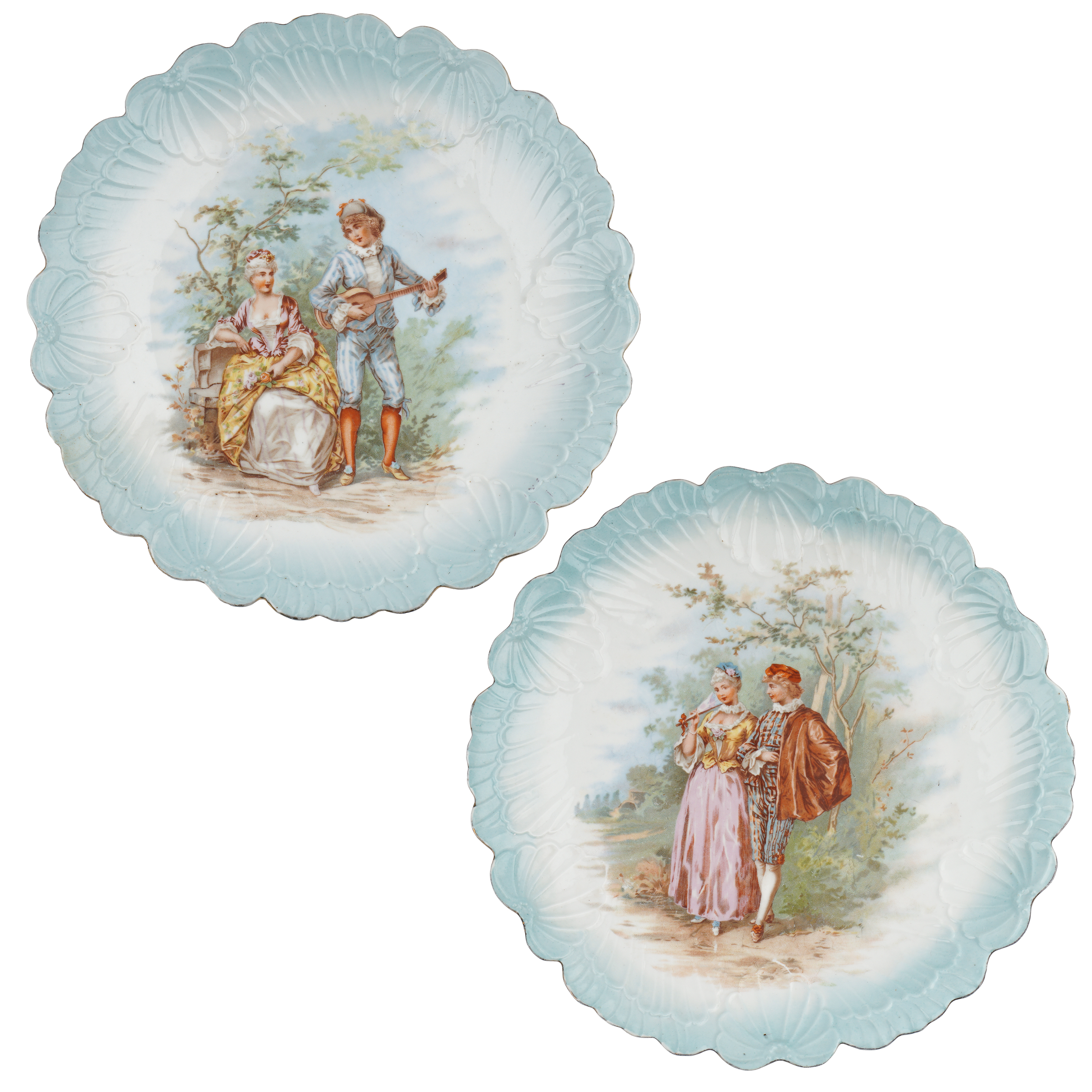 Фарфор, рельеф, голубое крытье, деколь