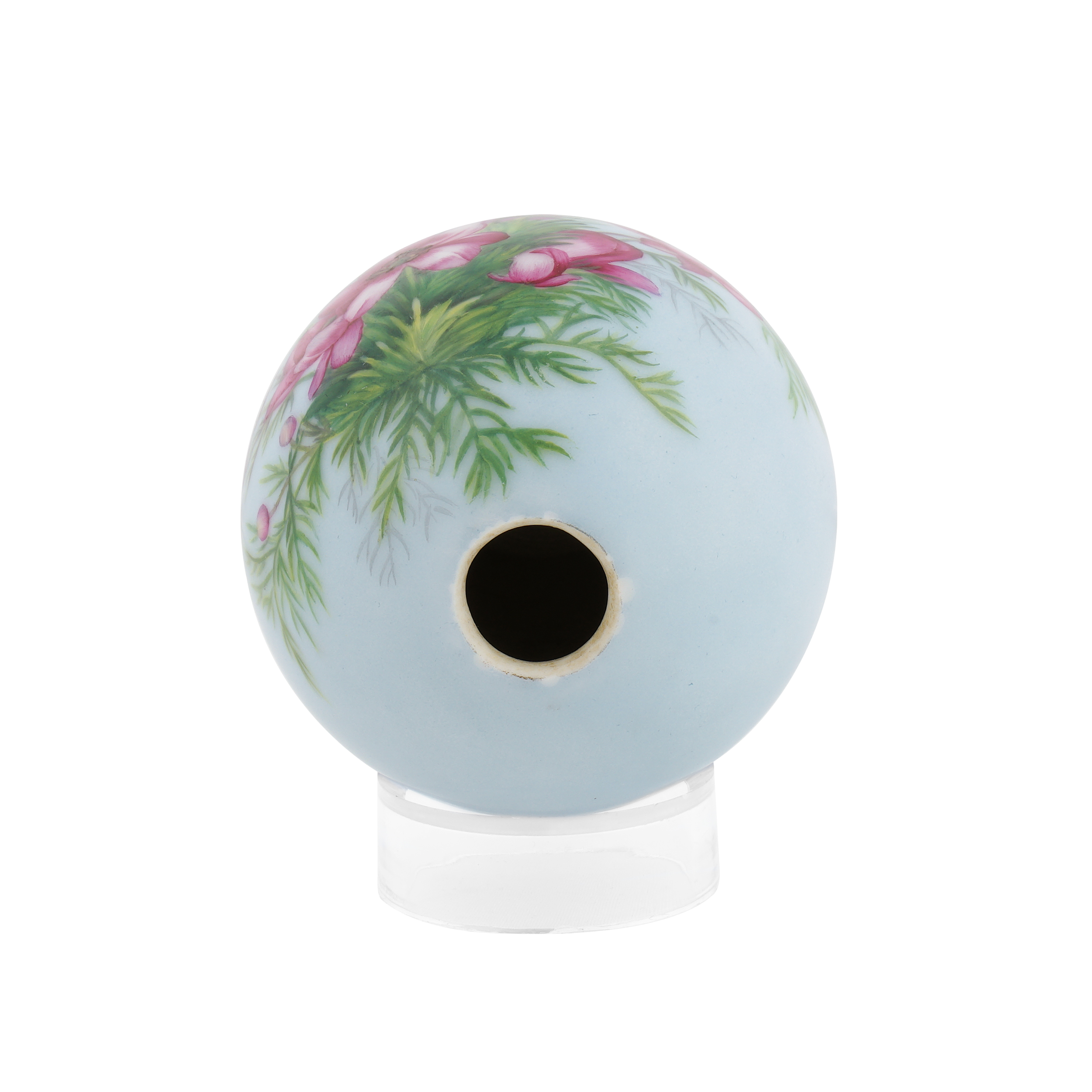 Фарфор, светло-голубое монохромное крытье, полихромная надглазурная роспись, Россия, высота – 9,9 см.