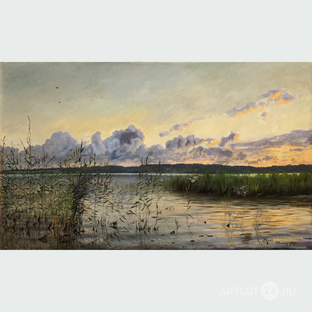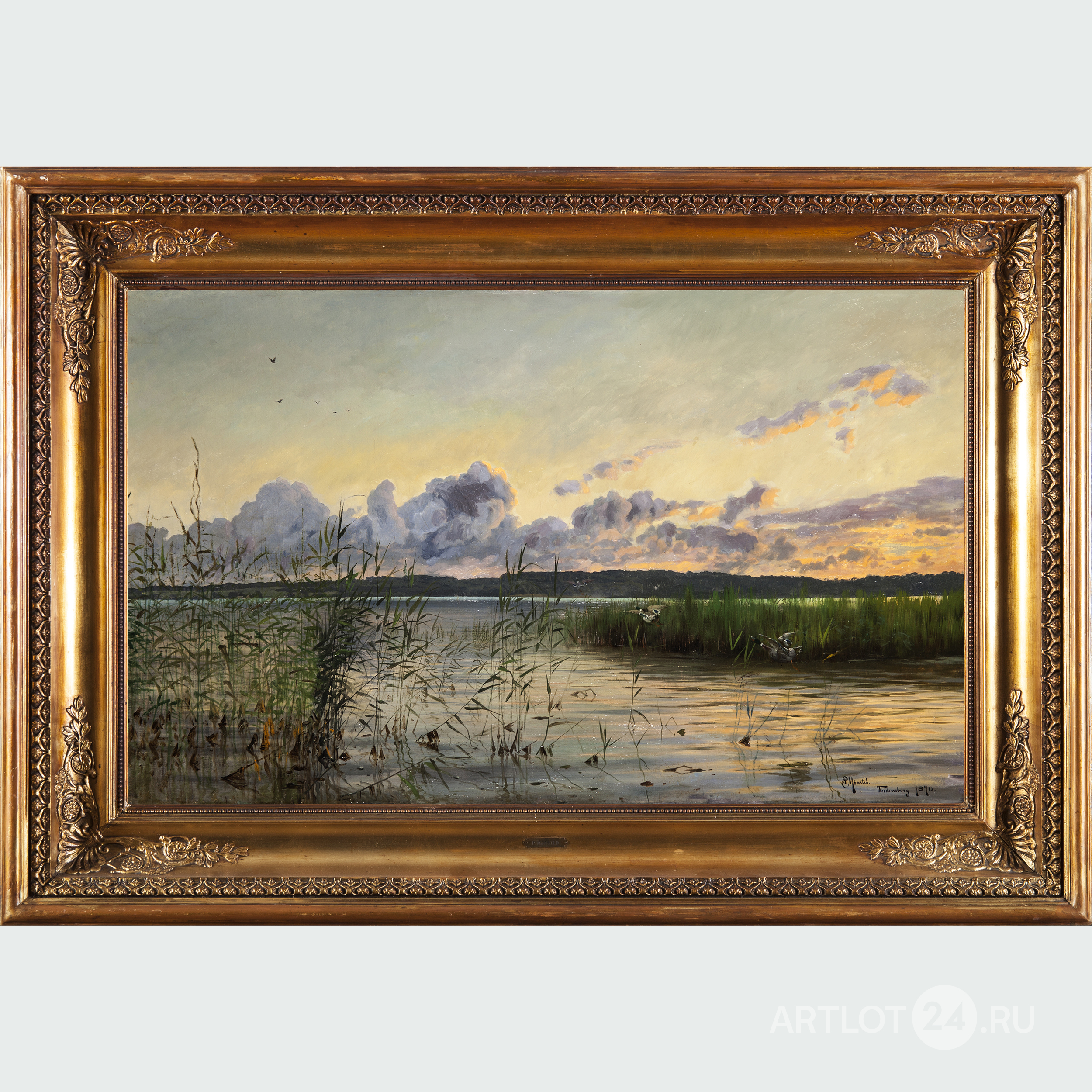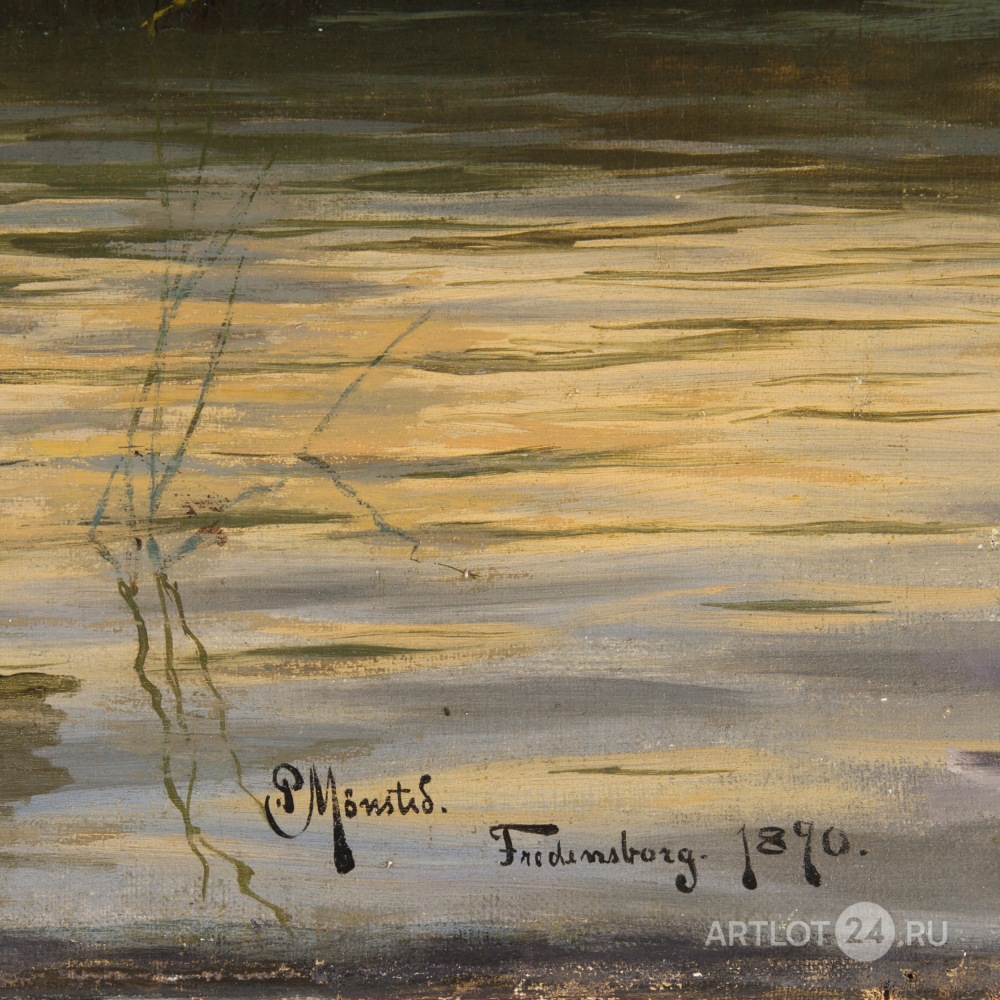 Холст, масло, подпись и дата в правом нижнем углу в две строки «P. Monsted. / Fredensborg 1890», датский художник-пейзажист, мастер реалистического направления Петер Мёрк Мёнстед (Peder Monsted, 1859-1941), Дания, 1890 год, размер холста: 57 х 95 см, в раме: 81 х 160 см