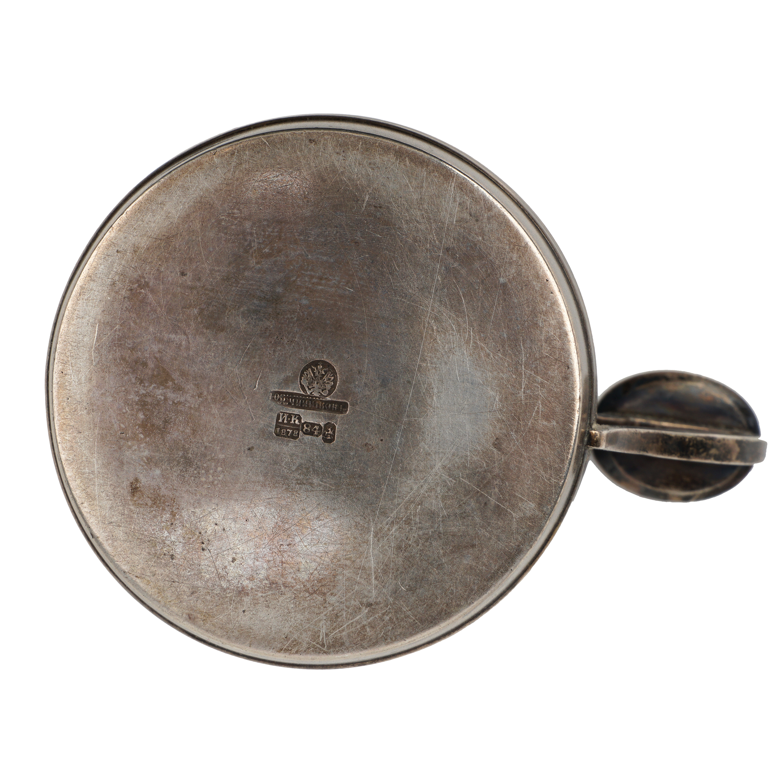 Серебро 84 пробы, литье, чеканка. Клейма: «ОВЧИННИКОВ», именник пробирного мастера «ИК» / 1878» «84», герб Москвы (Георгий Победоносец). Неизвестный пробирный мастер (1875-1880 гг.)