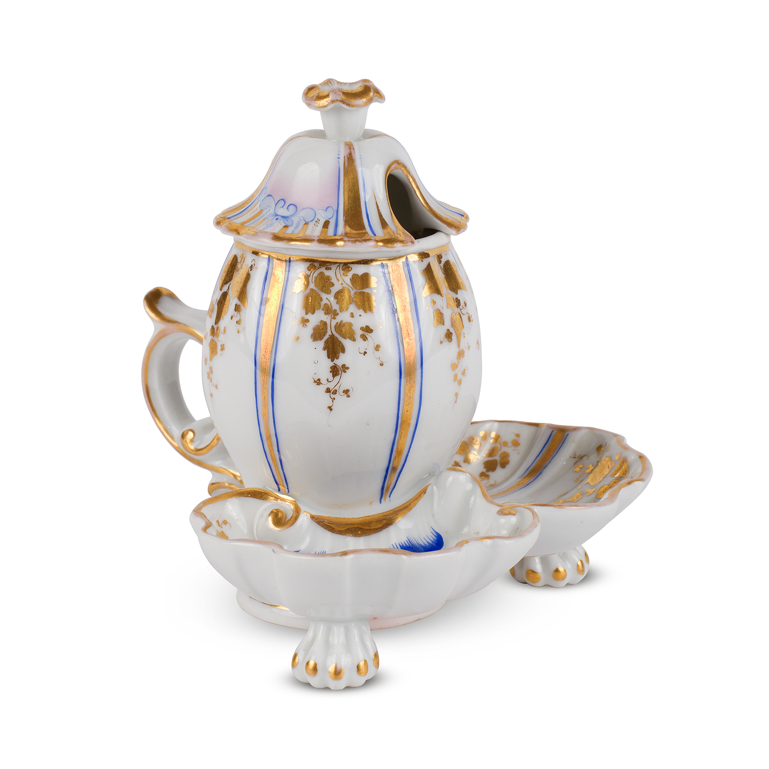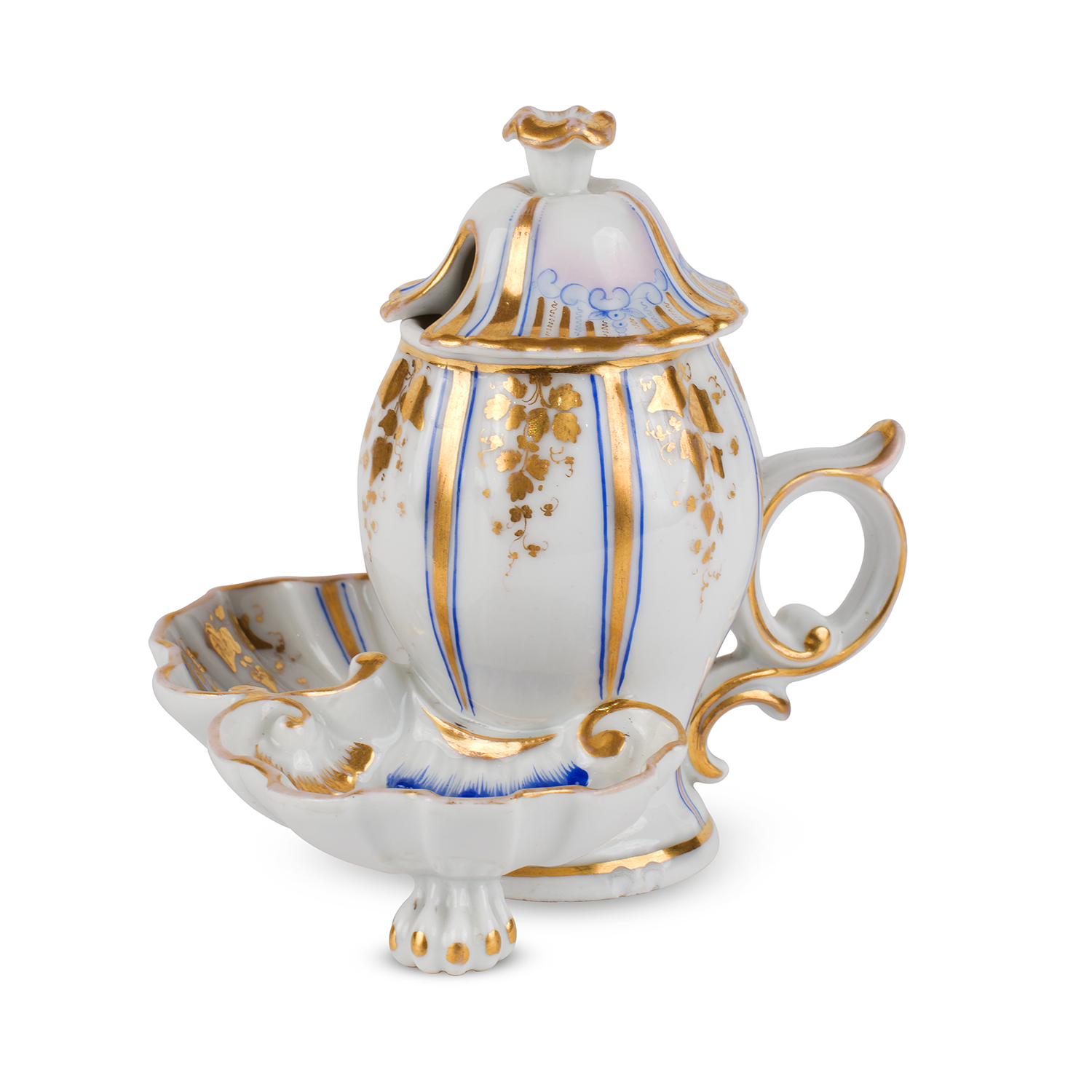 Подставка под специи. Фарфор, рельеф, лепка, золочение, марка синим подглазурно «KPM», Европа, ХХ век, размеры: 12,5 х 12 х 14 см