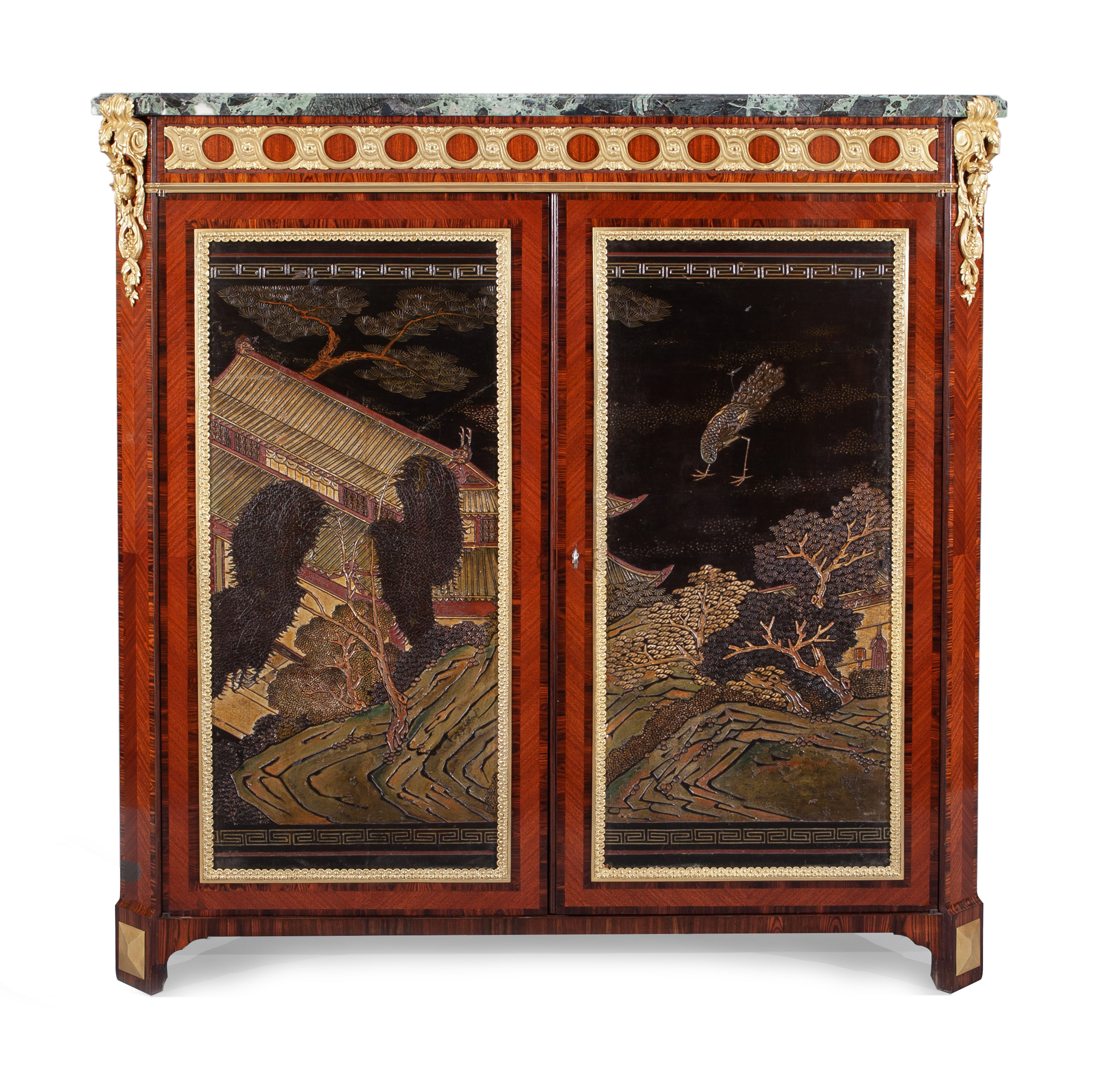 Низкий шкаф в стиле Людовика XVI с лаковыми панно с изображением пейзажа с пагодой.
