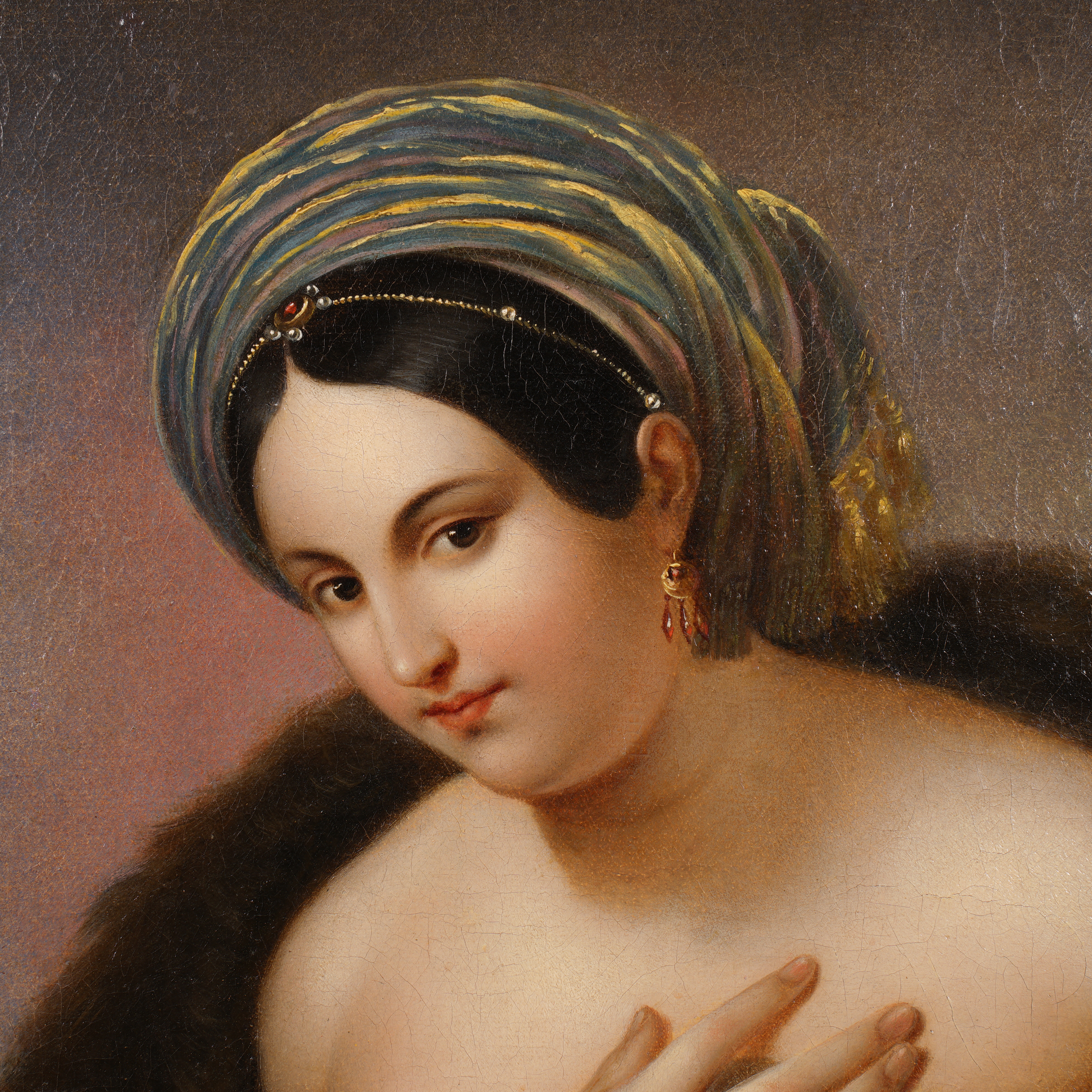 Холст, масло, без подписи, неизвестный художник, Западная Европа, XIX век. Размер: холста 37х30 см, в раме 57х49 см.
