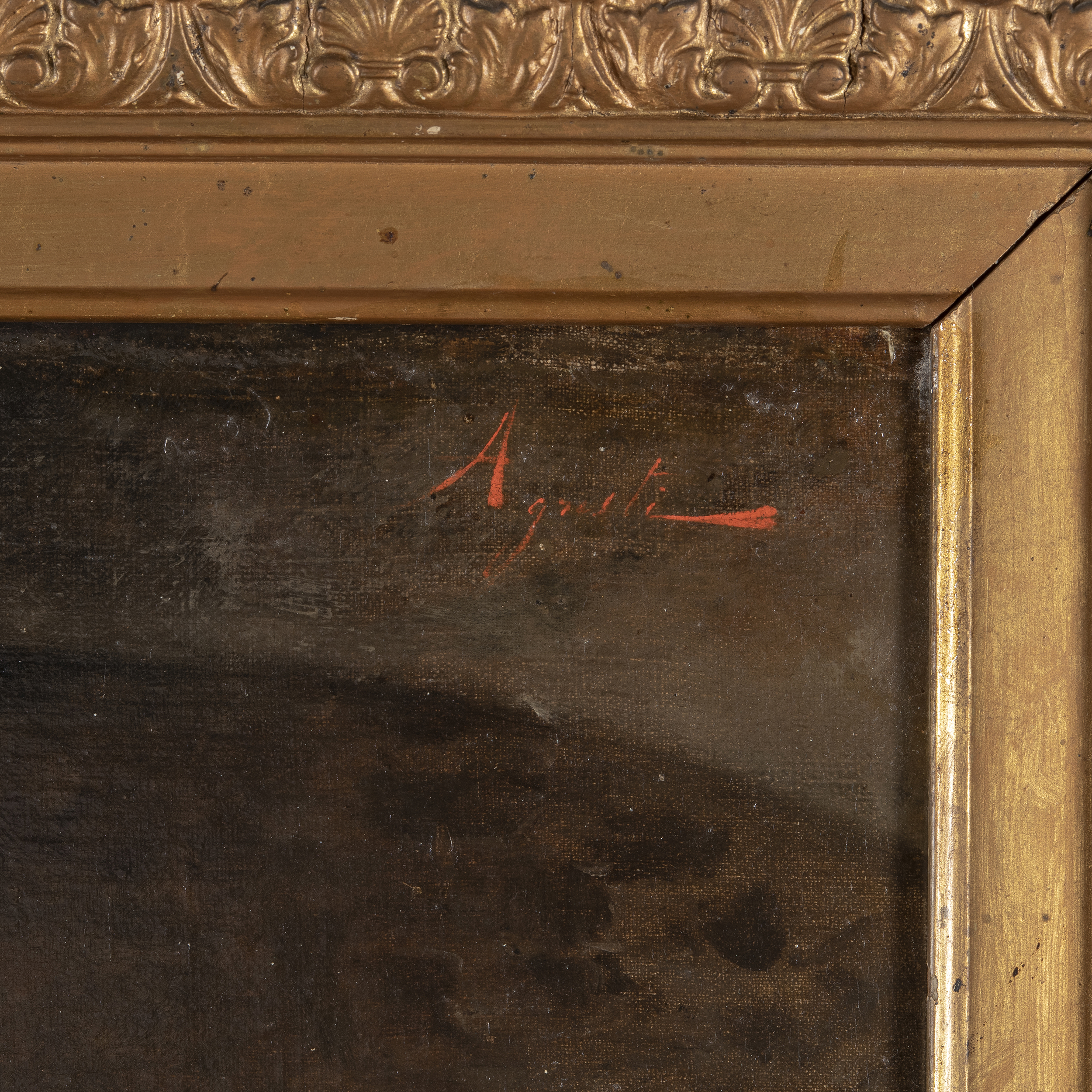 Холст, масло, справа вверху подпись «Agresti», на шильде: «AGRESTI / UNE REPRESENTATION»