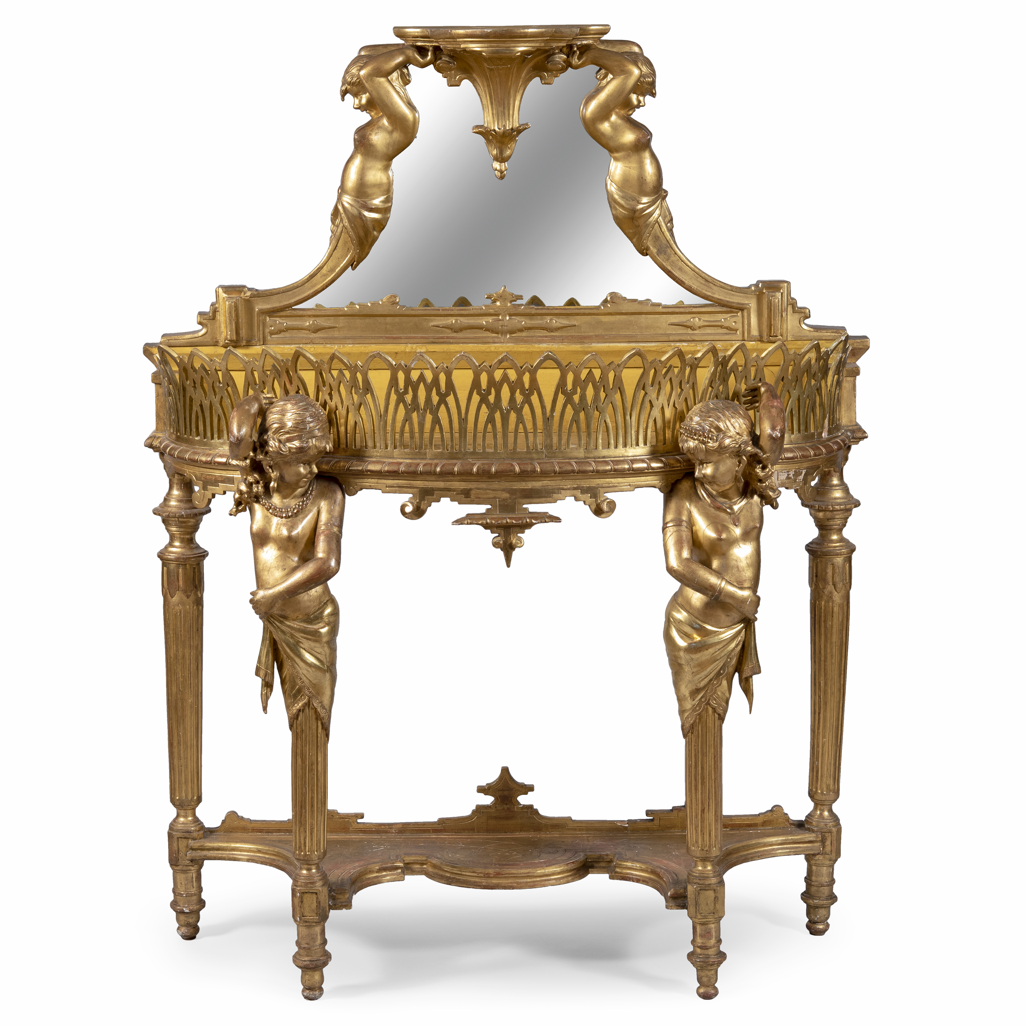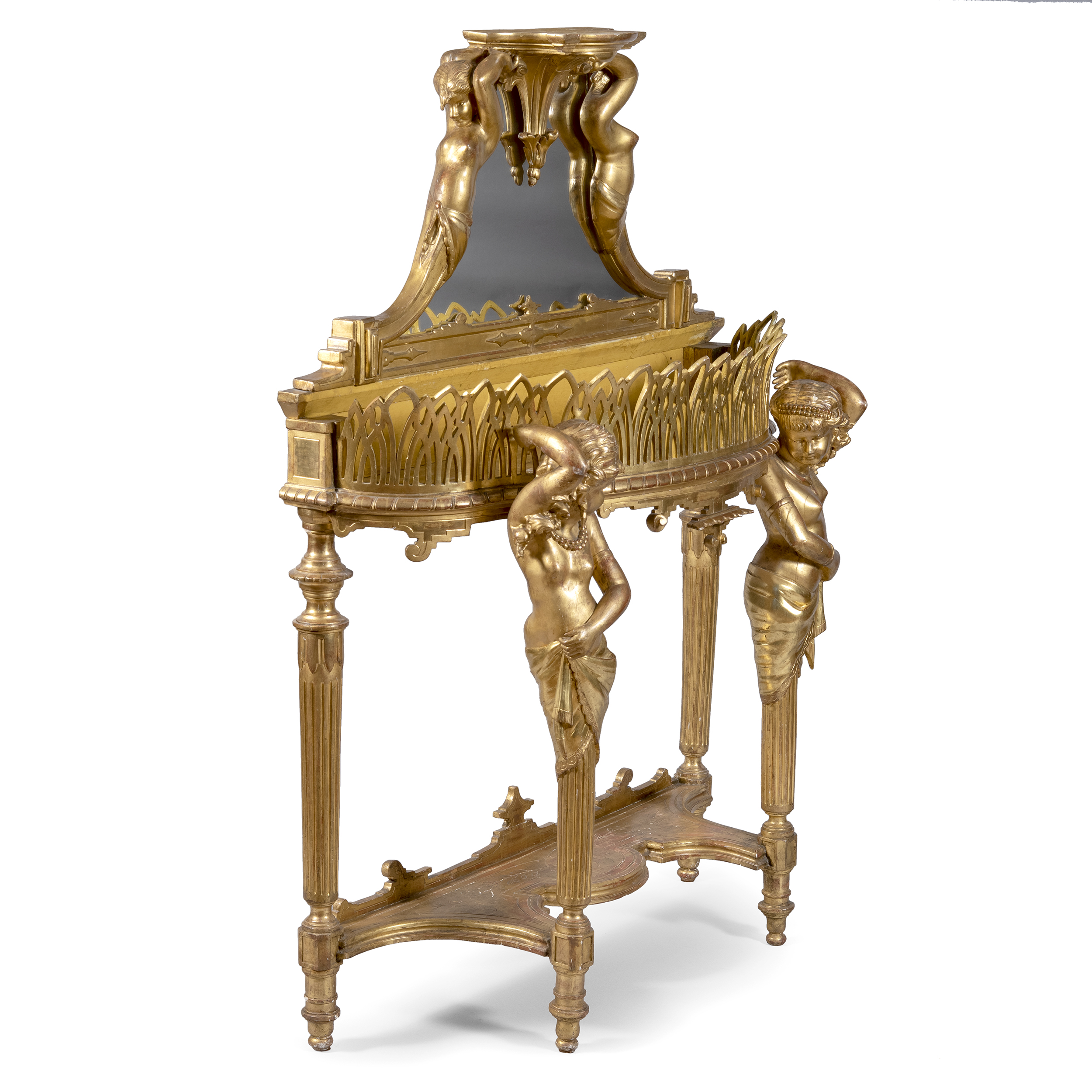 С женскими полуфигурами. Дерево, резьба, левкас, золочение, зеркало, Европа, XIX век, размеры (в/ш/г): 155 х 121 х 41 см
