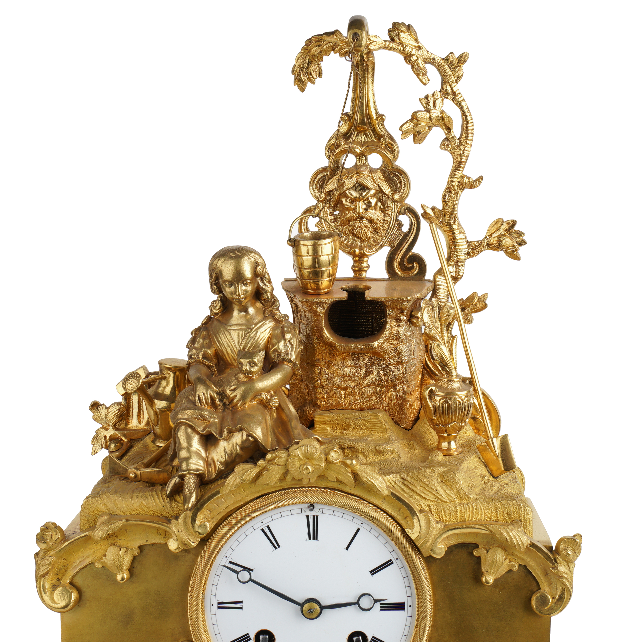 Русские каминные часы «Девочка с котенком у колодца» мастерской С. Веля