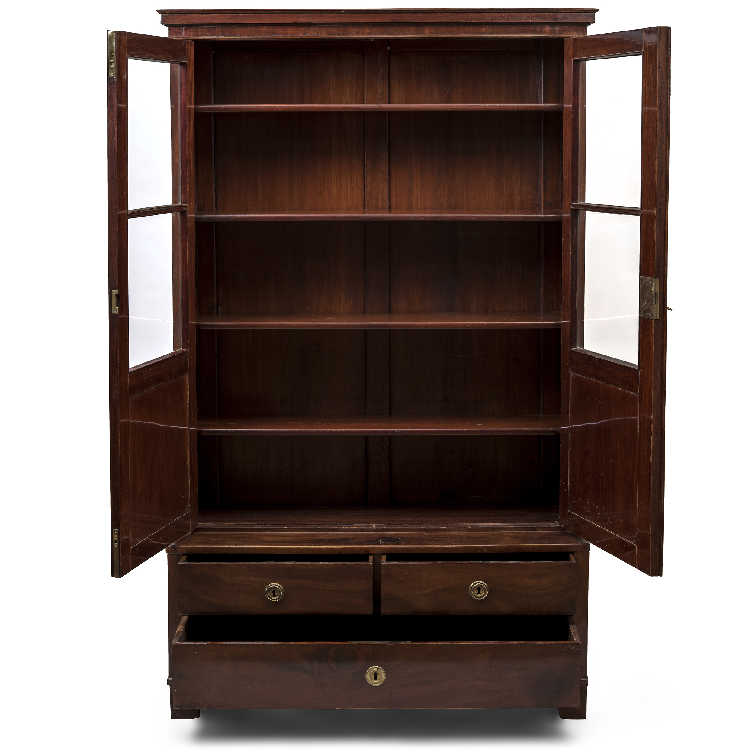 Красное дерево, шпон, тонирование, вставки черного дерева, стекло, Россия, вторая половина XIX века, размер (в/д/ш): 199 х 116 х 47 см