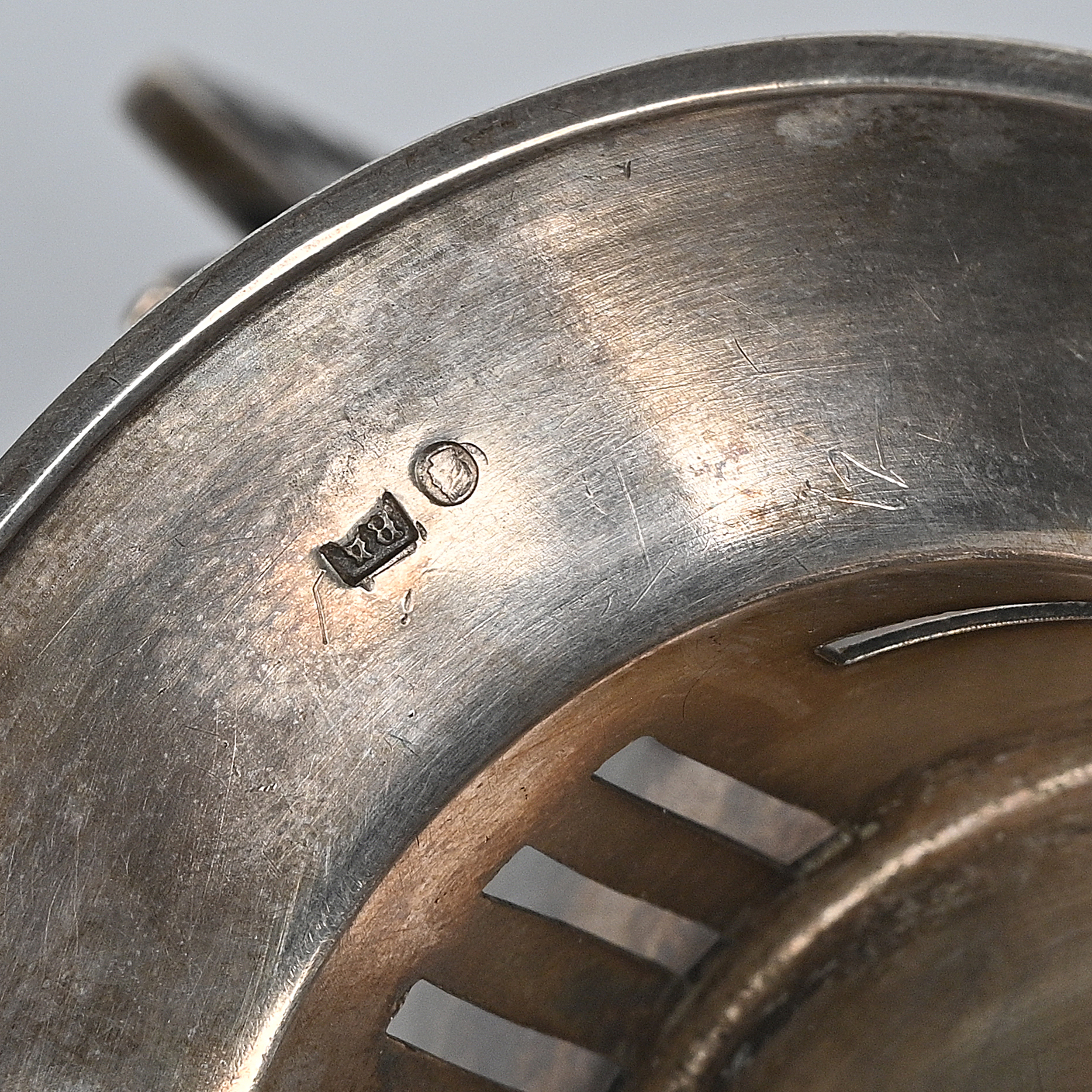 Клейма: 84 проба с «женской головой в кокошнике, обращенной вправо» с шифром московского пробирного управления, мастерской - «В.А», цифровое 875 (переопробир.),