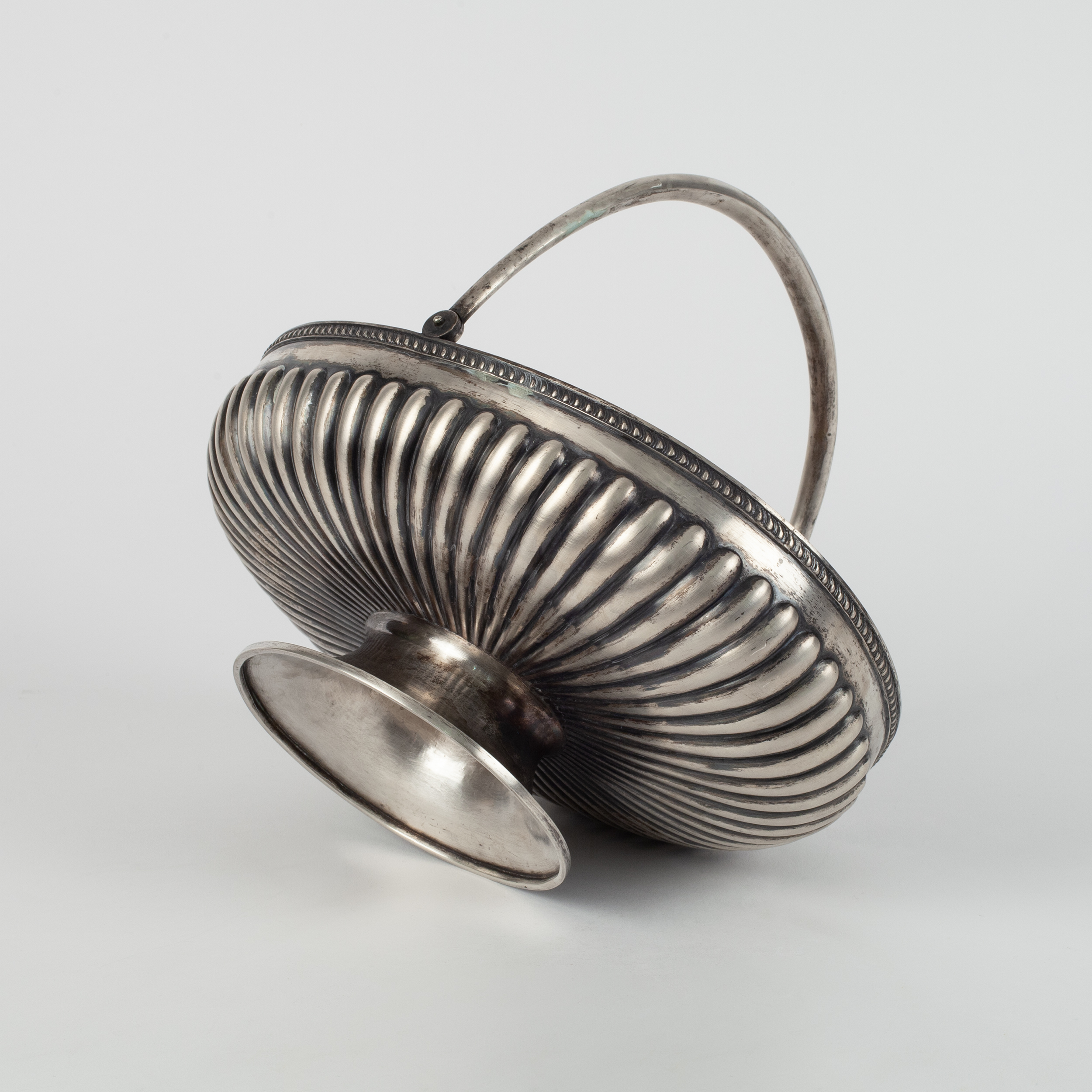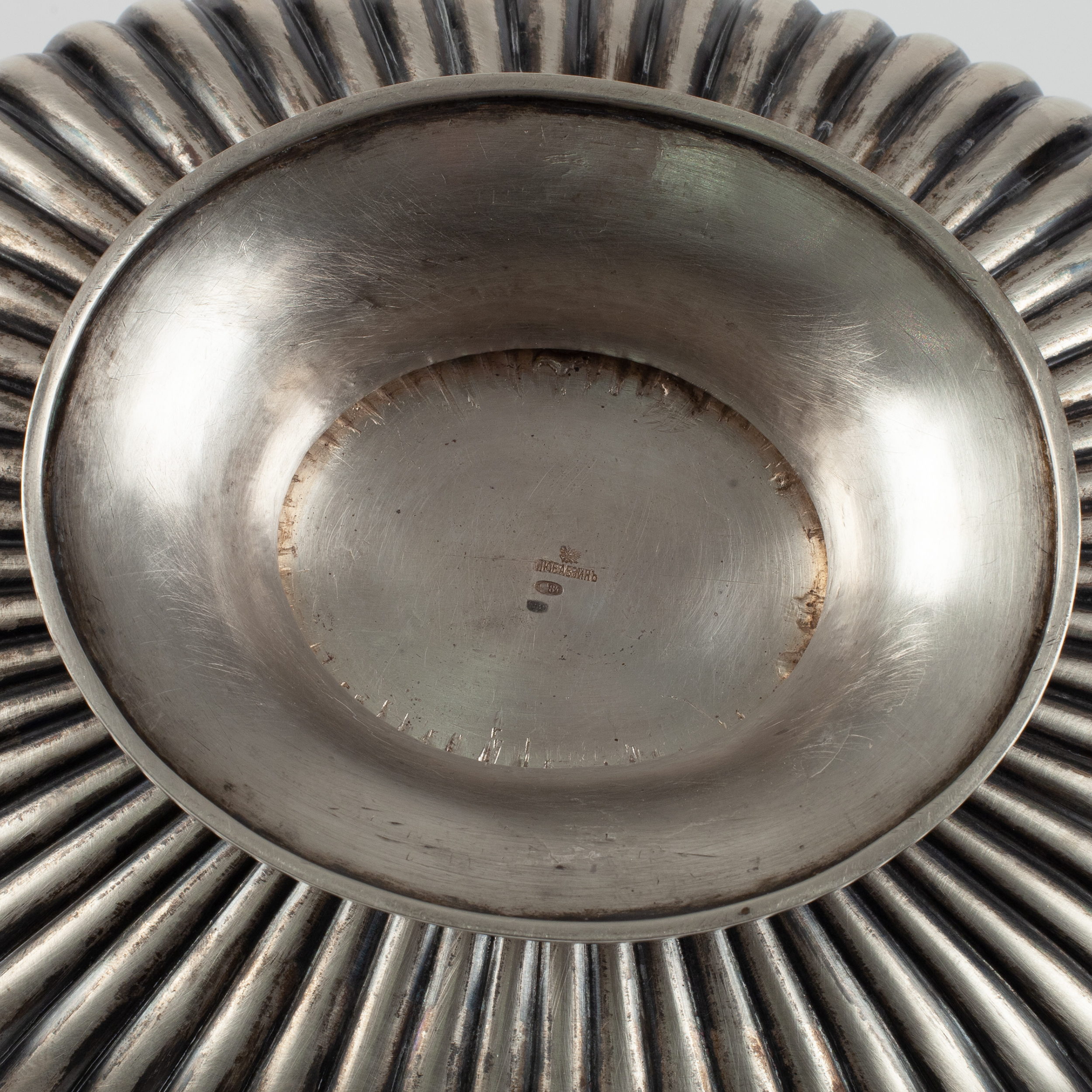 Серебро, литье, штамп; клеймо Петербургского пробирного управления - 84 проба с «женской головкой в кокошнике, смотрящей вправо» с альфой в овальном щитке; клеймо «ЛЮБАВИНЪ» под двуглавым орлом фирмы Любавина Николая Александровича, владельца фабрики серебряных изделий, поставщика Императорского Двора; Российская Империя; размер (в/д/ш): 24 х 26,8 х 21,5 см, вес – 785 грамм.