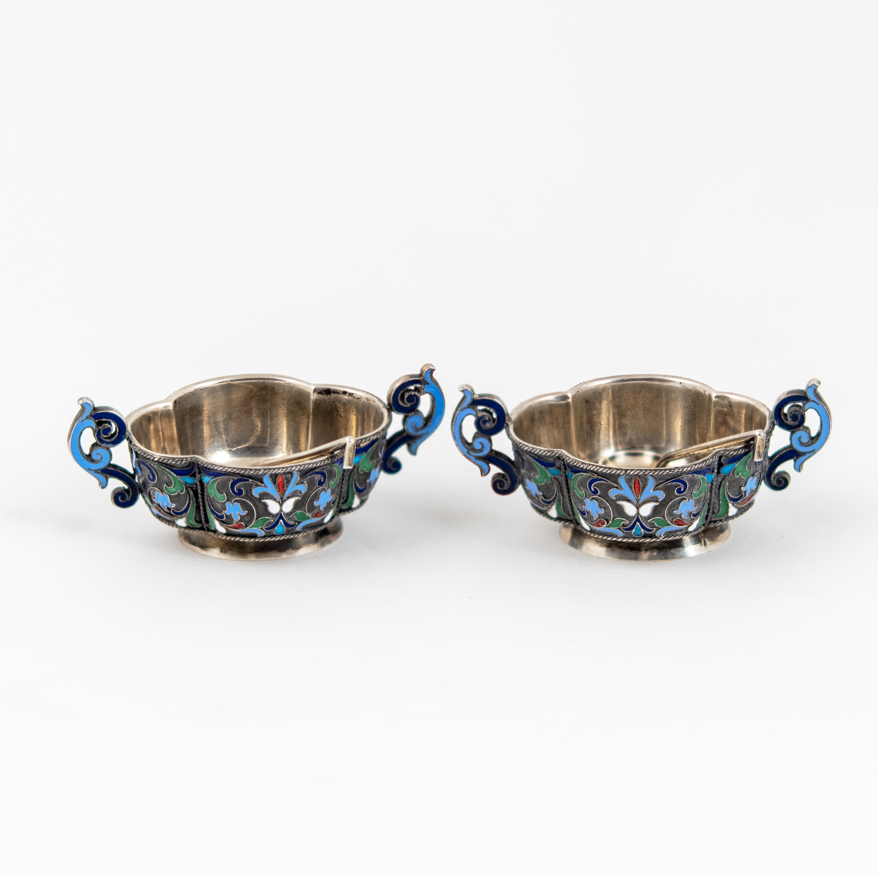 Серебро, литье, полихромные перегородчатые эмали в сканном обрамлении.