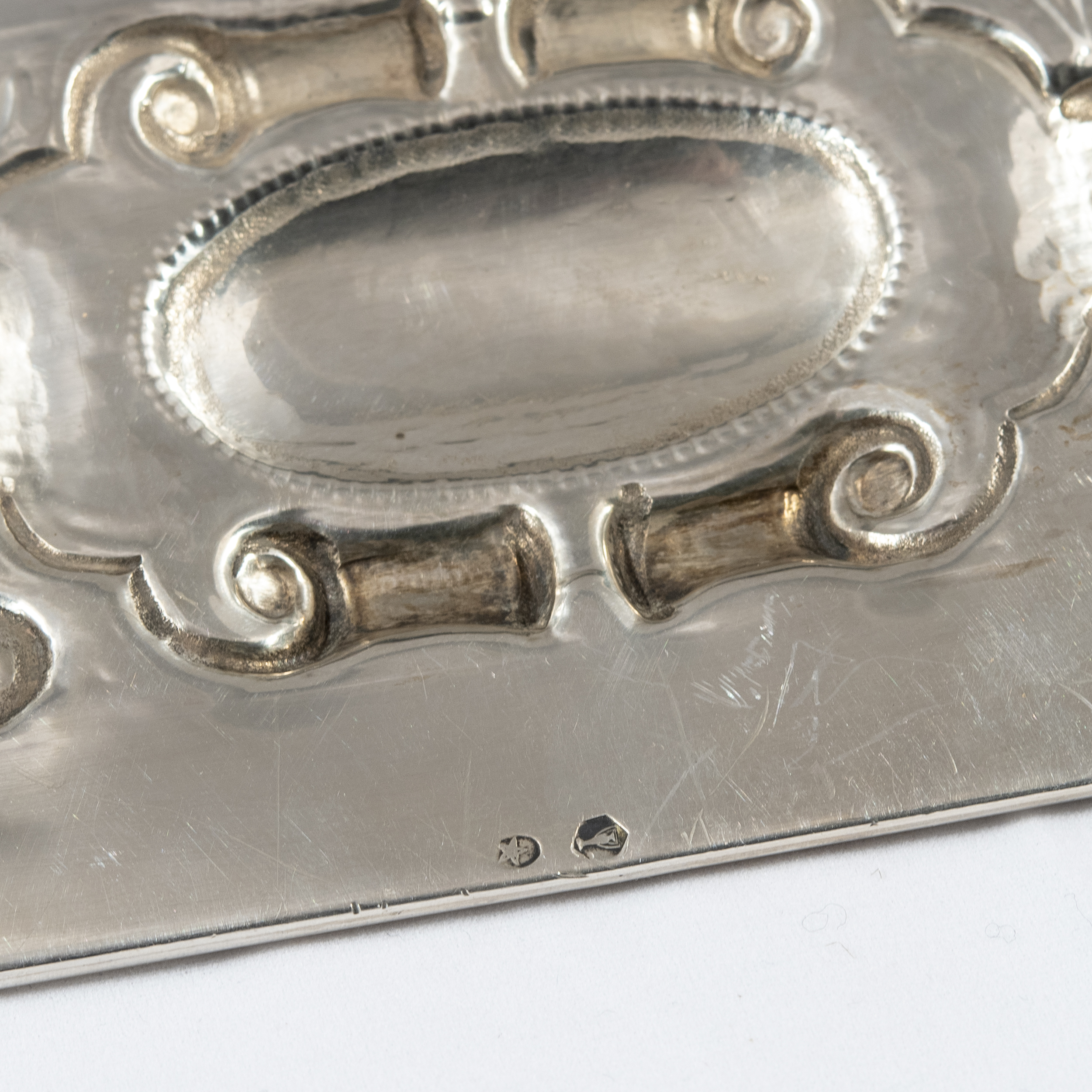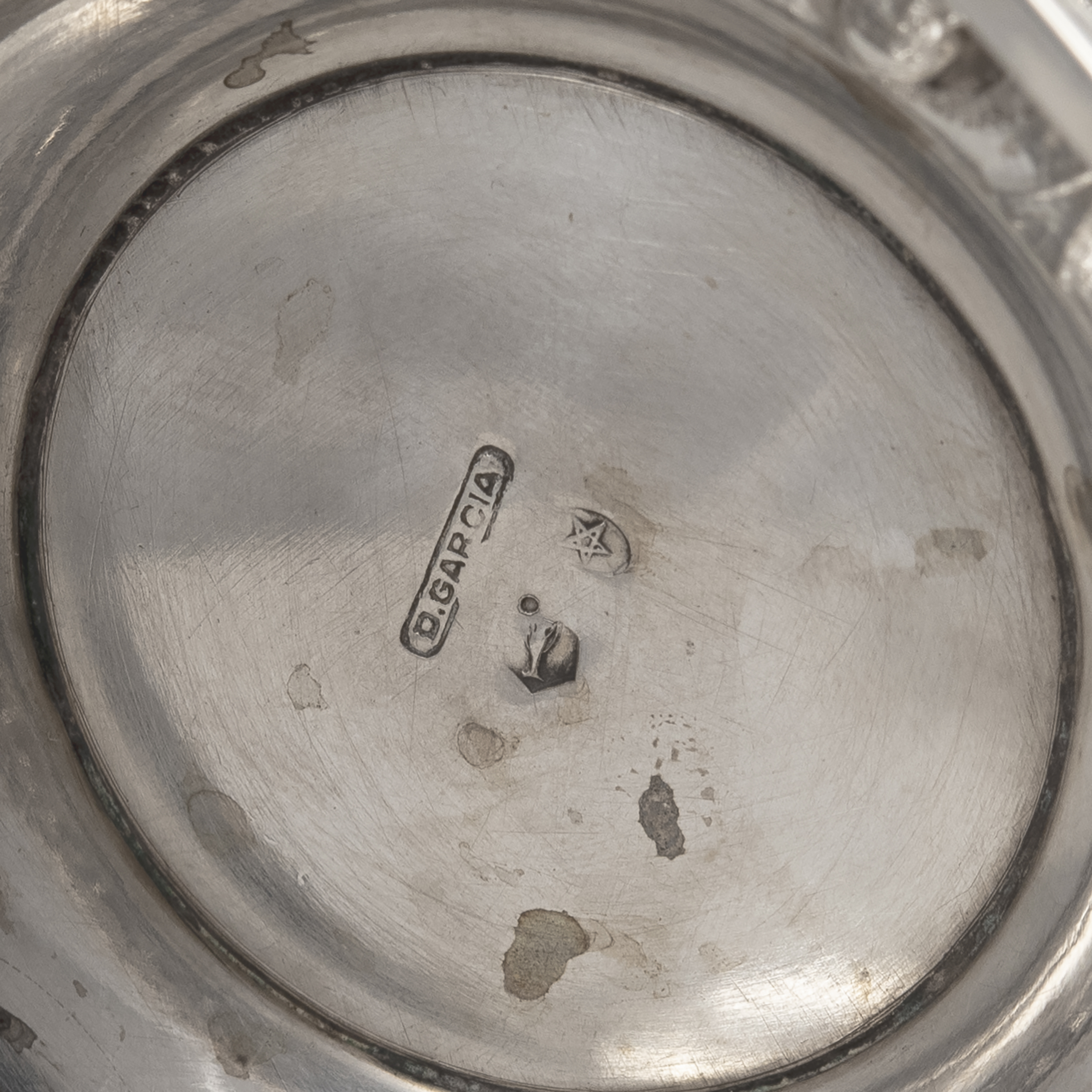 На каждом предмете клеймо в виде пятиконечной звезды в круглом щитке, используемое с 1934 года и удостоверяющее, что изделие выполнено из серебра не ниже 915 пробы, клеймо в виде амфоры, а также клейма «D. GARCIA» мастерской Дионисио Гарсия (Dionisio García).