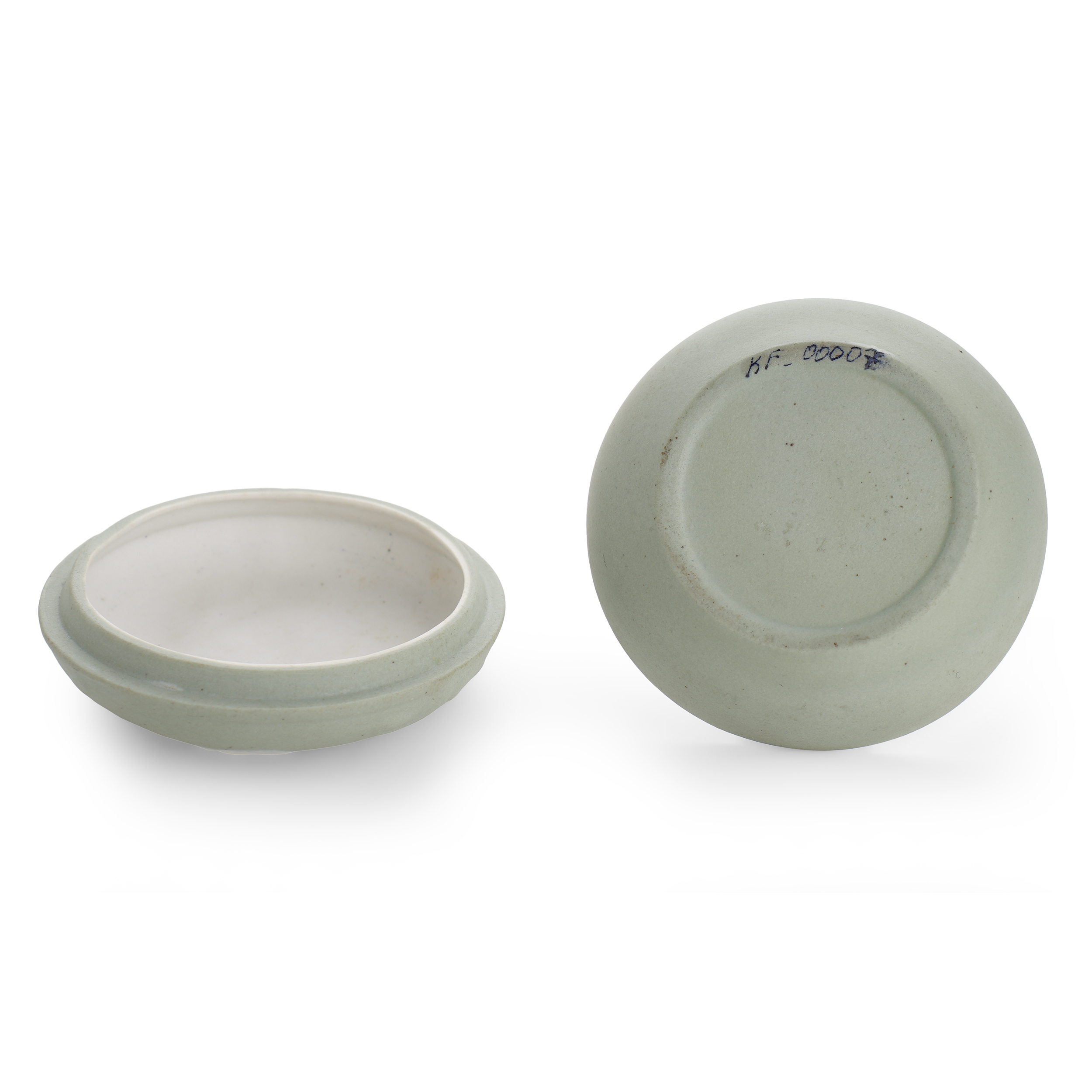 Белый и зеленый неглазурованный фарфор (бисквит), рельеф, клеймо отсутствует, Дмитровская фарфоровая фабрика, 1930 - 1950-е годы, диаметр – 8,5 см, высота – 4,5 см