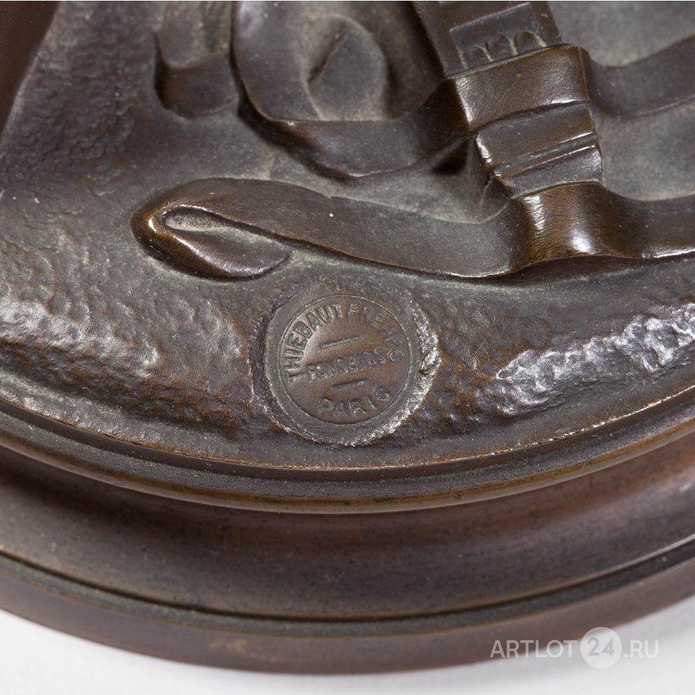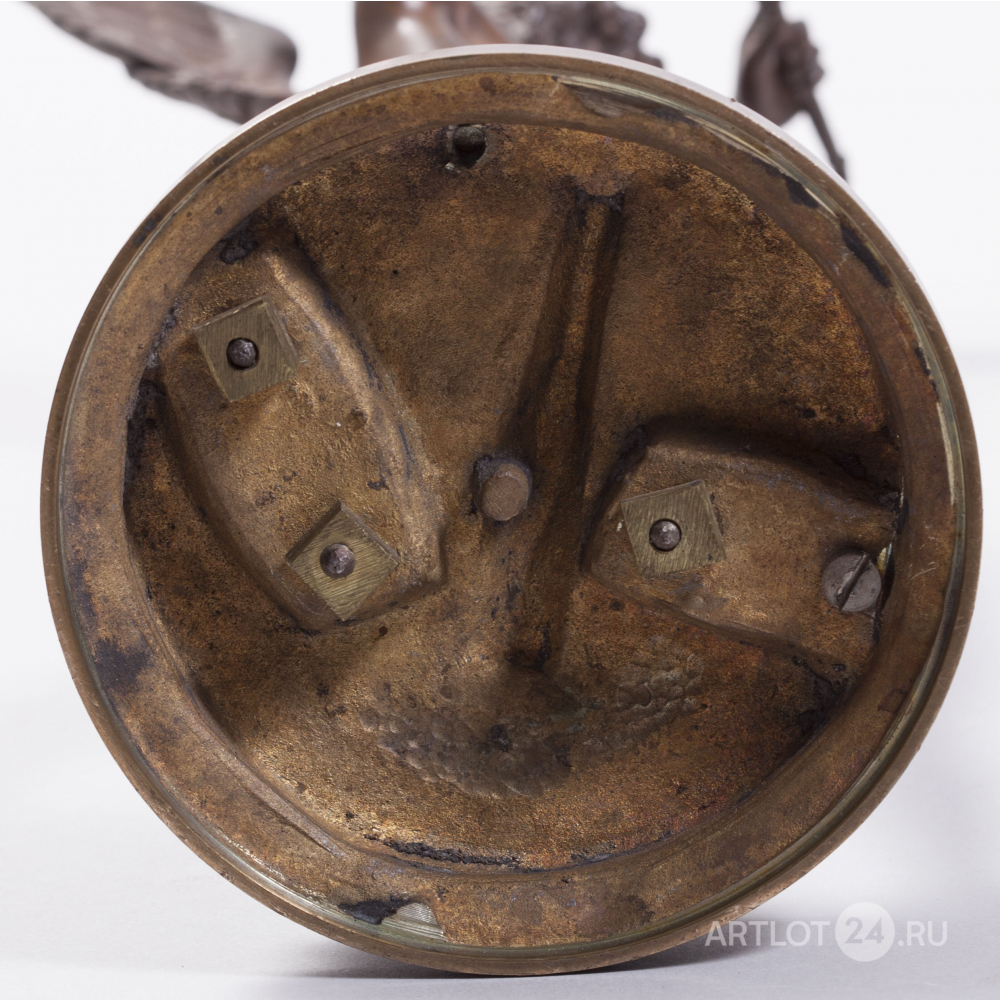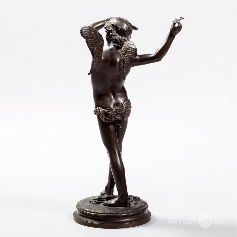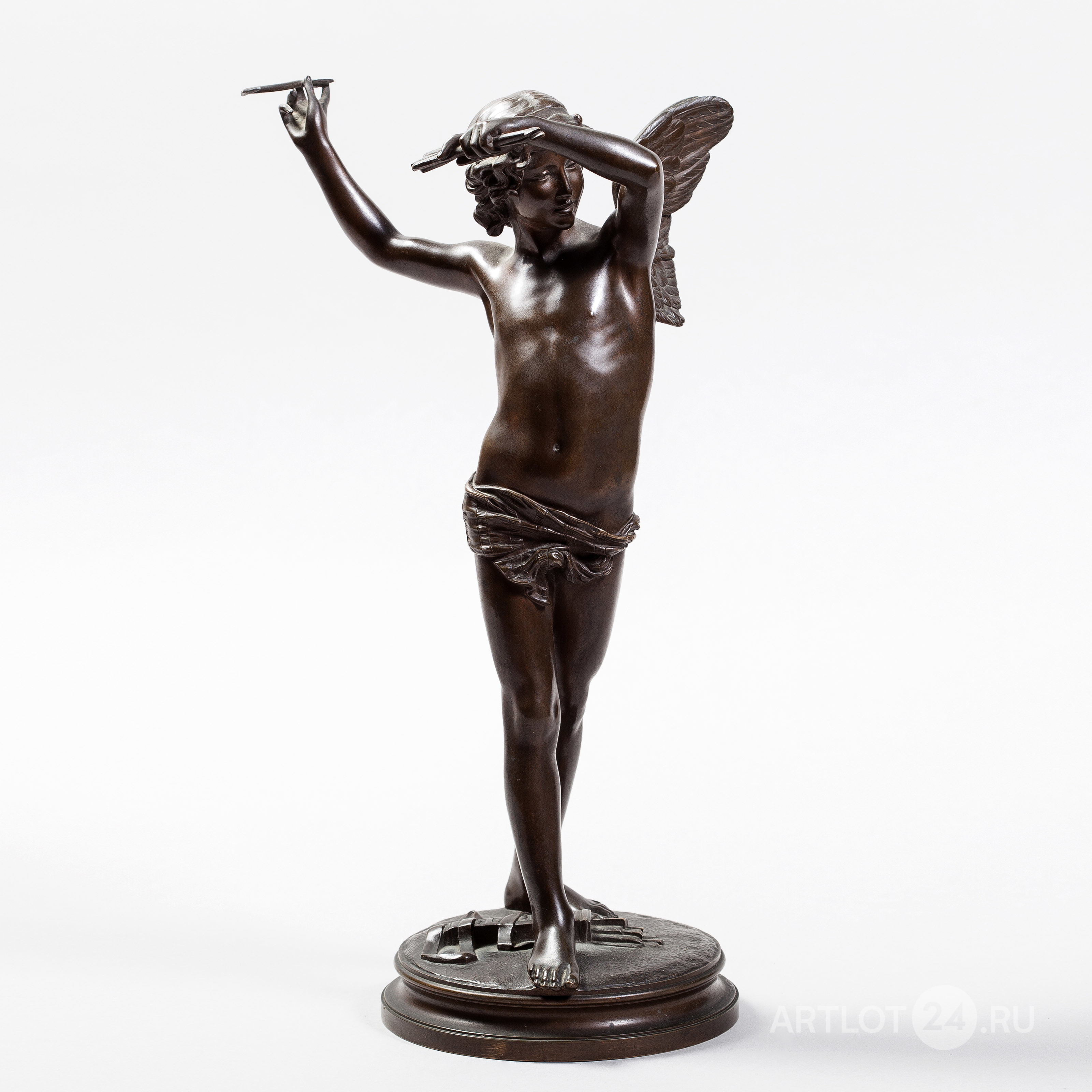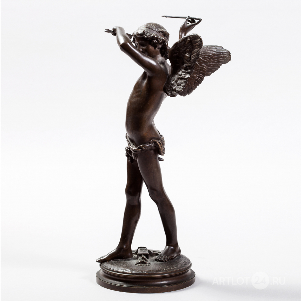 Фигура Эроса выполнена по модели Огюстена Жана Моро-Вотье (Augustin Moreau-Vauthier,1831-1893). Бронза, литье, патинирование, на поземе факсимиле подписи «A. Moreau Vauthier», а также штамп литейной мастерской «THIEBAUT FRERES FONDEURS PARIS», литейный завод братьев Тьебо, Франция, последняя четверть XIX века, высота – 37 см, диаметр основания - 13 см