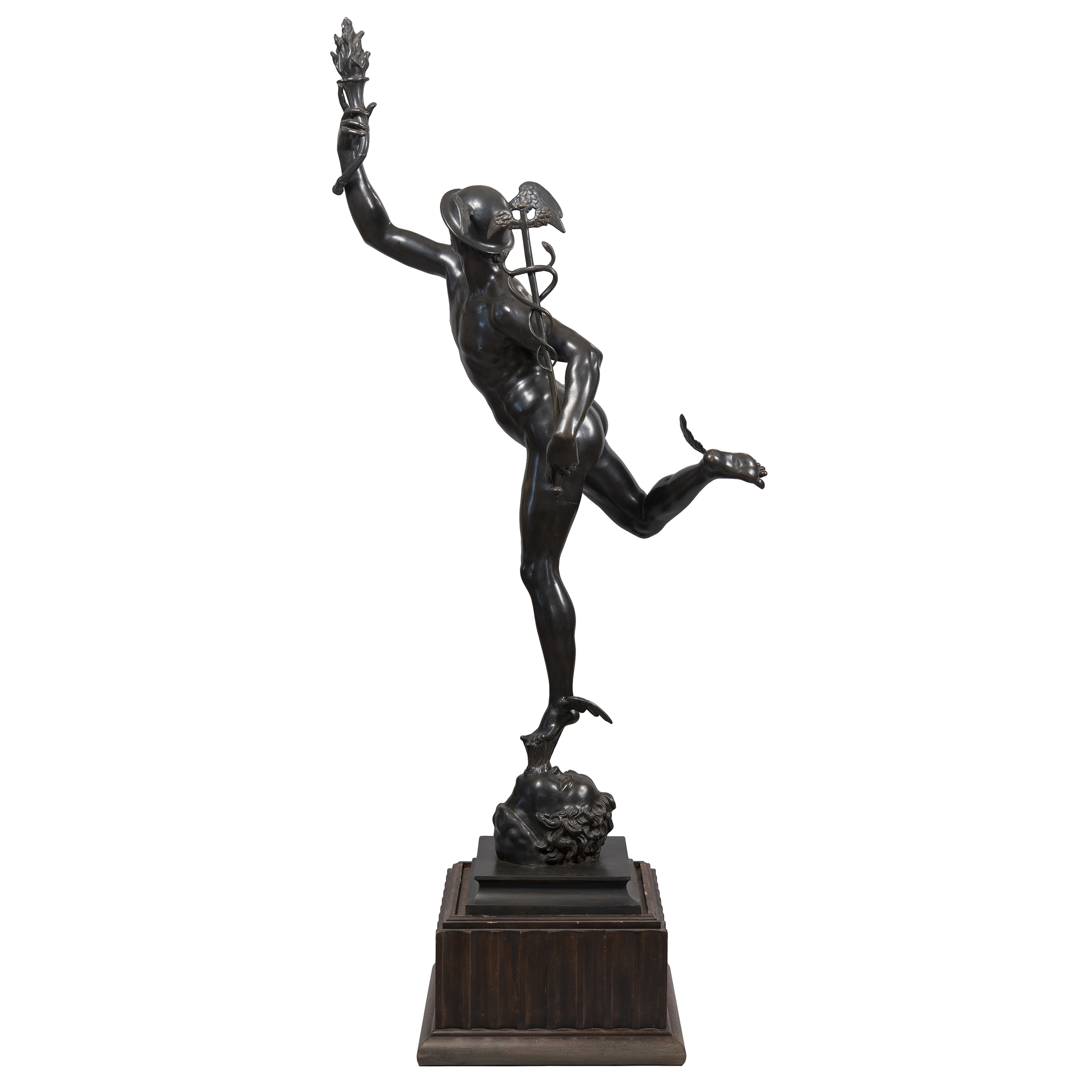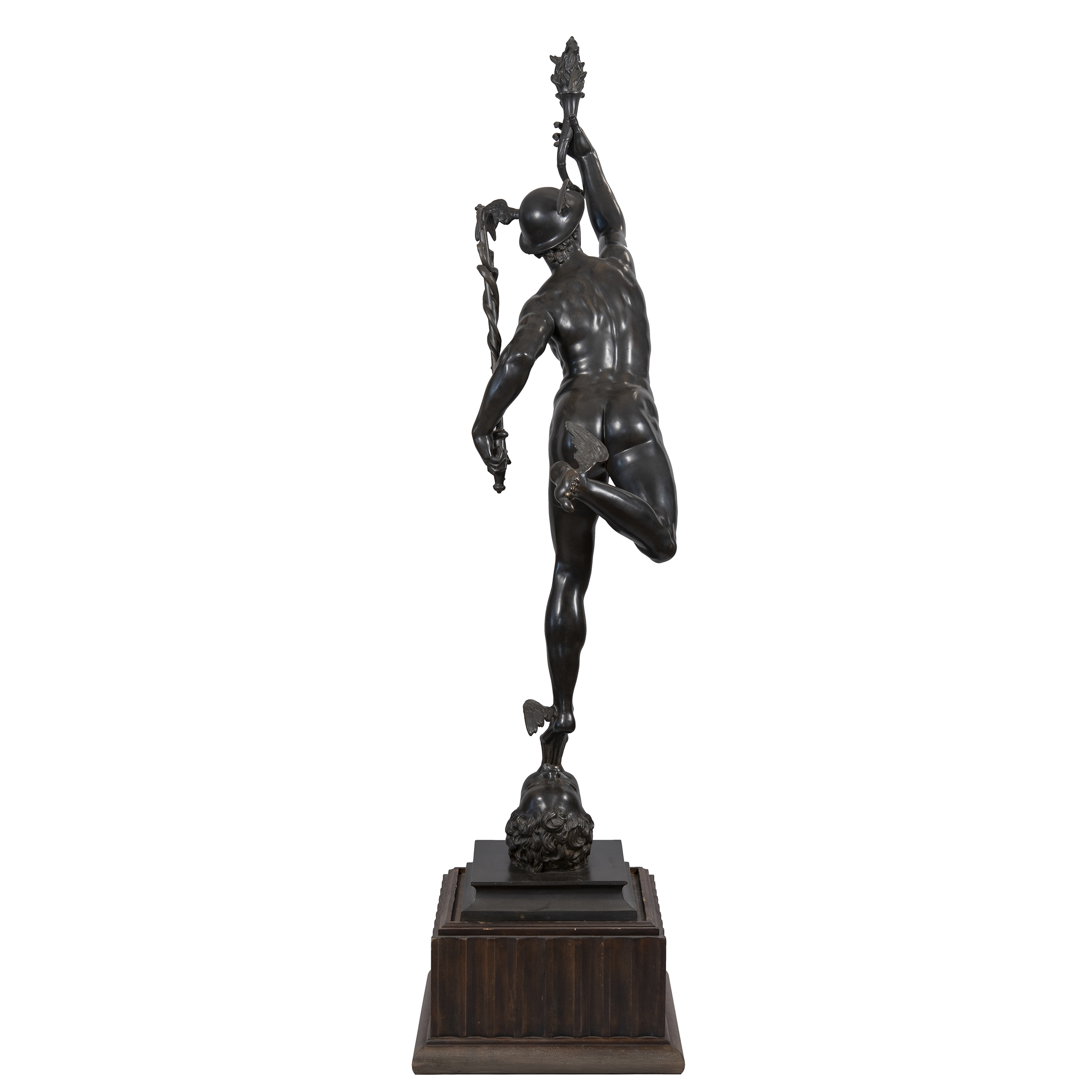 Выполнена по модели 1580 года флорентийского скульптора XVI века Джованни да Болонья (Джамболонья). Бронза, литье, проработка, патинирование, монтировка, на постаменте воспроизведение факсимиле подписи скульптора: «JEAN DE BOLOGNE», Европа, конец XIX века, высота - 201 см