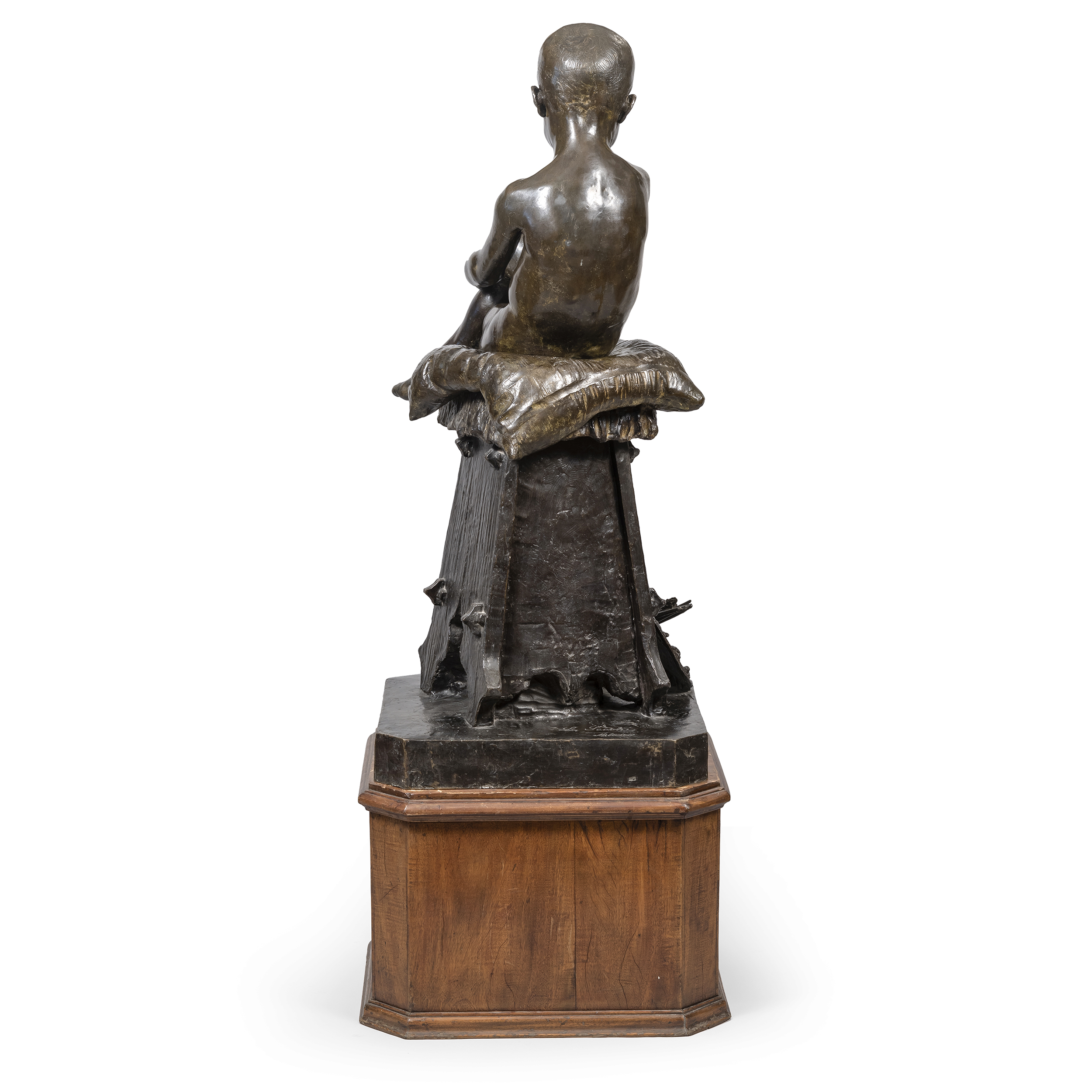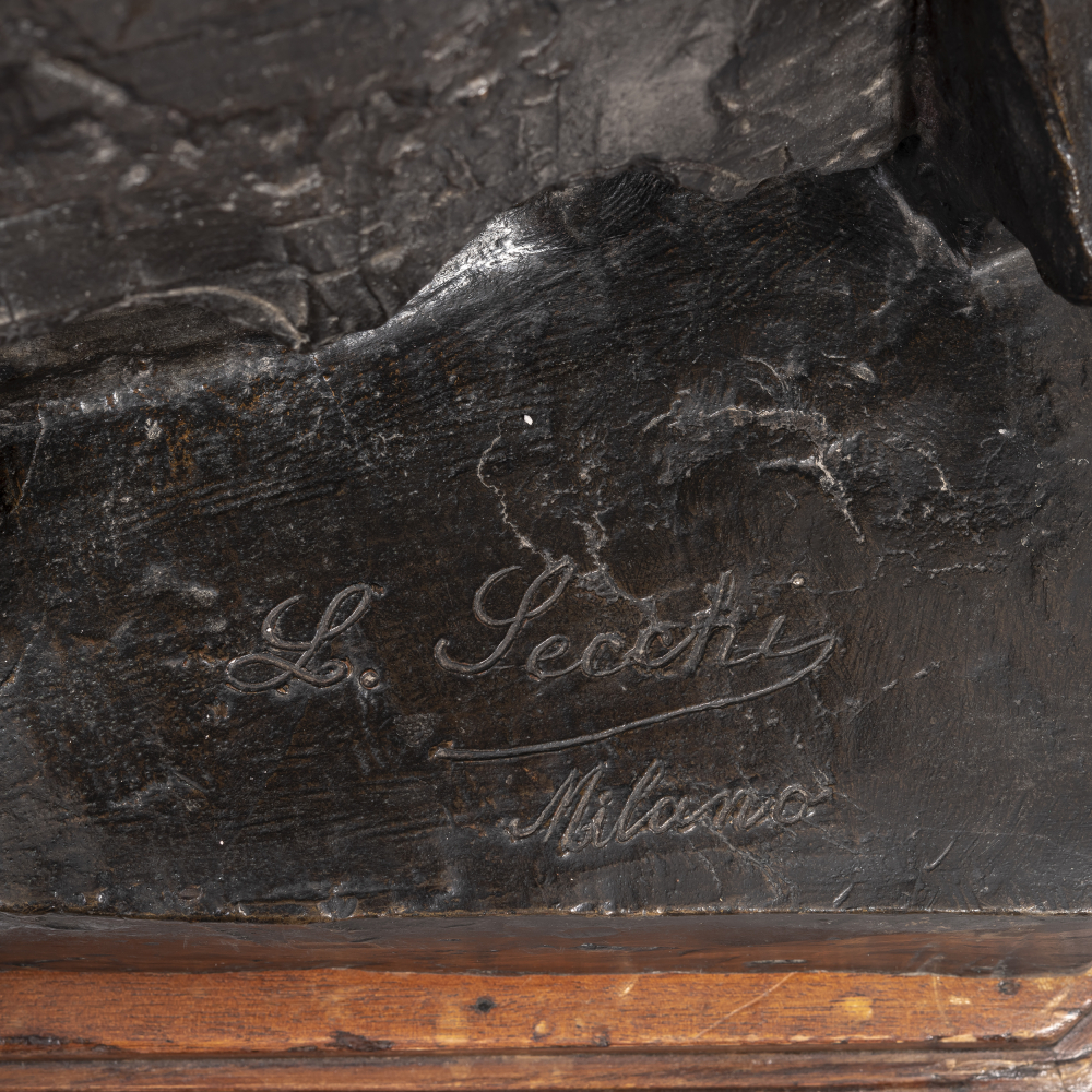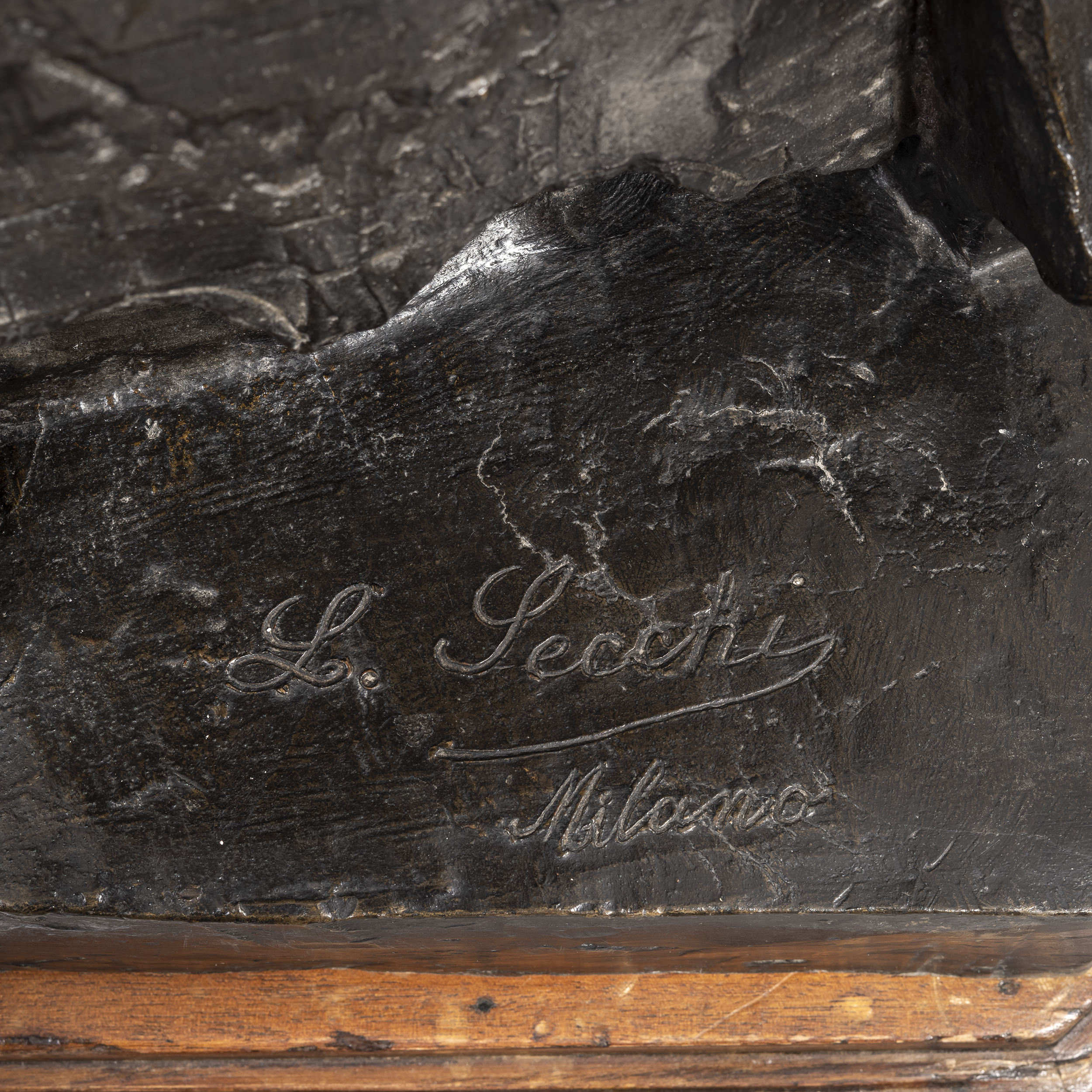 Или «Отдых натурщика» по известной модели ломбардского скульптора Луиджи Секки (Luigi Secchi, 1853-1921). Бронза, литье, патинирование, пьедестал красного дерева, на основании название скульптуры на итальянском языке «In Riposo», подпись в две строки «L.Secchi / Milano», марка литейной мастерской «G. STRADA and C FUSE», Италия, Милан, последняя четверть XIX века, высота скульптуры - 127 см, пьедестал - 41 х 56 х 61 см, общая высота - 168 см