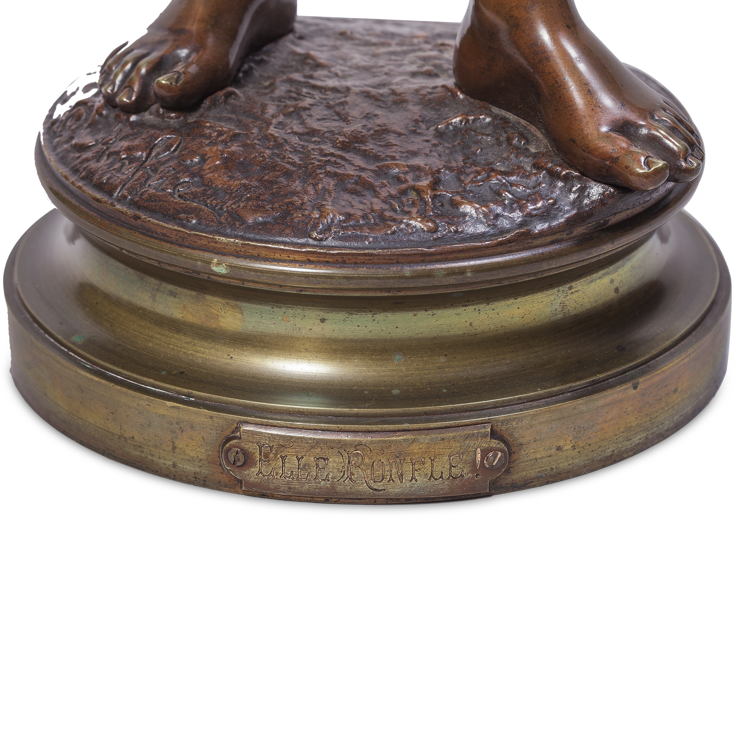 Бронза, литье, патинирование, монтировка; на основании «Elle Ronfle», в литье факсимиле подписи «C. Anfrie» - выполнена по модели французского скульптора Шарля Анфри (Charles Anfrie, 1833-1905); Высота - 63,5 см, вес – 12, 630 кг.