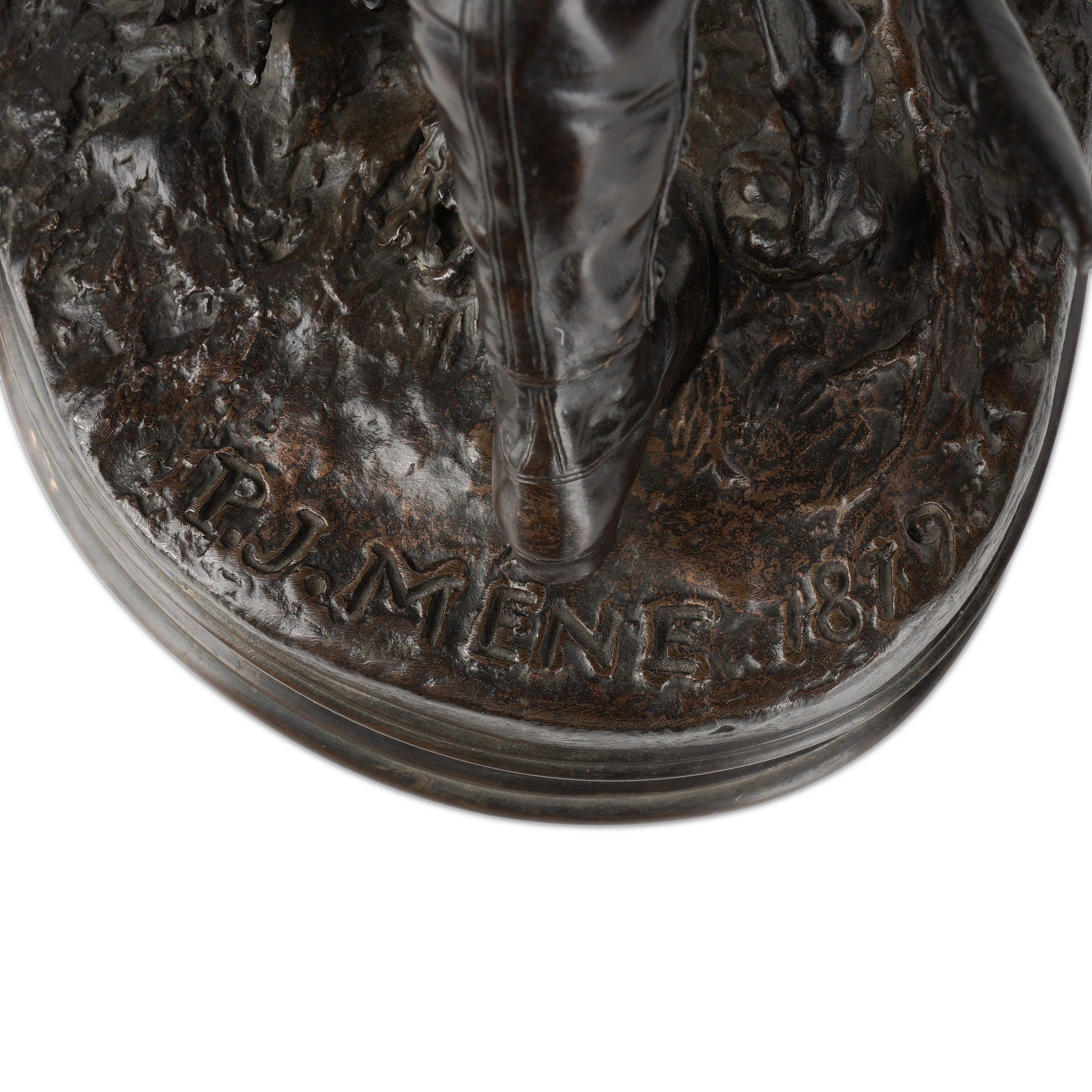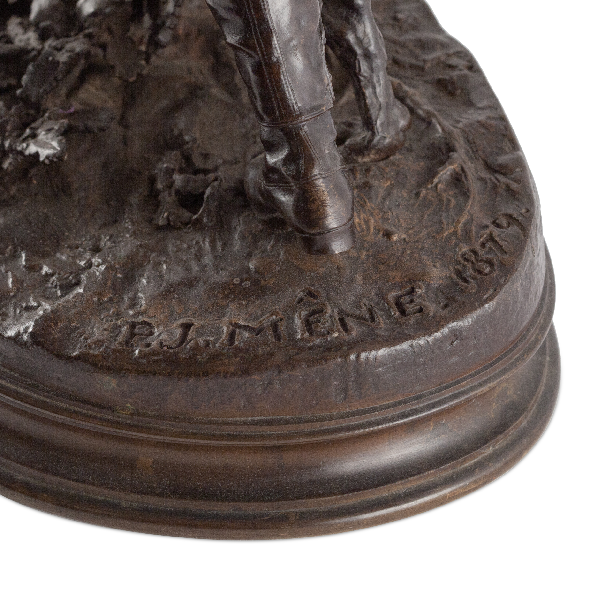 Бронза, литье, проработка, патинирование; на основании в литье дата и факсимиле подписи скульптора «P.J Mene 1879». Размер (в/д/ш): 46 х 37 х 22 см, вес – 12,55 кг.