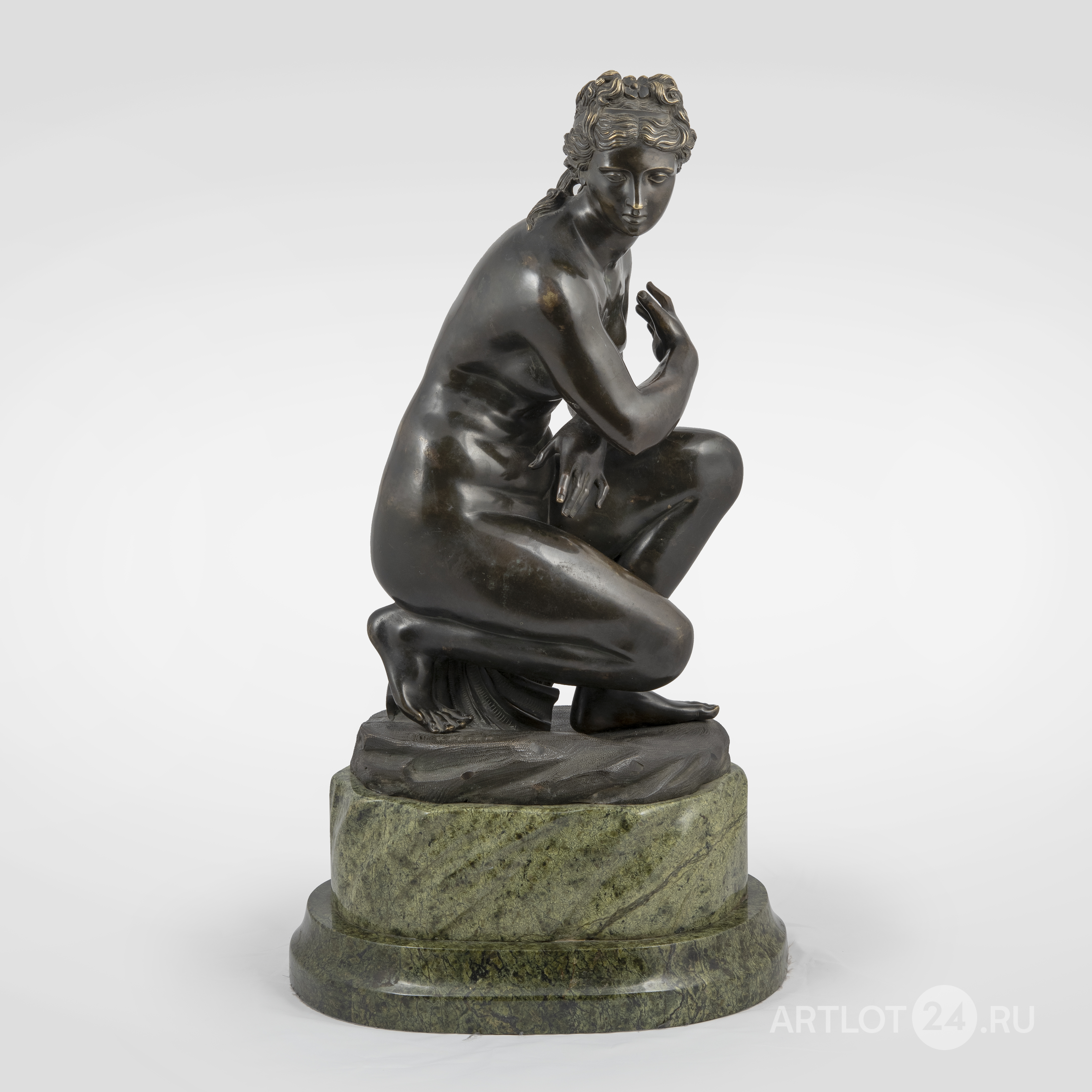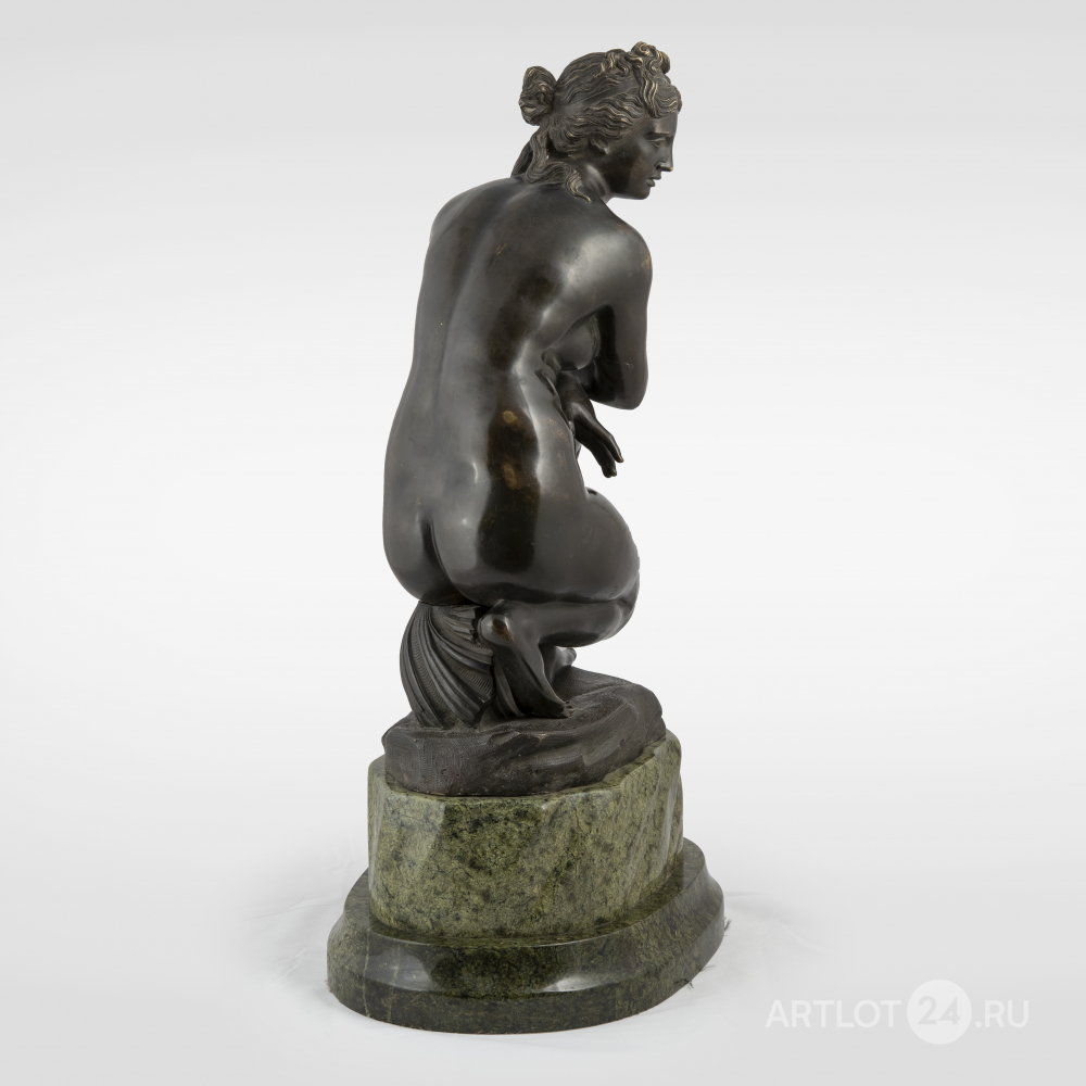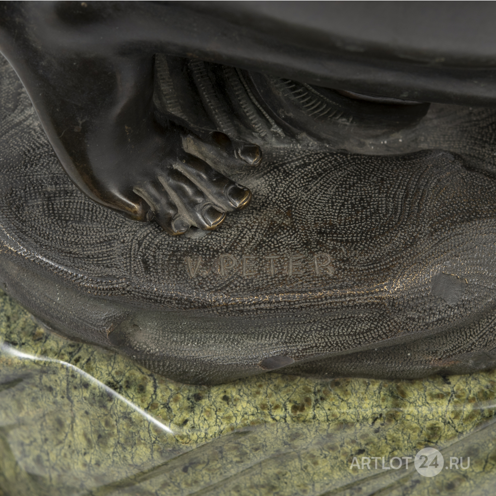 «Венера на корточках», «Венера присевшая» или «Купающаяся Афродита». Бронза, литье, патинирование, на основании в литье факсимиле подписи скульптора «V.PITER», основание - змеевик.