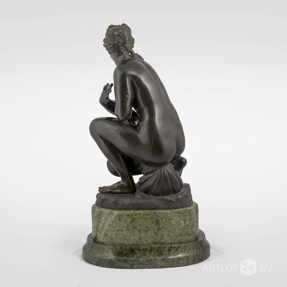 Представленная скульптура является прекрасным классическим образцом интерьерной скульптуры, популярной в Западной Европе, особенно в XIX веке. Скульптура, выполненная европейскими мастерами всегда отличалась высочайшем уровнем художественно-технического исполнения и часто являлась точными или модифицированными копиями с широко известных и популярных античных образцов, хранящихся в музеях. Данная фигура, Богини любви изображена присевшей на раковину, выполнена как реплика с известного античного произведения эпохи эллинизма «Коленопреклонённая Афродита», работы древнегреческого ваятеля Дойдалса из Вифинии (середина III века до нашей эры). Оригинал мраморной скульптуры, как и ее римская копия сохранились в экспозиции Национального музея в Риме.