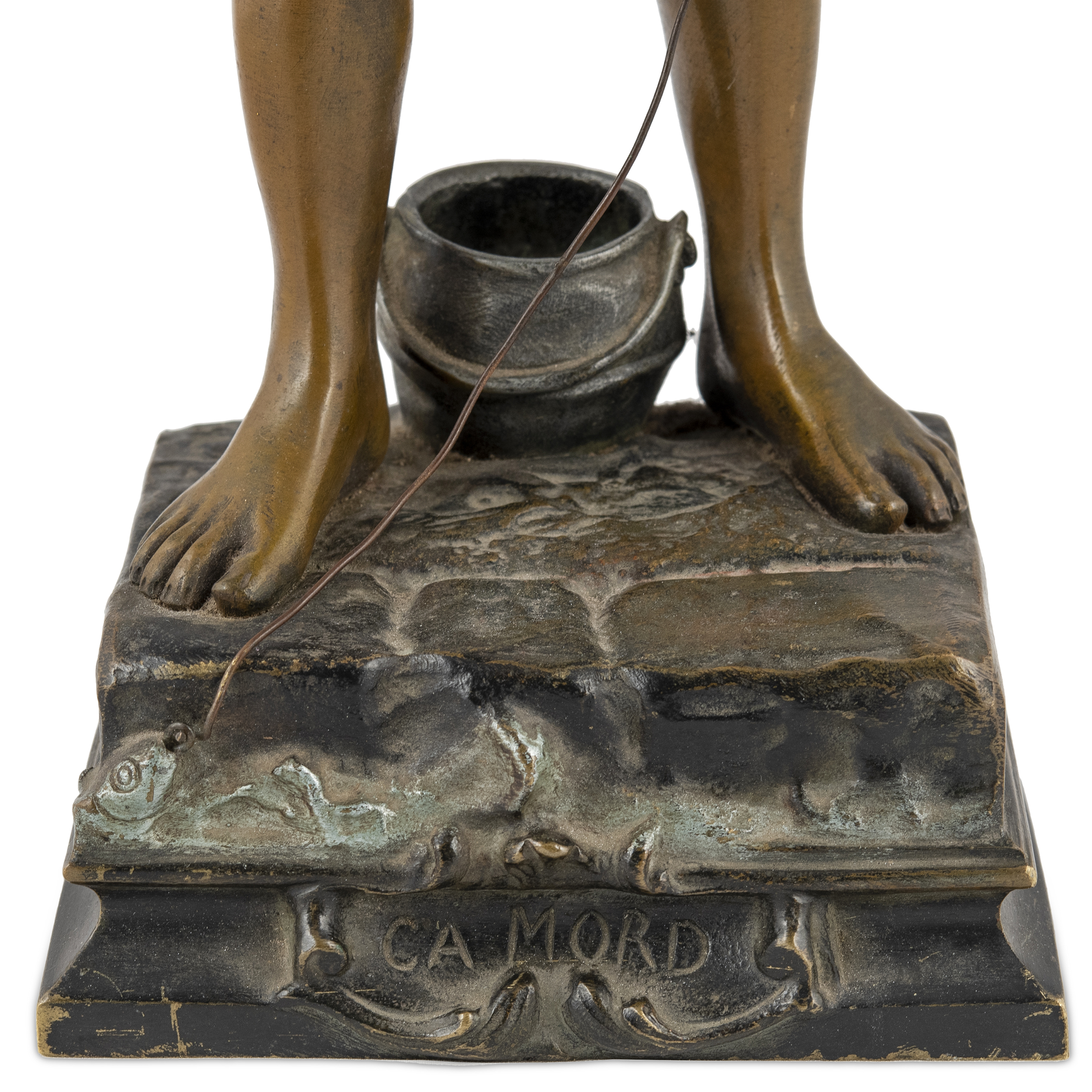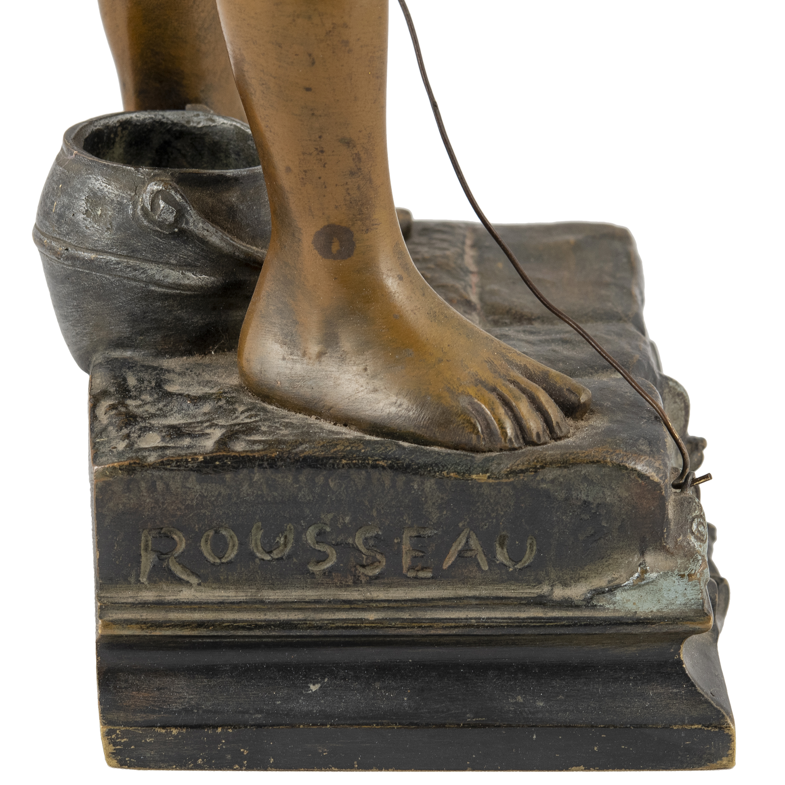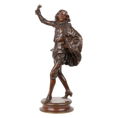 Оригинальное название - «Клюет». По модели французского скульптора Поля Люазо-Руссо (Paul Louis Emile Loiseau-Rousseau, 1861-1927). Бронза, литье, чеканка, шлифовка, полихромное патинирование, монтировка, в основании постамента надпись «Ca MORD», справа в литье факсимиле подписи скульптора «Rousseau», Франция, первая половина ХХ века, высота - 43 см