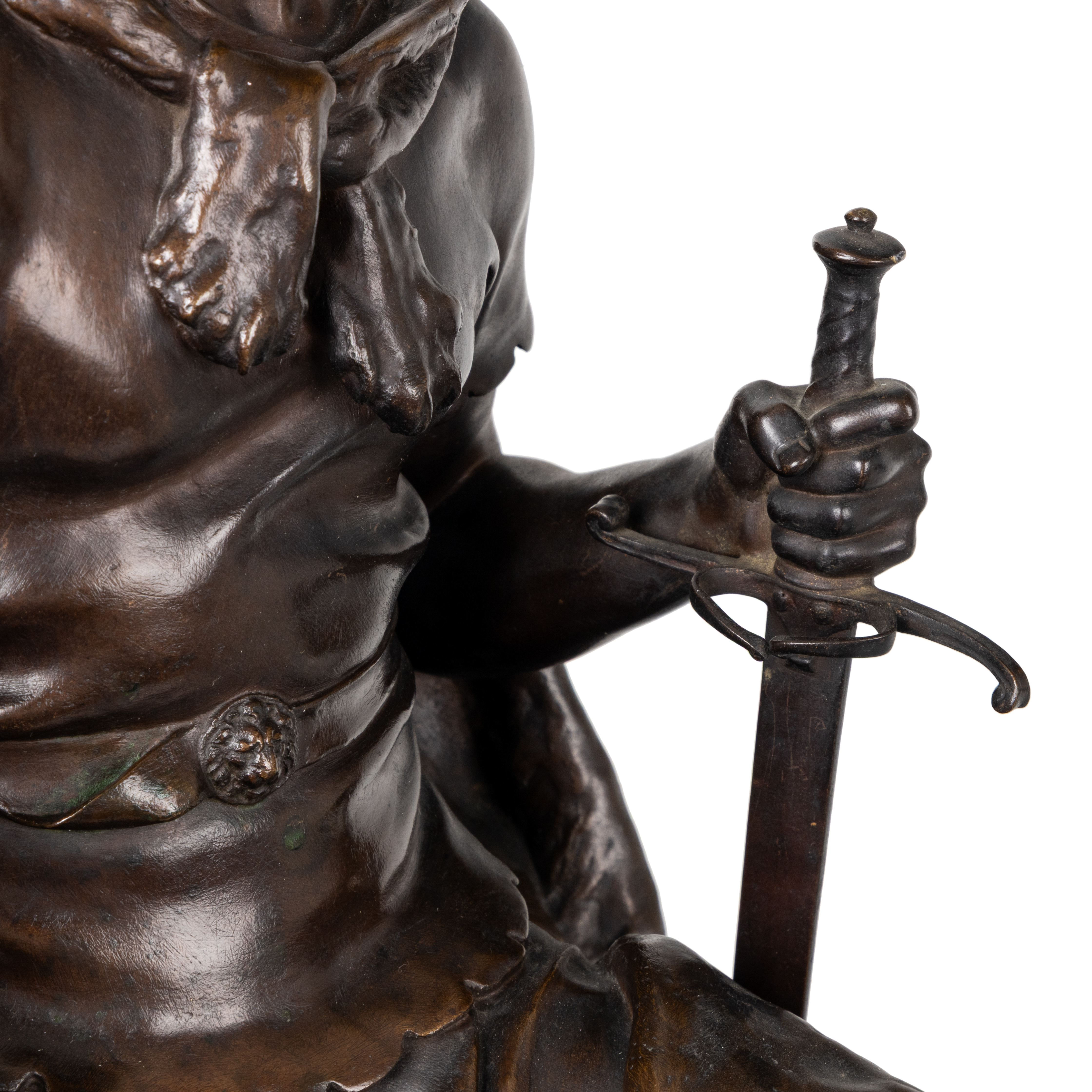 Бронза, мрамор. Высота:66 см По модели французского скульптора Поля Дюбуа, подпись на основании «F.BARBEDIENNE».