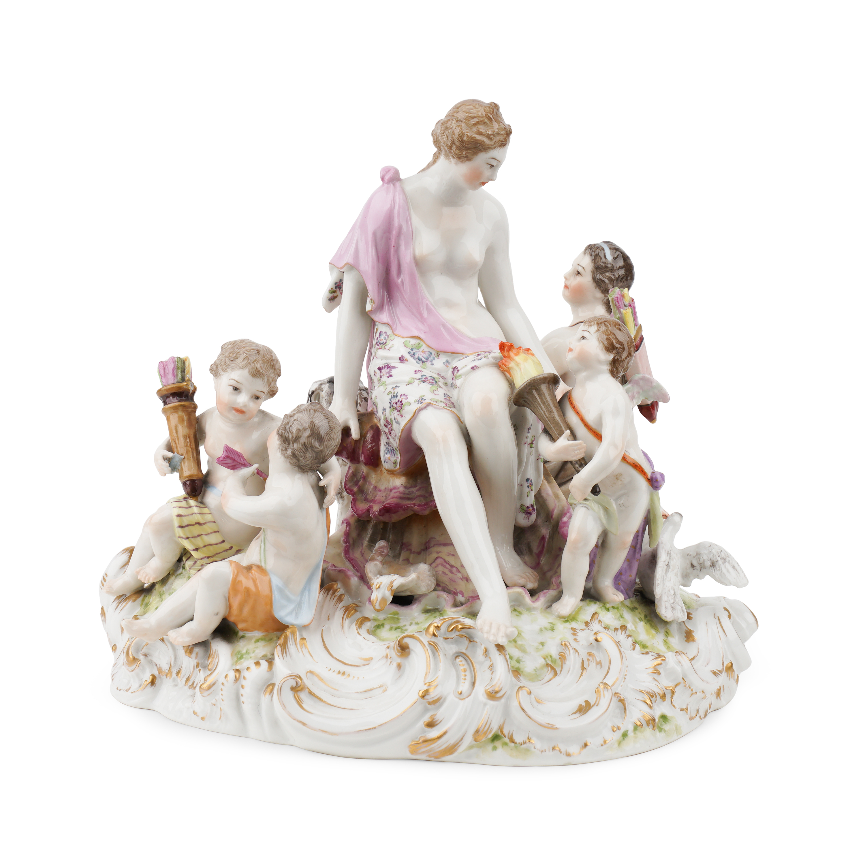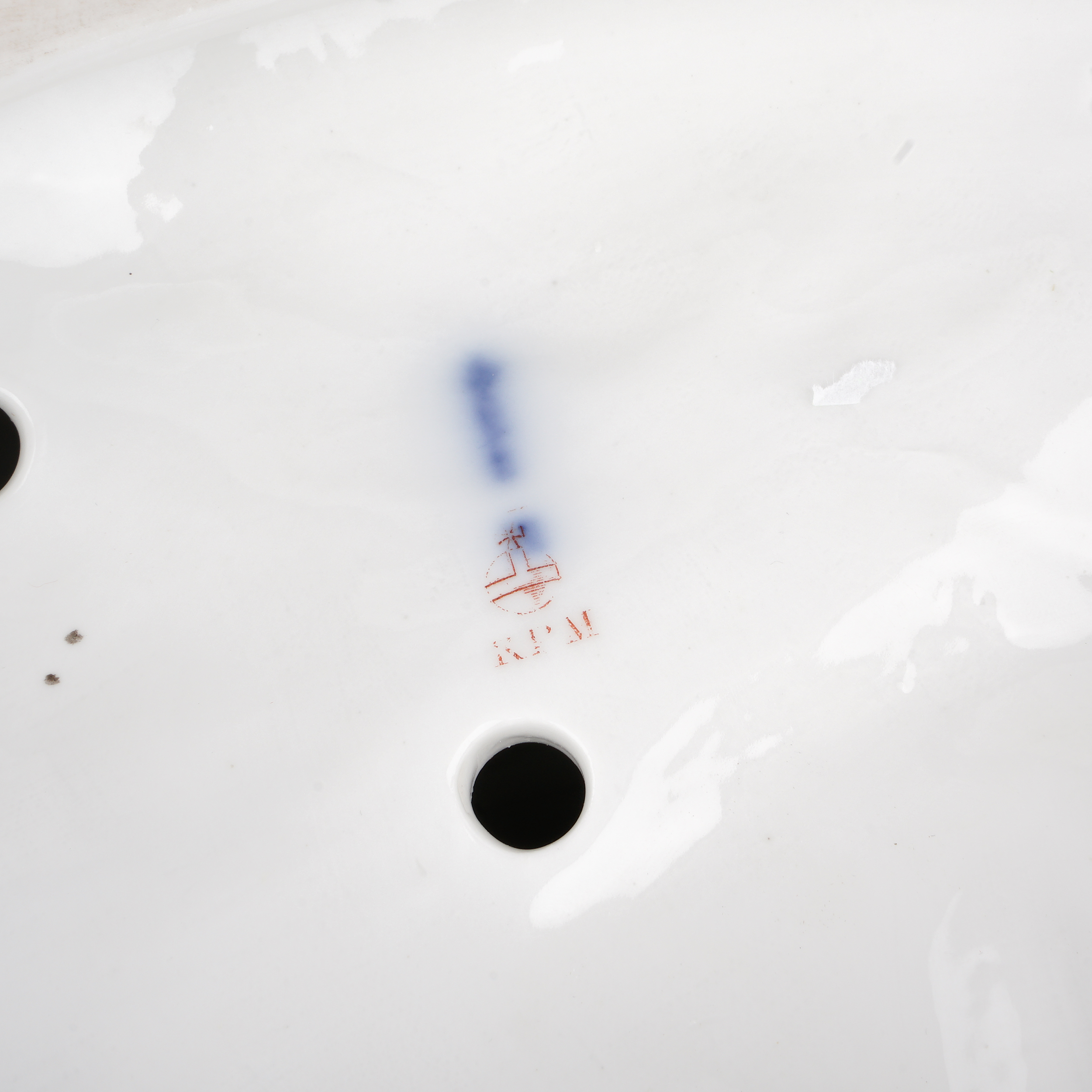 Фарфор, лепка, полихромная надглазурная роспись, клеймо кобальтом подглазурно в виде «скипетра», красная печатная «держава» (с 1832 года) и «R» в тесте Королевской Берлинской мануфактуры (KPM), Германия, Берлин, вторая половина XIX века, размер (в/ш/г): 21,5 х 23,5 х 20 см