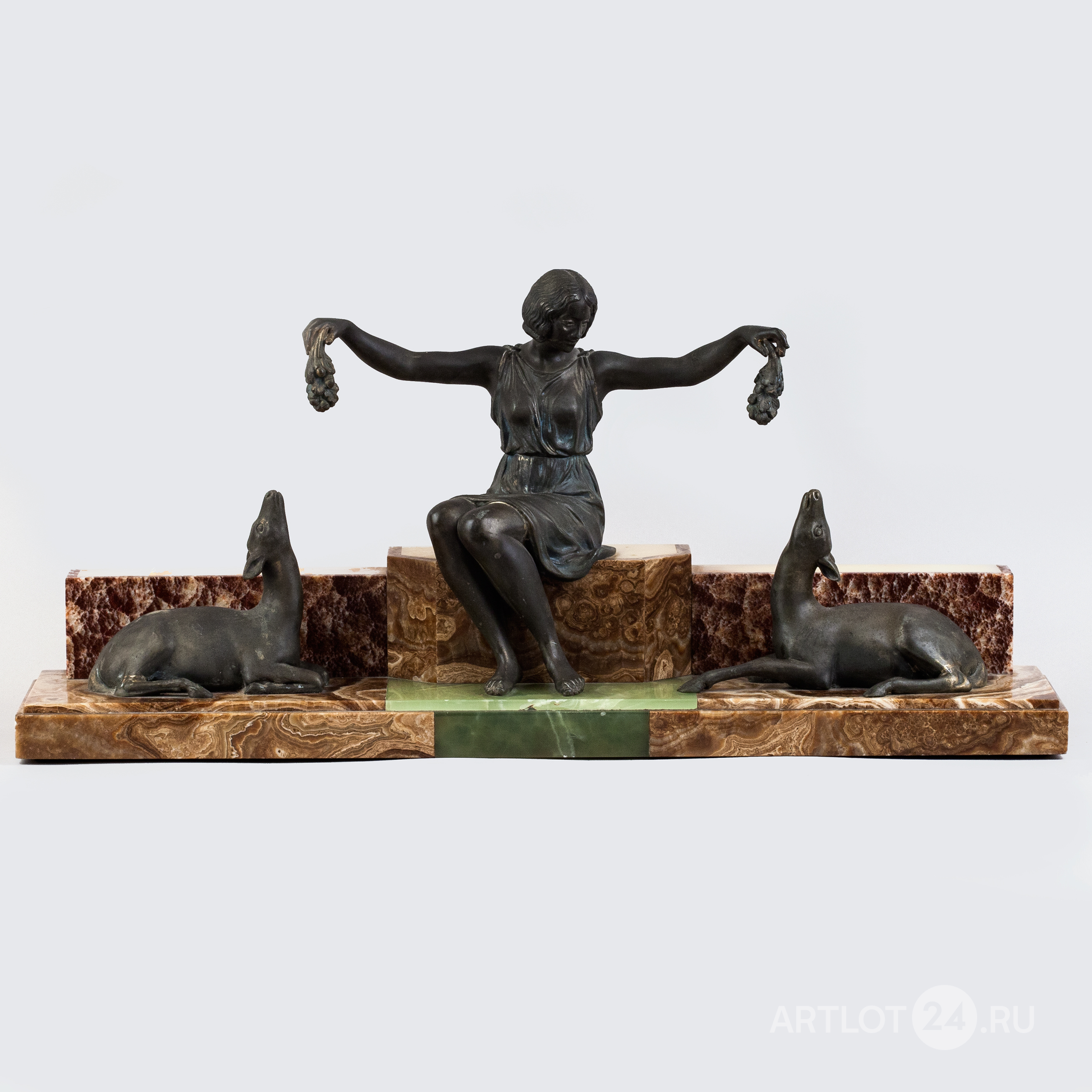 Шпиатр, отливка, проработка, монтировка, оникс, мрамор, скульптор: M.SECONDO. Франция, 1920-30-е годы , размеры (в/ш/г): 31 х 69,5 х 16 см.