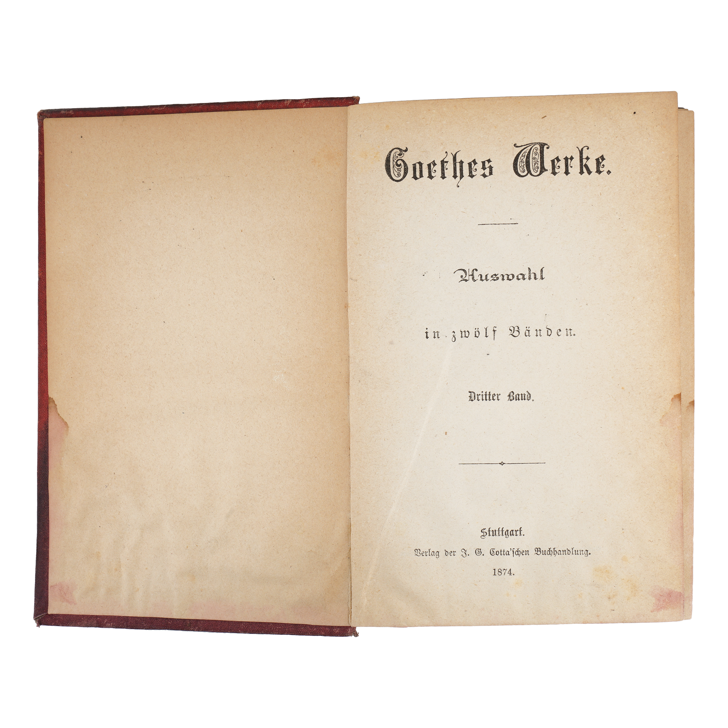 Собрание сочинений Гёте на немецком языке. "Goethes Werke. Husmahl in zwolf Banden". Издание 1874 года. Штутгарт.