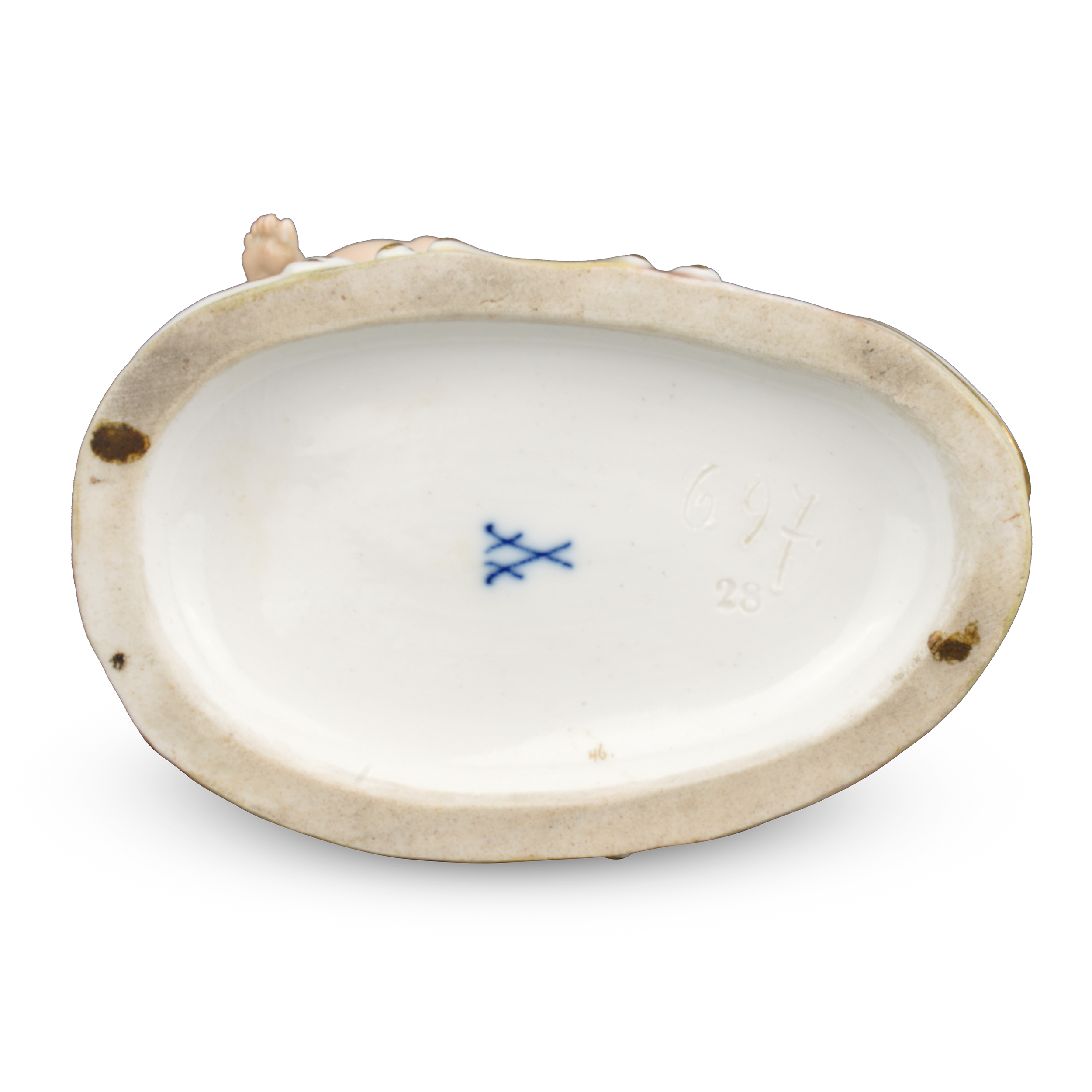 Фарфор, полихромная роспись, золочение, клеймо кобальтом в виде скрещенных мечей, цифры «697» и «28» в тесте, Германия, высота – 11,8 см.