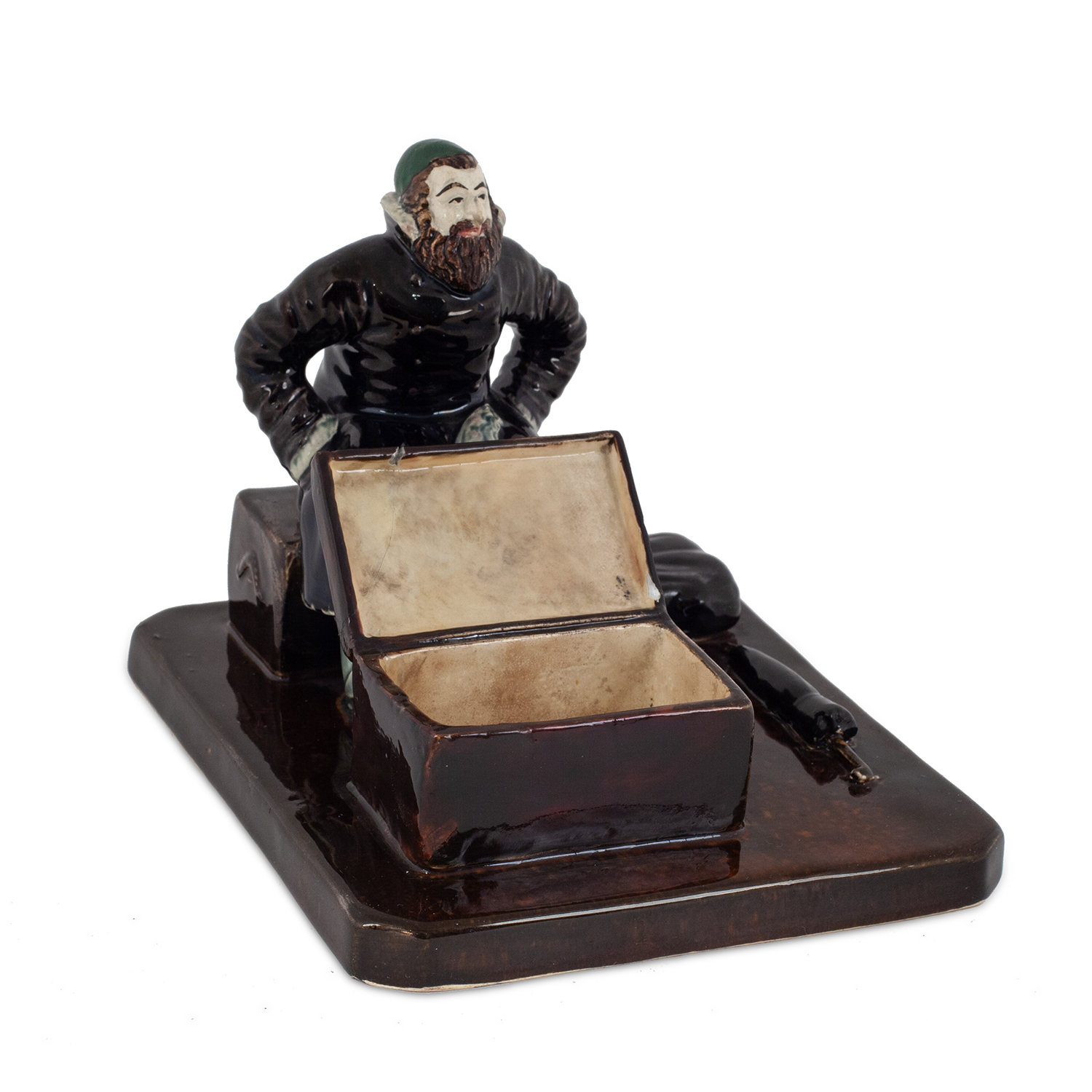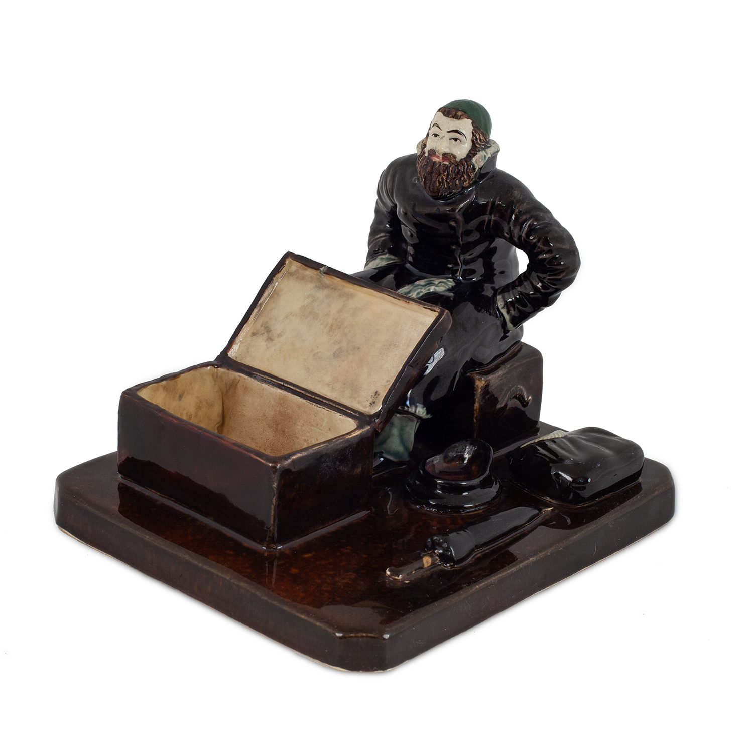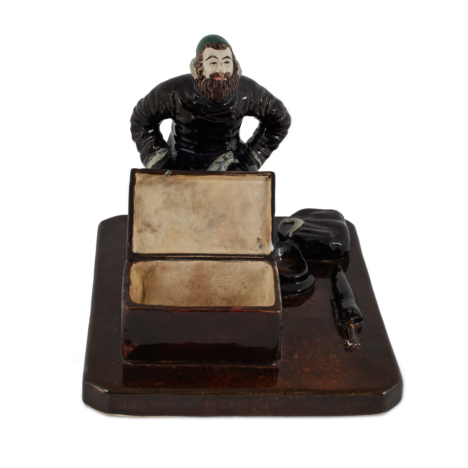 Состояние: Сколы по месту склейки с внешней стороны, два скола на крышке, следы тонировки на лице, кипе, приклеен угол крышки сундука