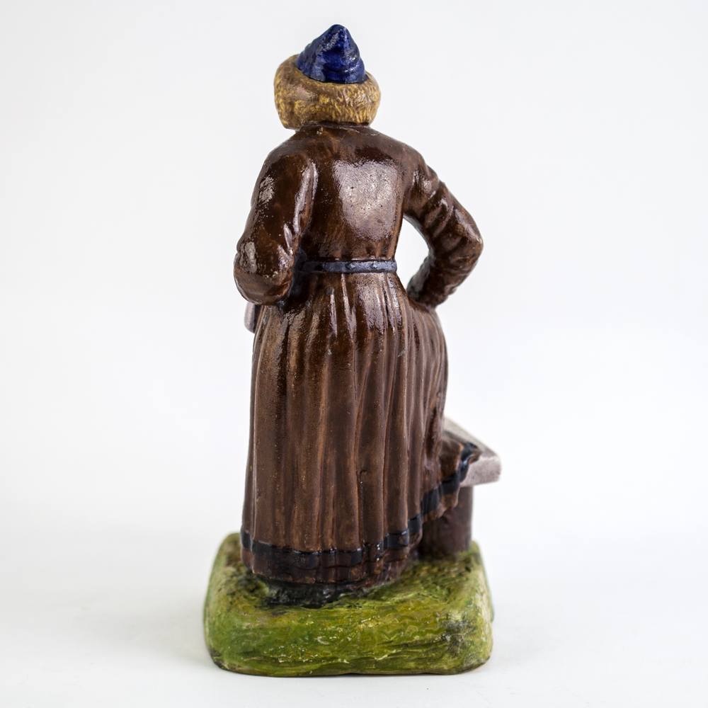 Бисквит, полихромная роспись, клеймо отсутствует, выполнена по модели фигуры из серии «Народы России» завода Ф.Я. Гарднера, произведена на неизвестном артельном предприятии. Россия, 1920-е гг., высота – 23 см.