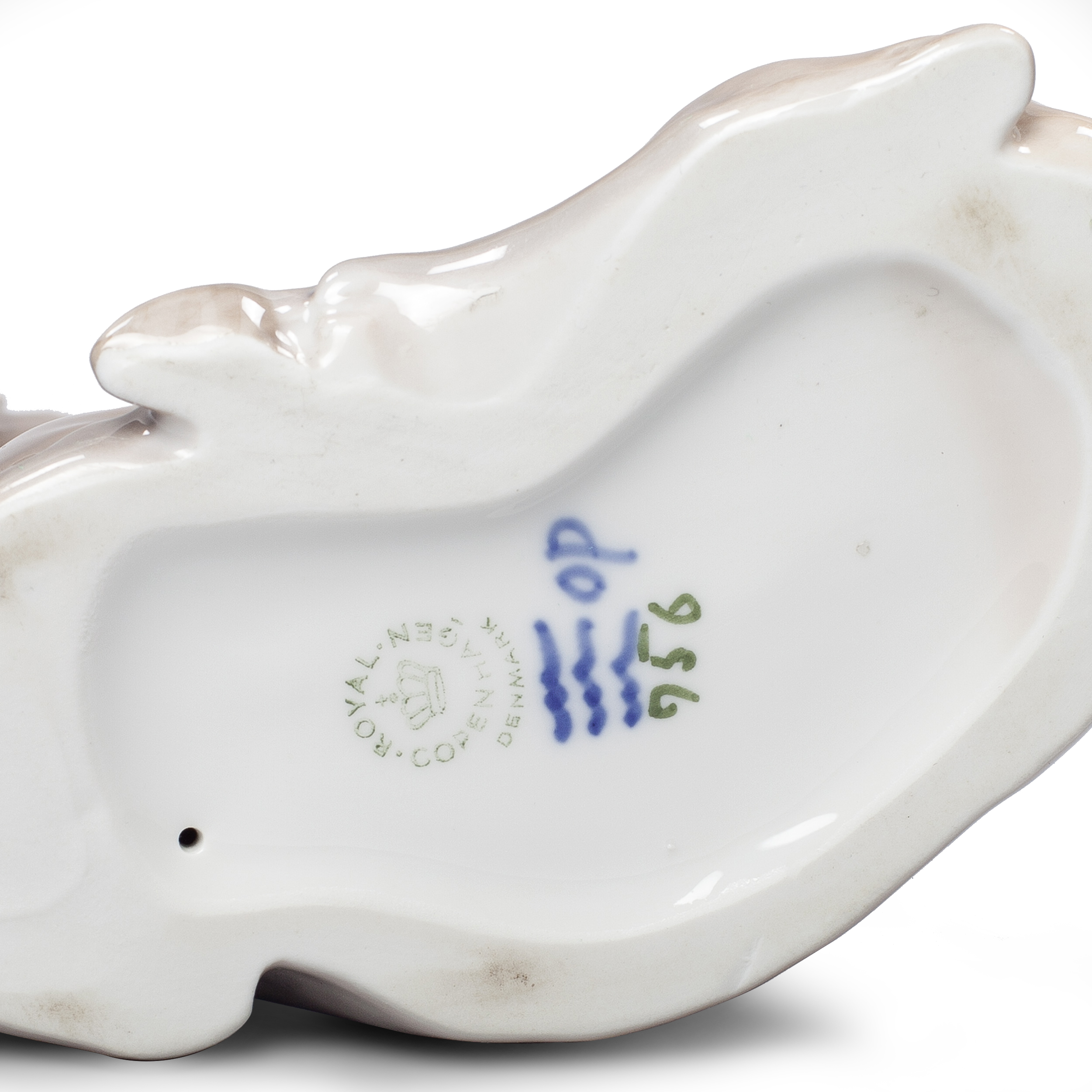 Фарфор, полихромная подглазурная роспись, клеймо: зеленым «Royal Copenhagen Denmark», синим «три волны», номер «756», инициалы художника «ОР», автор модели скульптор Кнуд Кюн (Knud Kyhn ,1880-1969). Копенгагенская королевская фарфоровая мануфактура, Дания, Копенгаген, размер: 14 х 16 см.