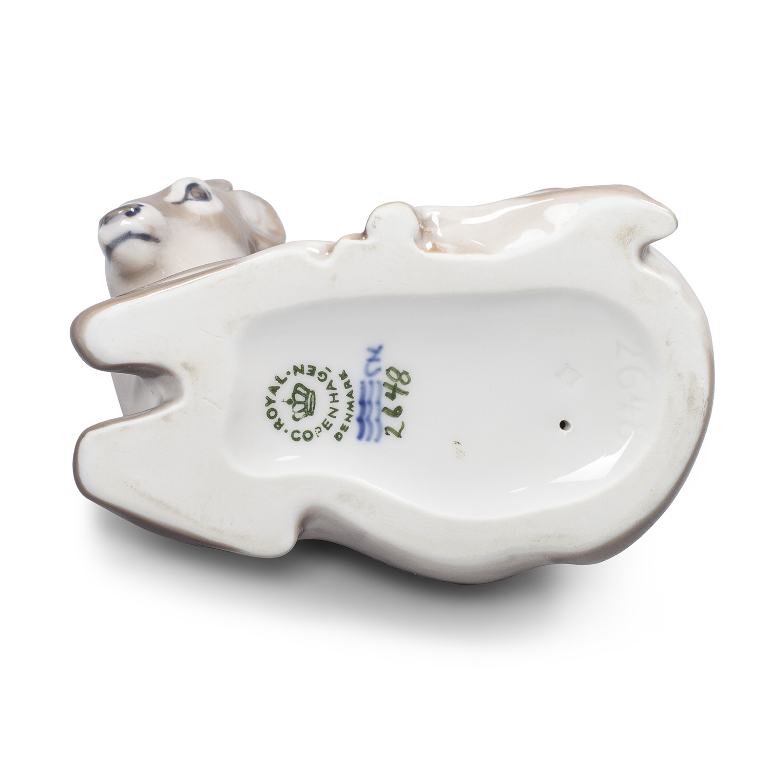 Фарфор, подглазурная полихромная роспись, клеймо: зеленым «Royal Copenhagen Denmark», номер 2648 и в тесте, синим «три волны», инициалы художника, скульптор Knud Kyhn, модель 2648, марка «Три волны», «Royal Copenhagen. Denmark», Дания, Копенгагенская королевская мануфактура, высота - 9 см, длина - 11 см