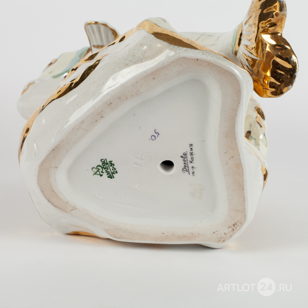 Фарфор, полихромная роспись, золочение, люстр, клеймо зеленое печатное «ДЗ Дулево 2с - 54», цифры в тесте «41», от руки «Дулево. ск-р Кожин», автор модели Кожин Павел Михайлович (1904–1975), СССР, Дулевский фарфоровый завод, 1954 год, высота – 25 см