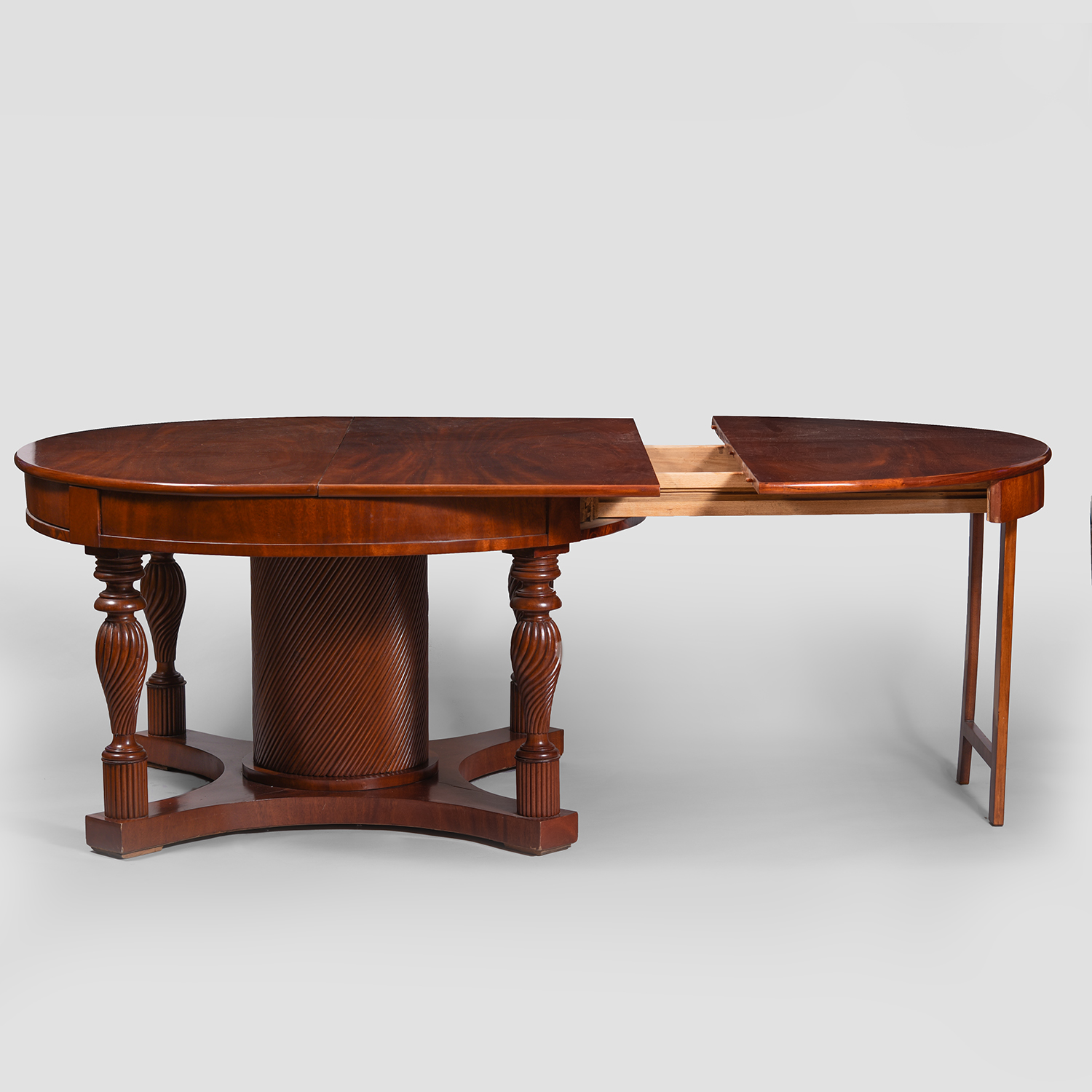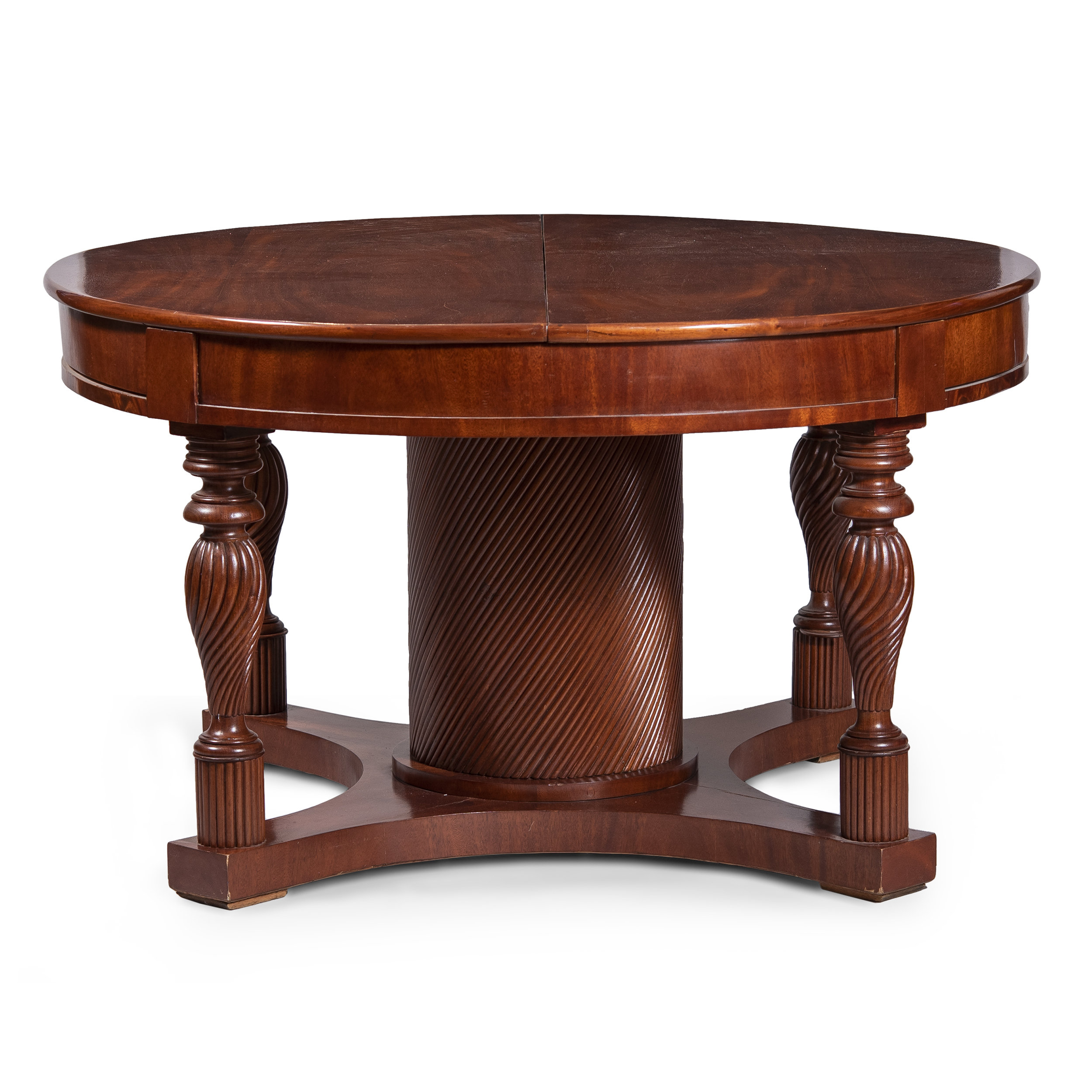 Красное дерево, шпонирование, массив, резьба, точение, полировка, Россия, 2-я половина XIX века, размеры: высота 80 см, диаметр 135 см