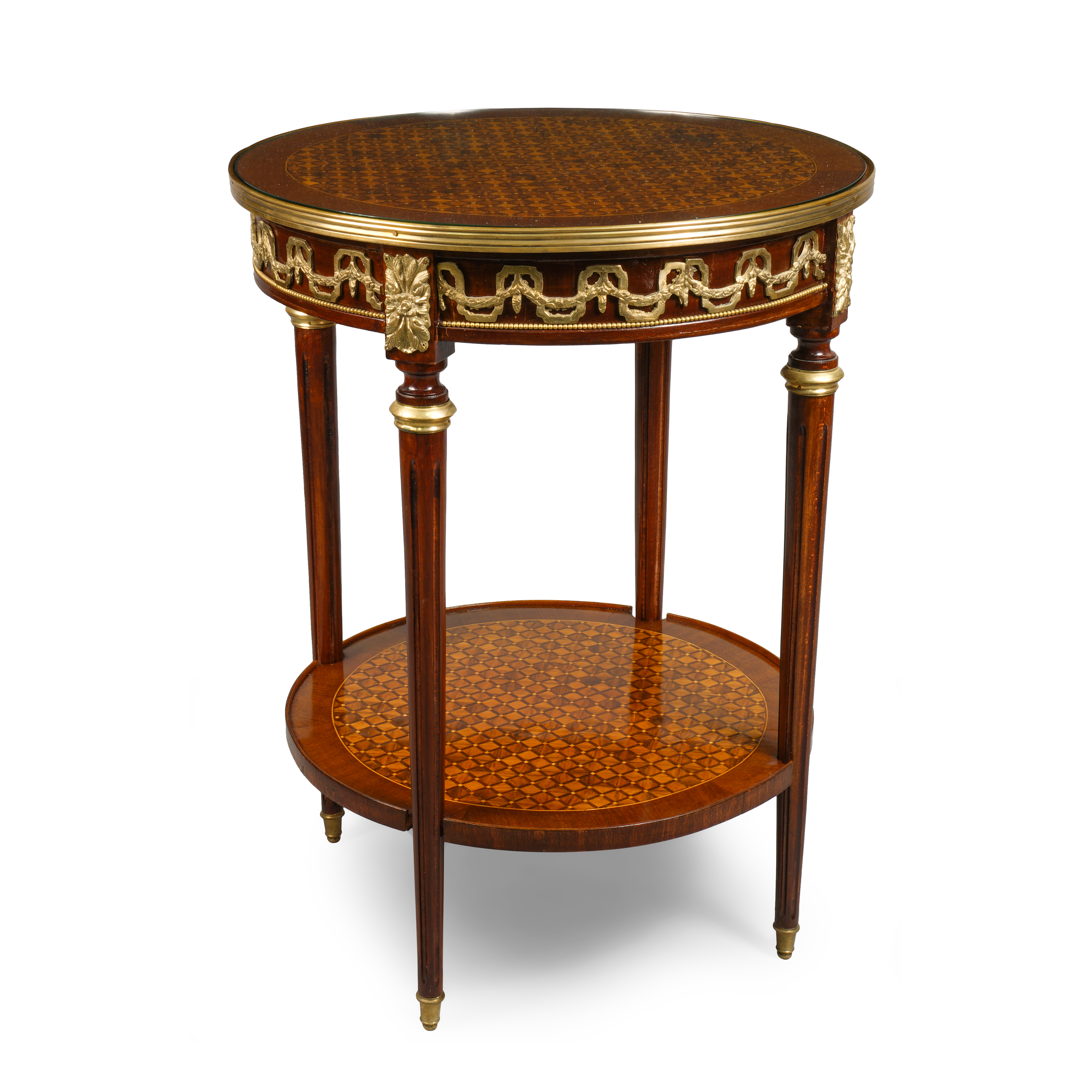 Орех, паркетри с использованием фруктовых пород дерева, бронза, латунь.