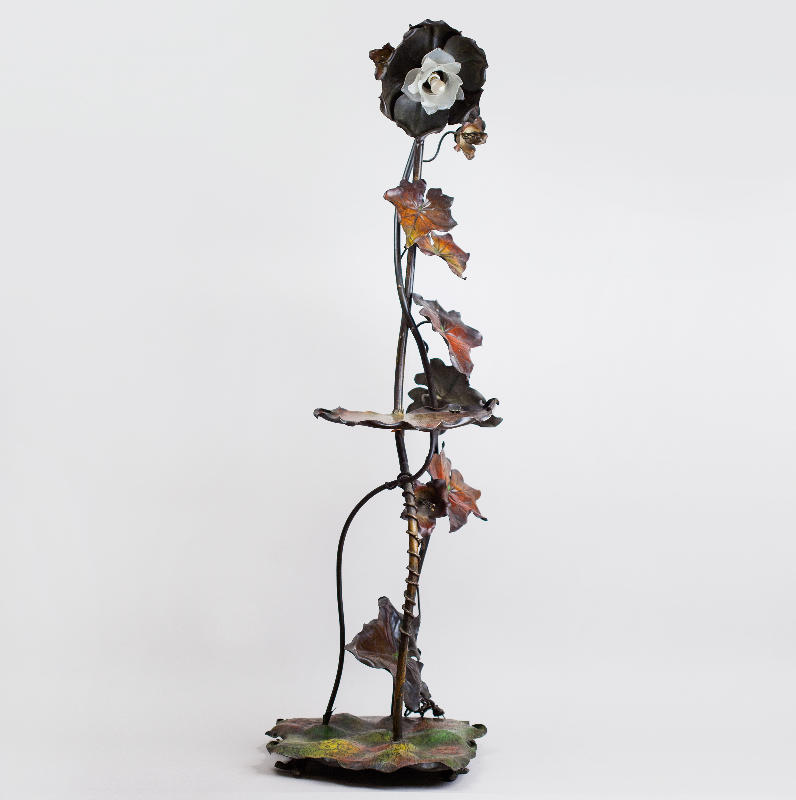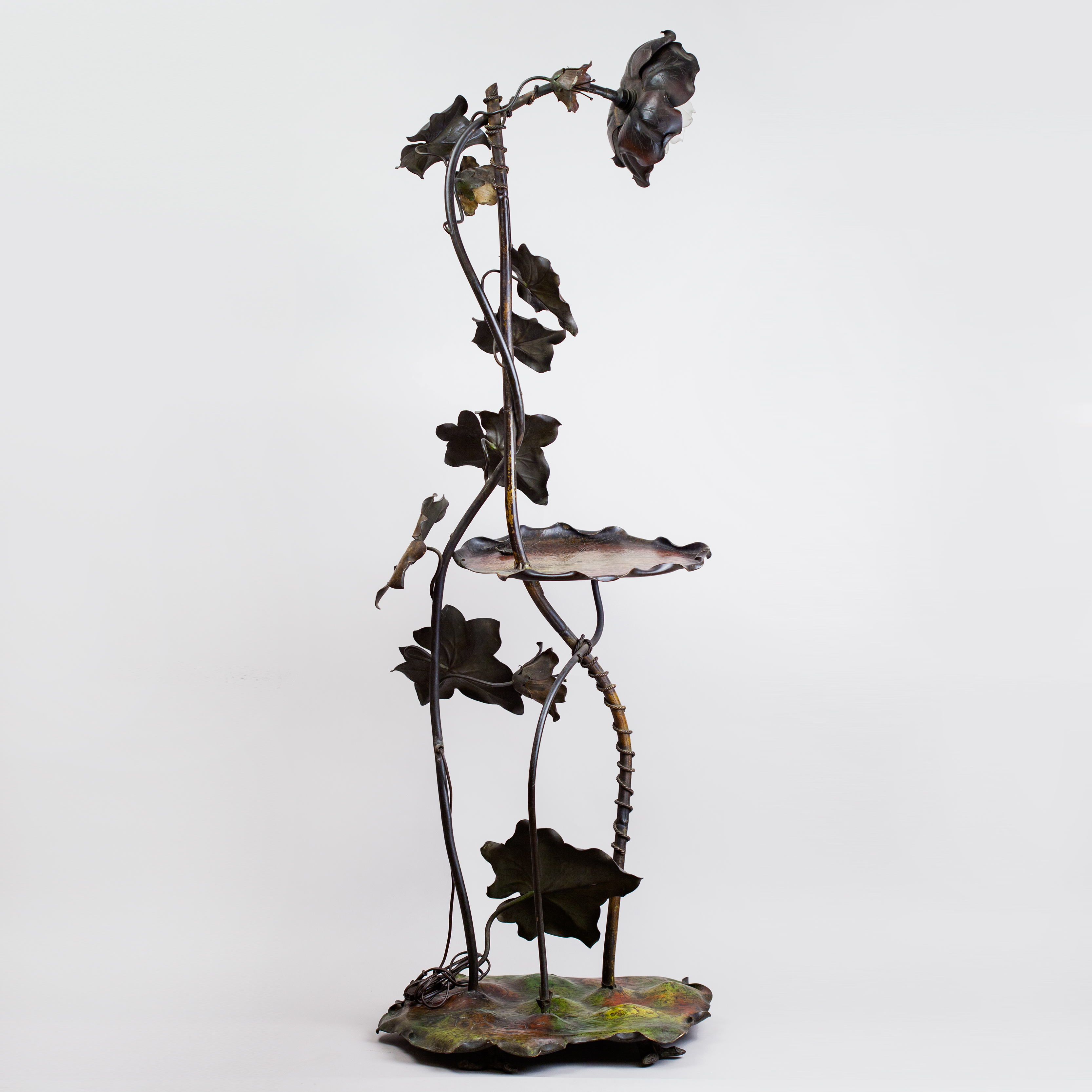 Бронза, литье, чеканка, полихромное патинирование, стекло, Франция, начало ХХ века, высота - 150 см, основание (ш/г) - 44 х 50 см