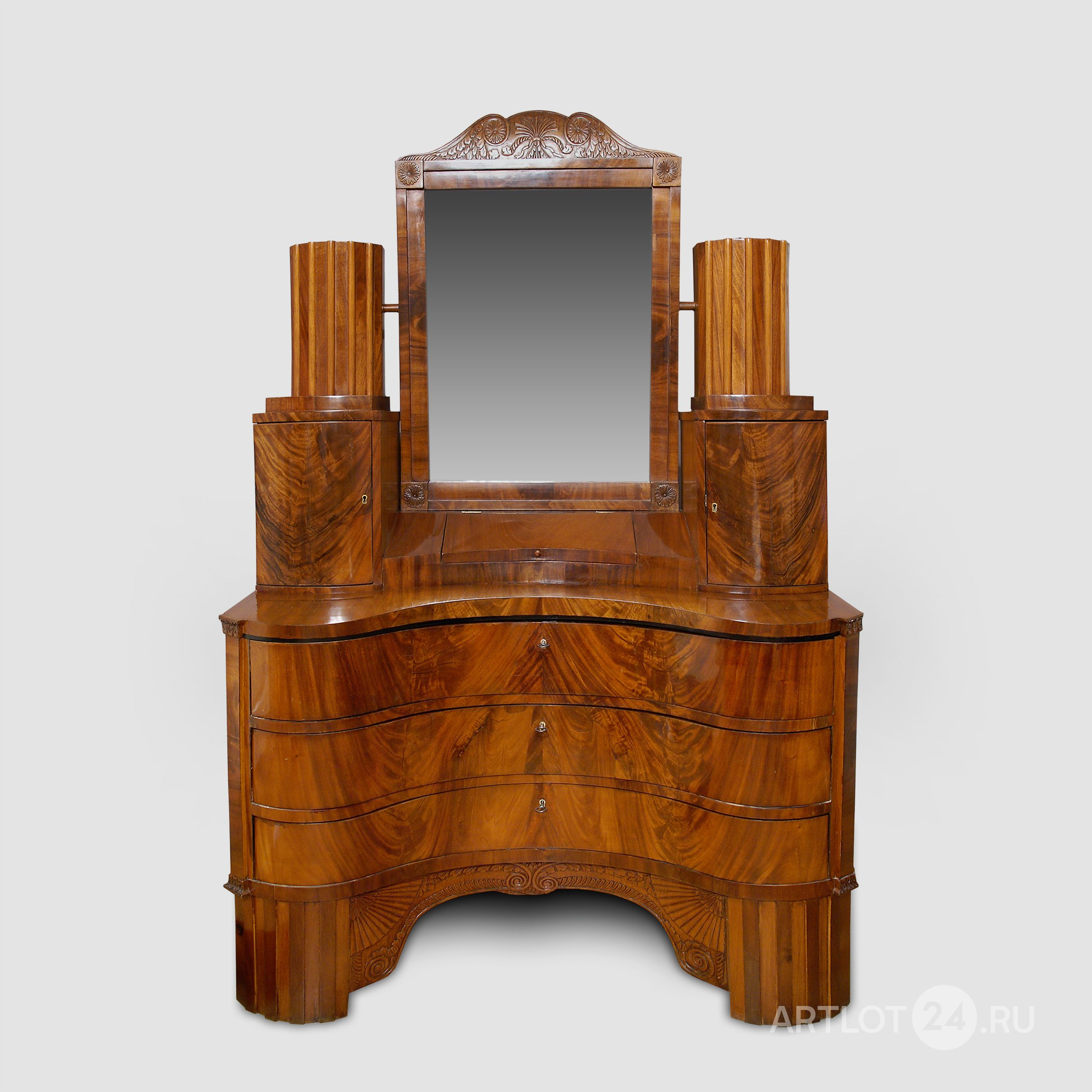 Красное дерево, резьба, фанеровка «пламя», хвойные породы, декорирован филенками и колоннами из массива красного дерева, зеркало, Россия, первая четверть XIX века, размер (в/ш/г): 199 х 121 х 55 см