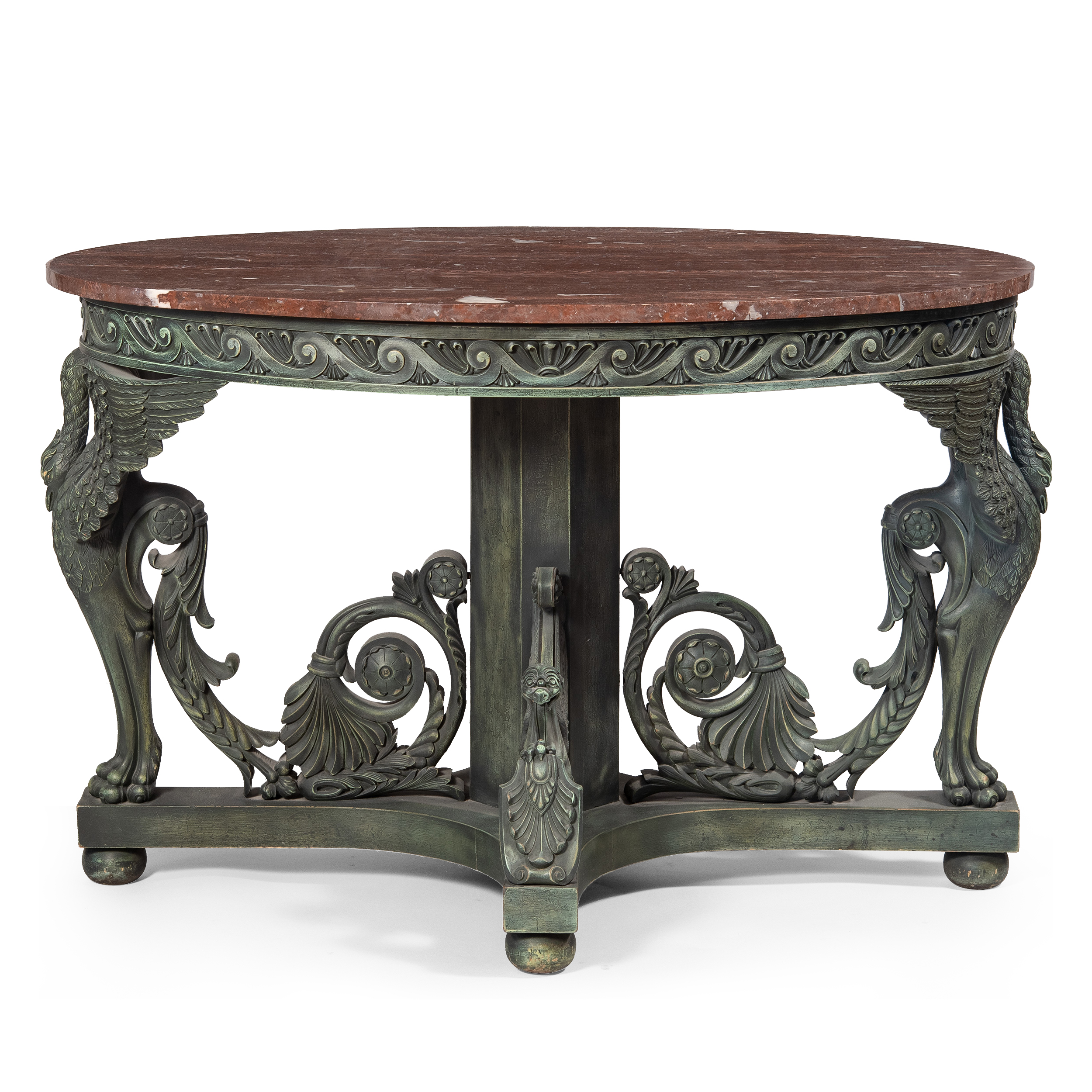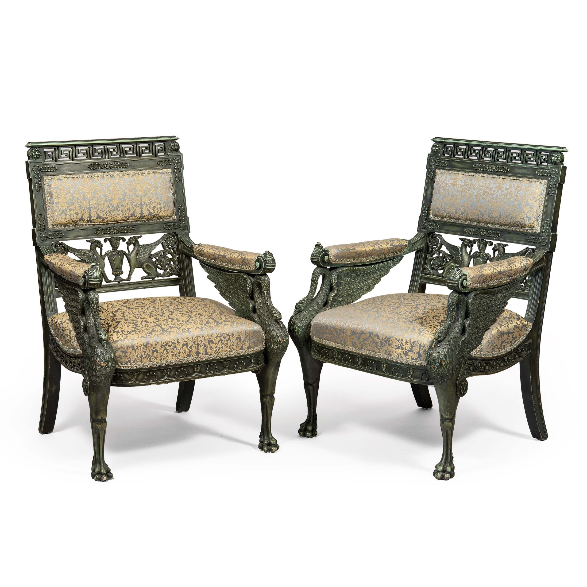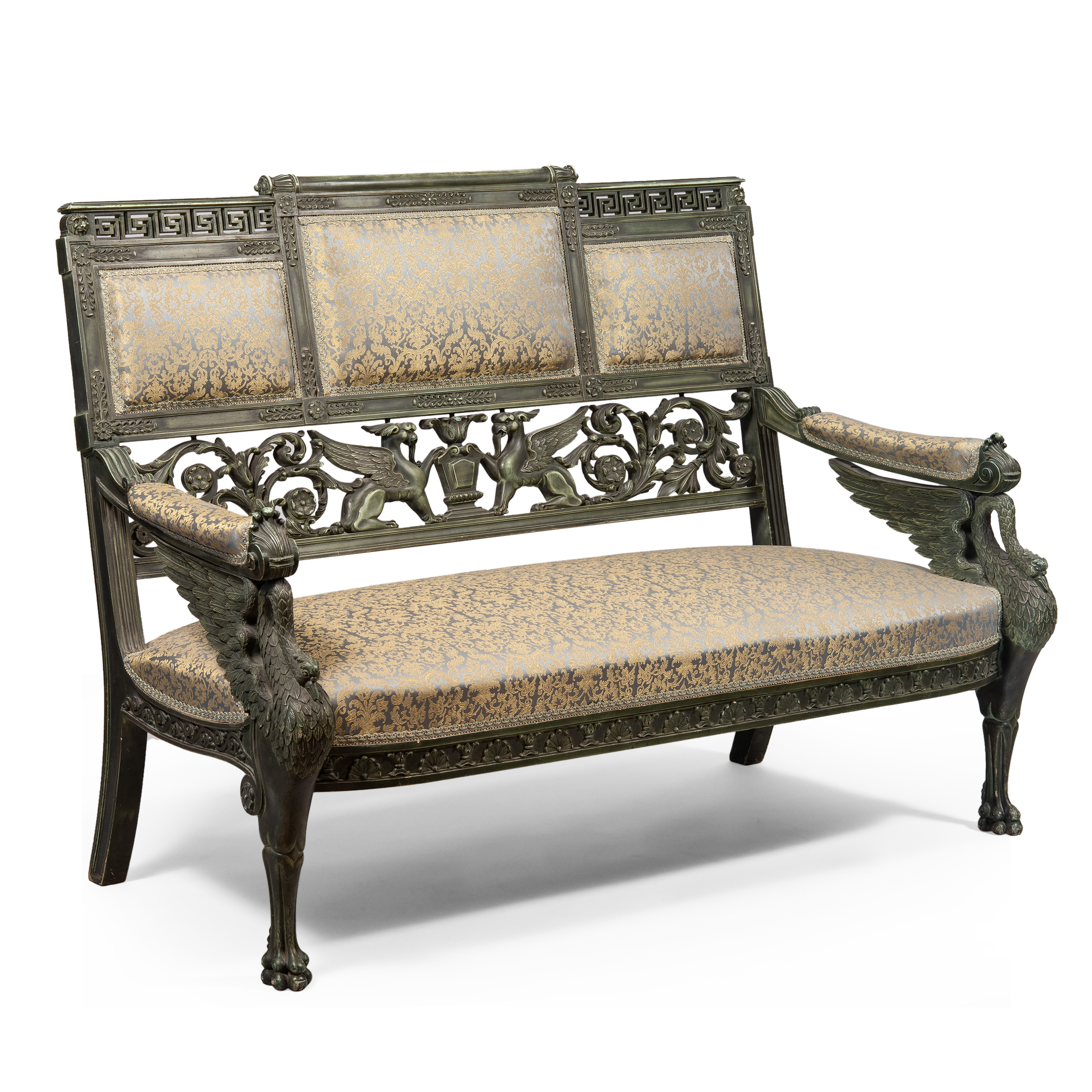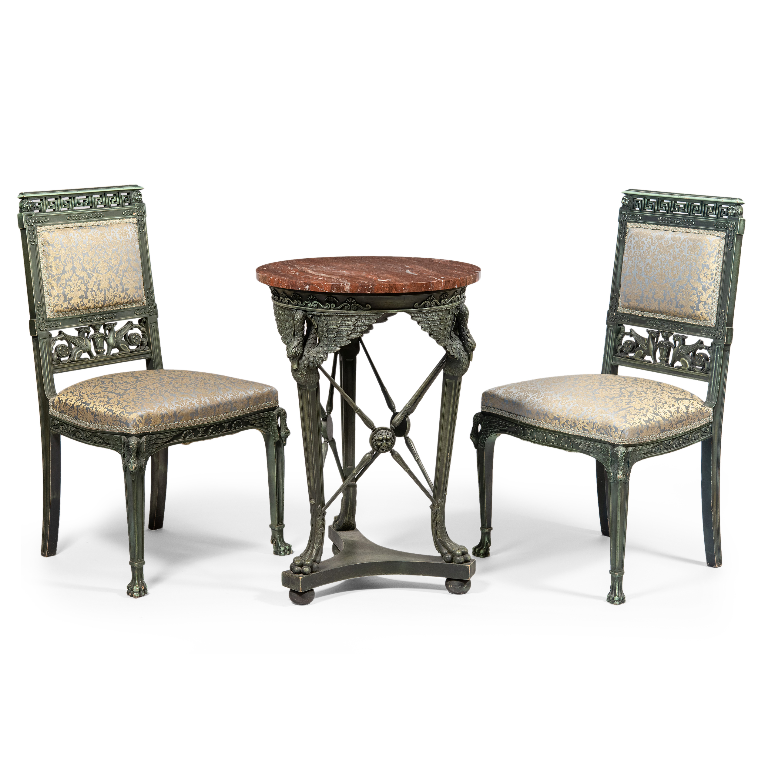 Композиции с зооморфными «лебедиными» ножками, сквозными меандрами и вставками с грифонами, прямо заимствованные с античных барельефов явно претендуют на новое прочтение «классицизма». Несомненно, эти предметы делались по специальному заказу для интерьера с классическим декором.