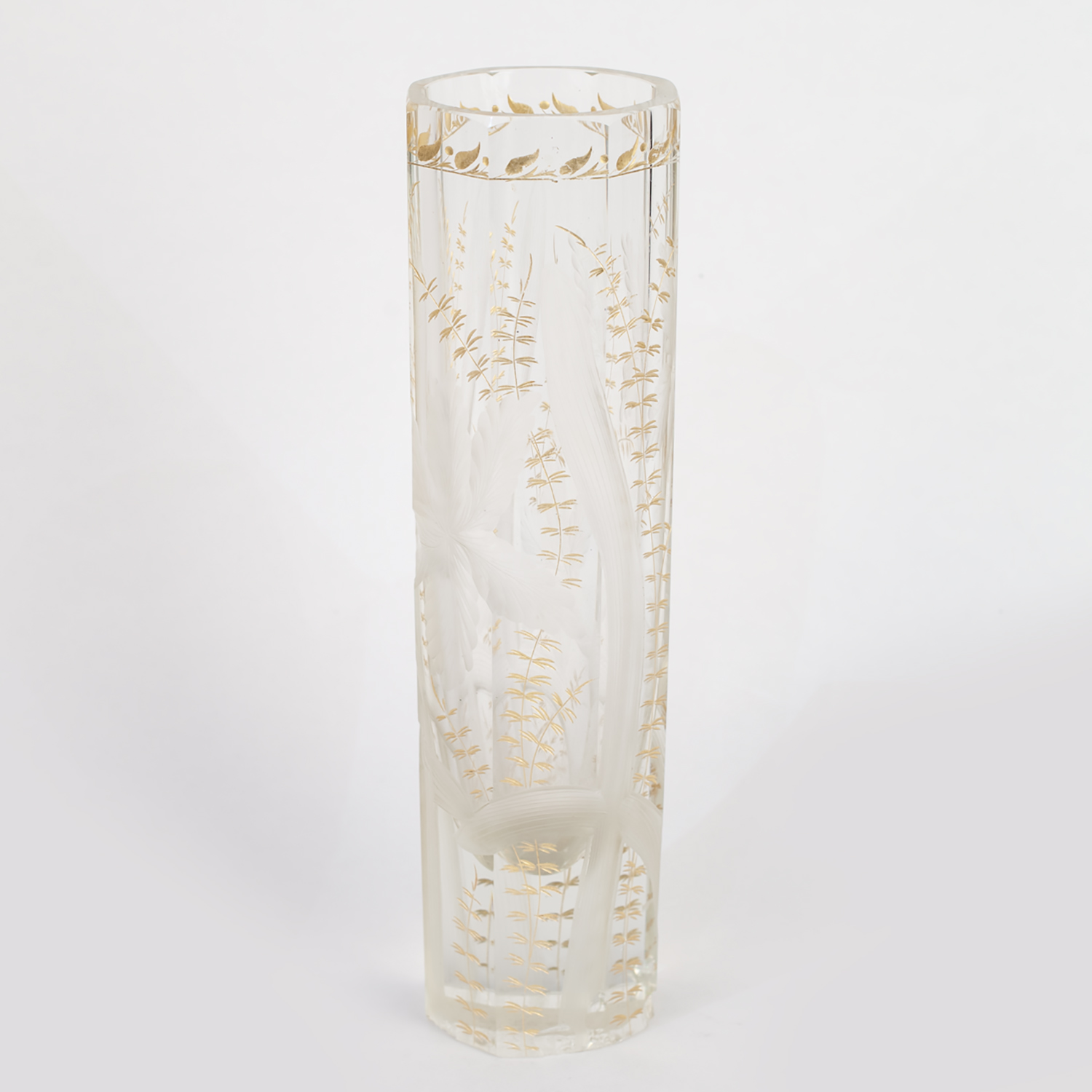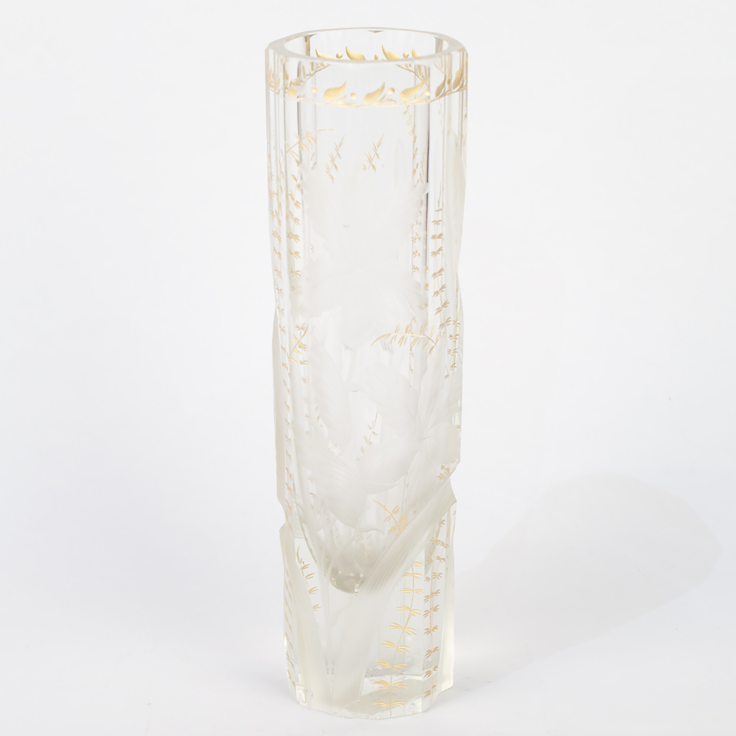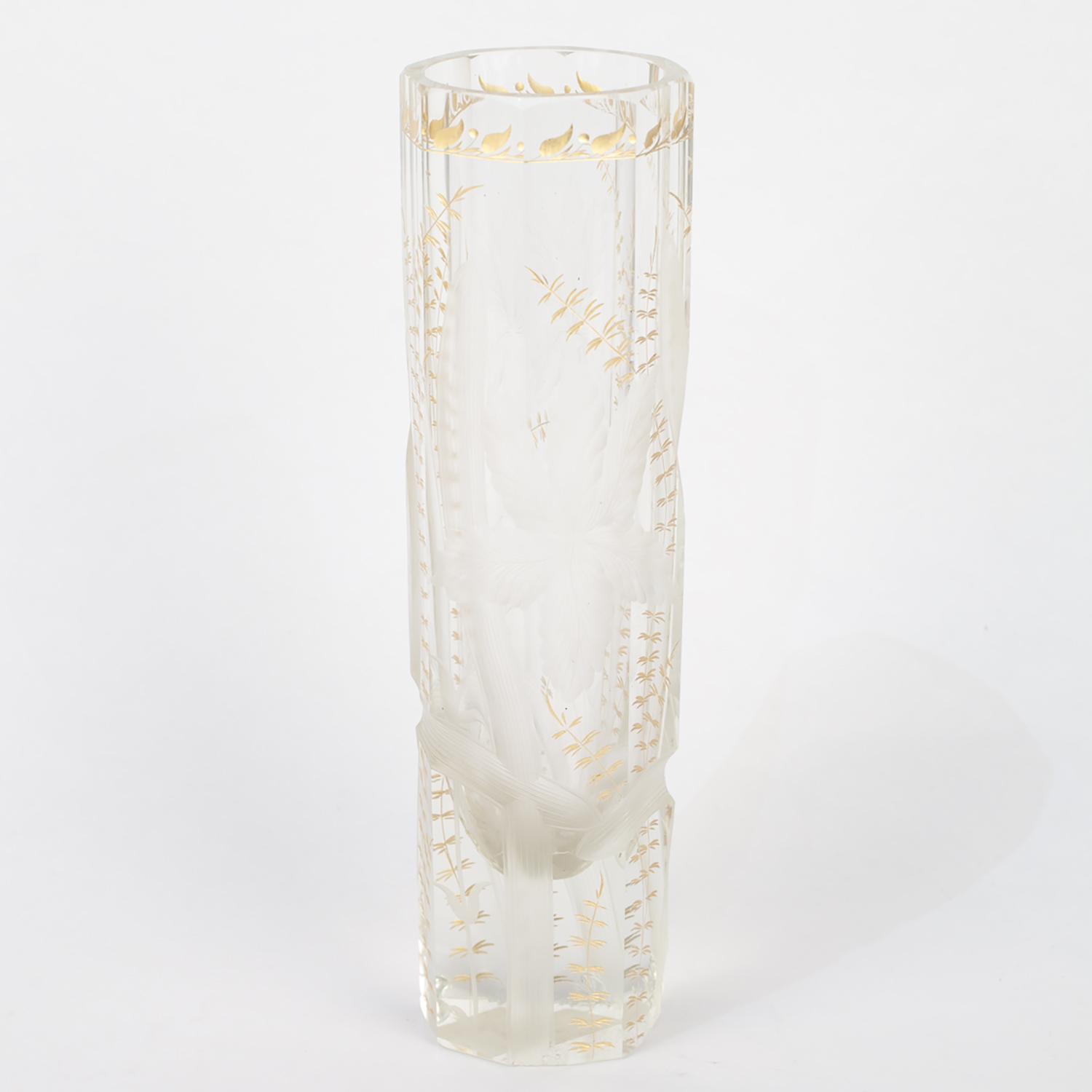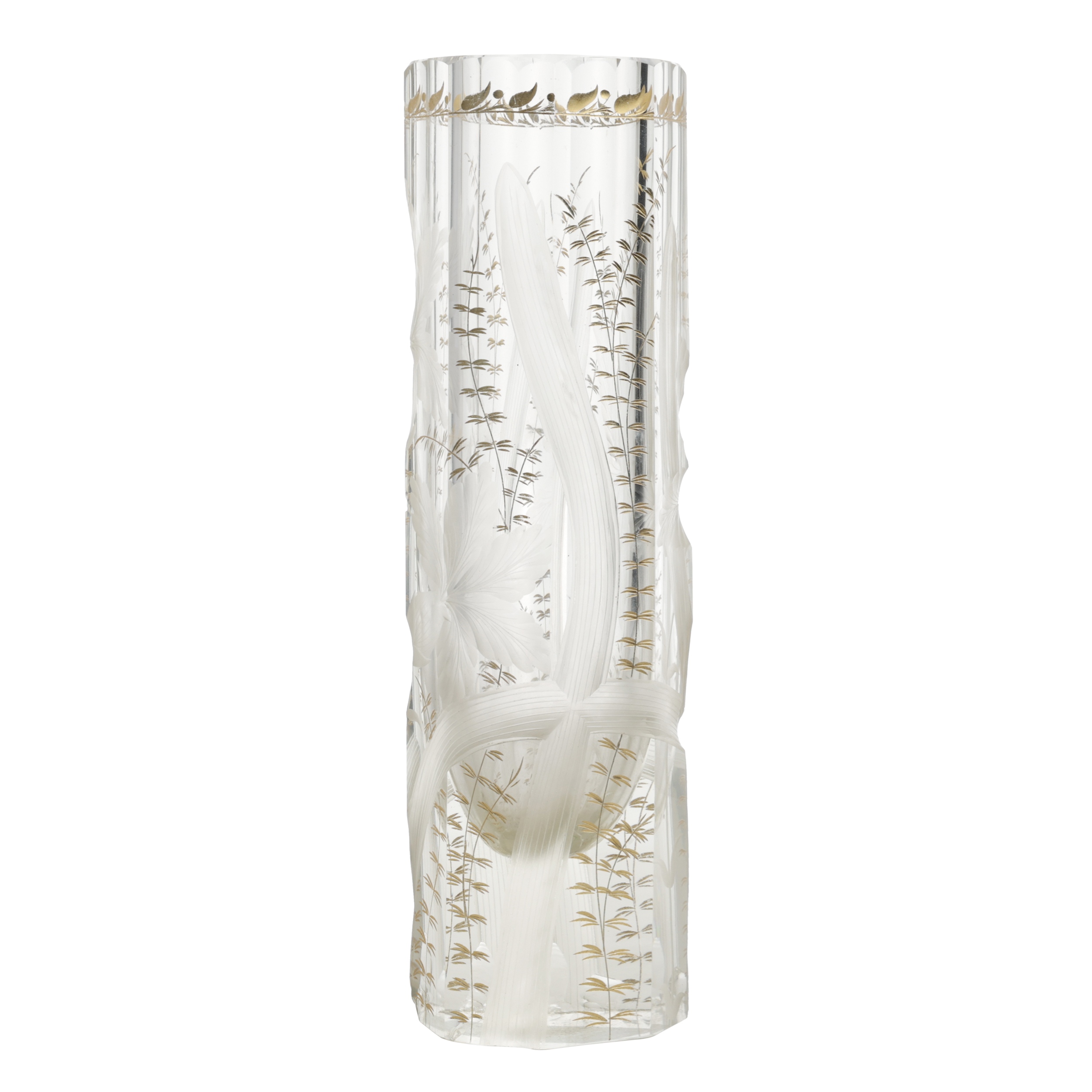 Стекло прозрачное бесцветное, гранение, шлифовка, рельефный рисунок, золочение, Россия (?), начало XX века, высота - 27 см