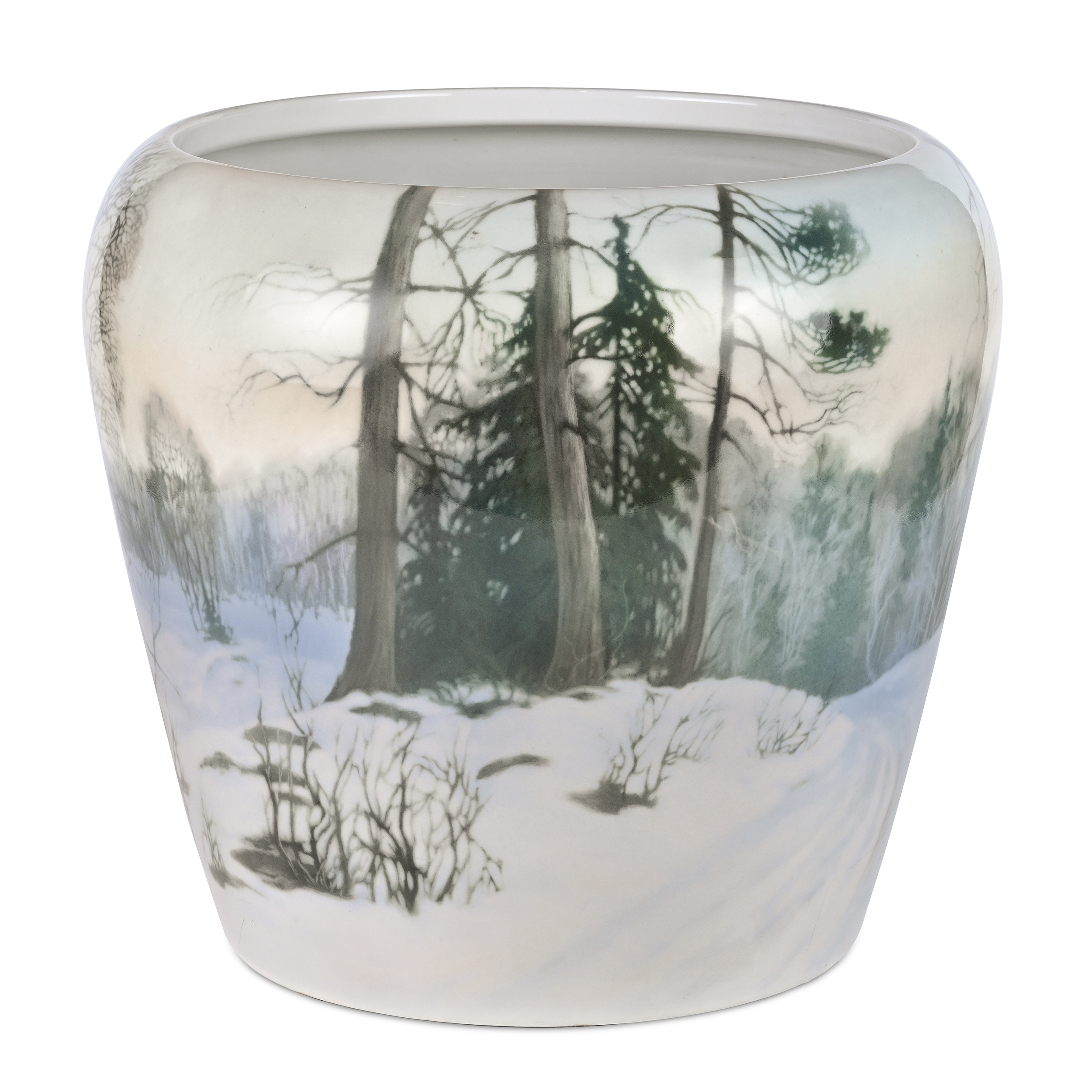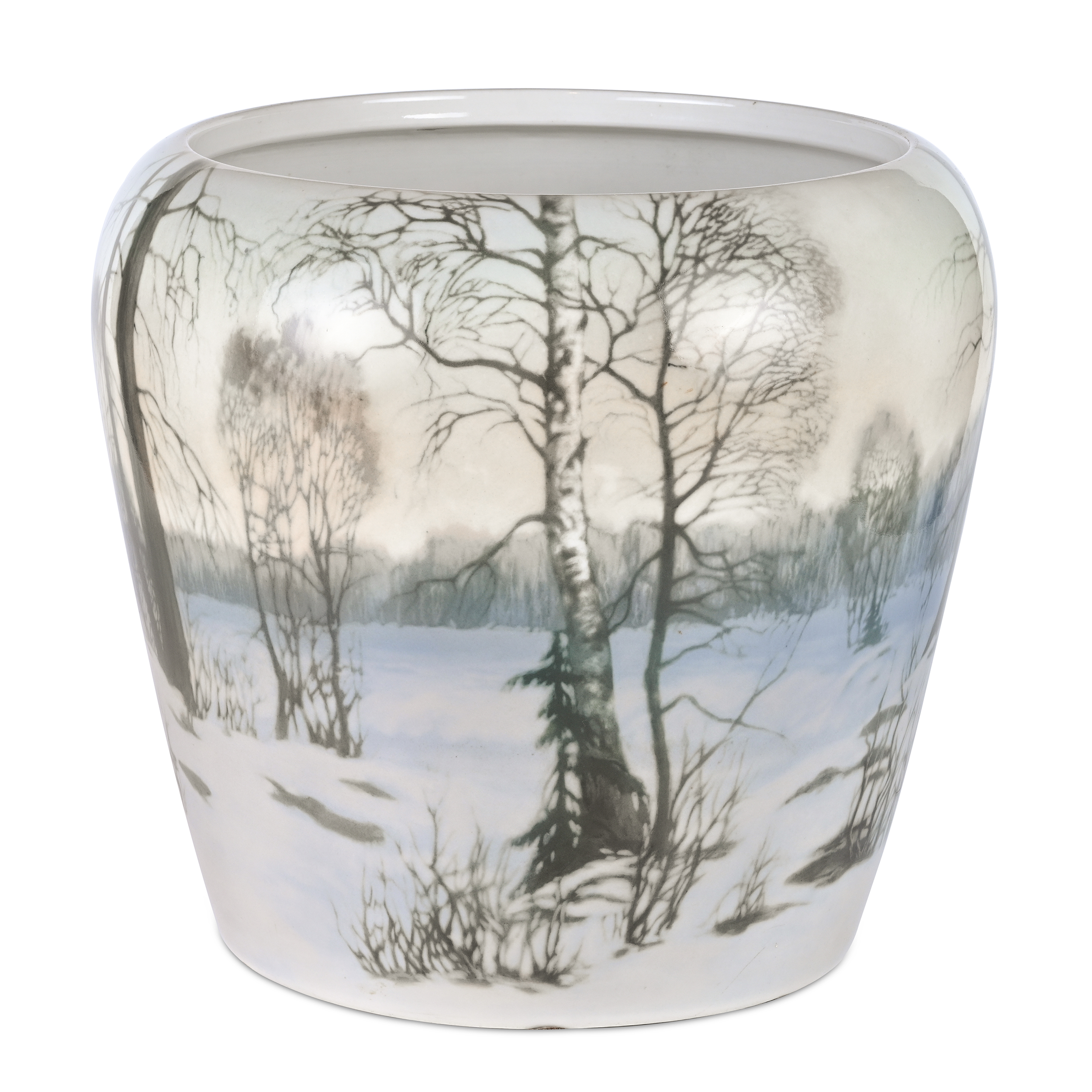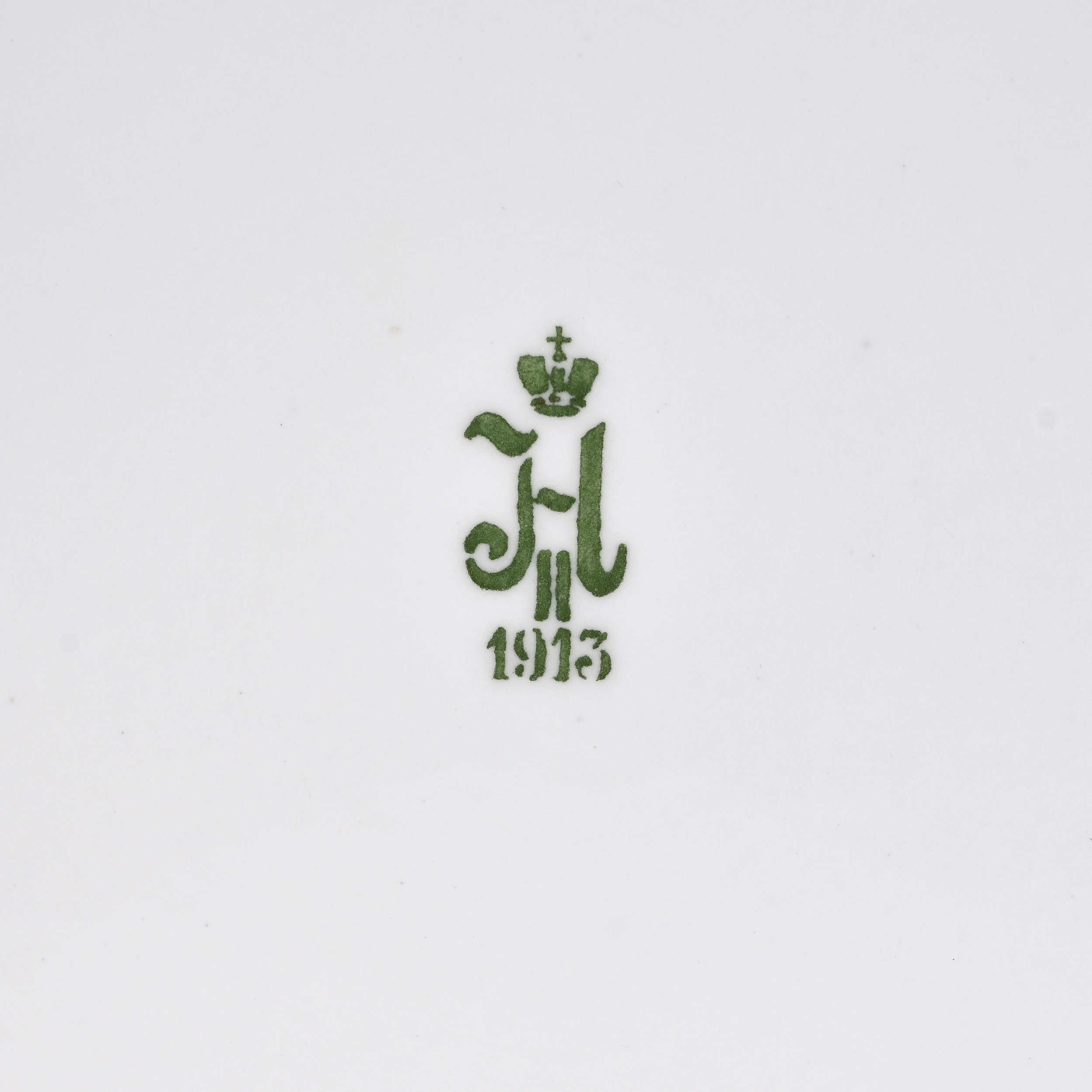 Автор эскиза и росписи - художник И.Е. Денисов. Фарфор, подглазурная полихромная роспись, подглазурная марка хромом штампом «НII под короной / 1913», высота – 29 см.