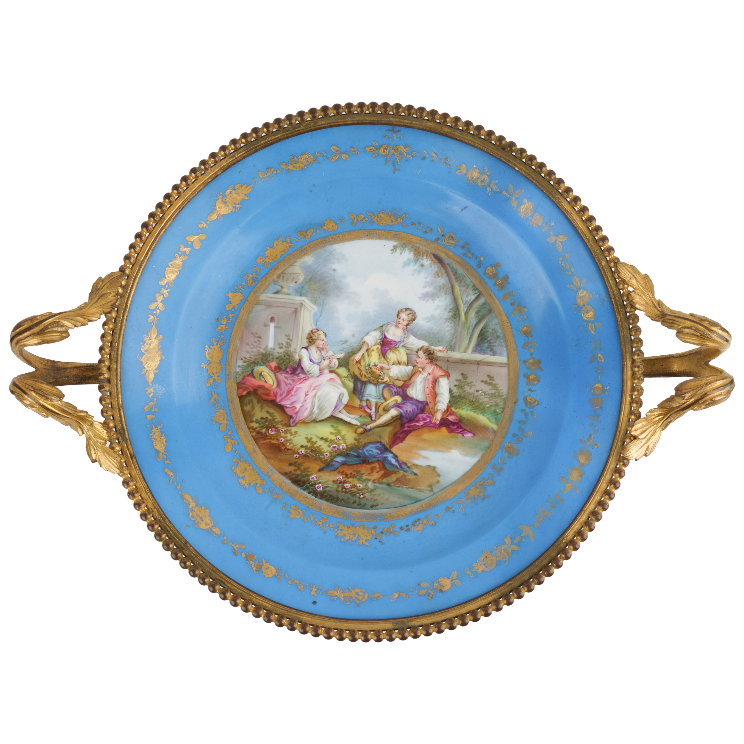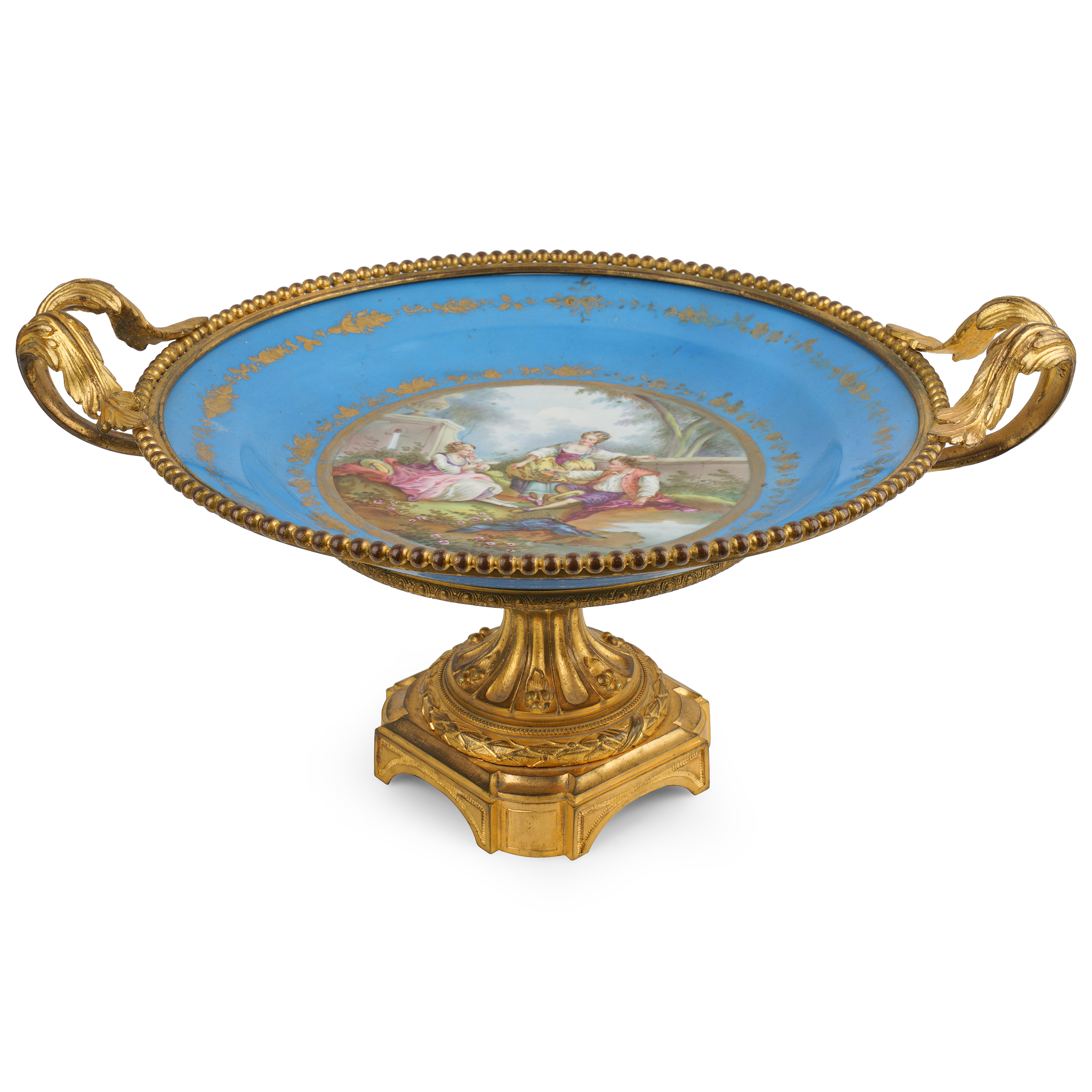 Фарфор, надглазурная роспись, бронза, литье, золочение, монтировка. Марка скрыта под бронзовой ножкой.