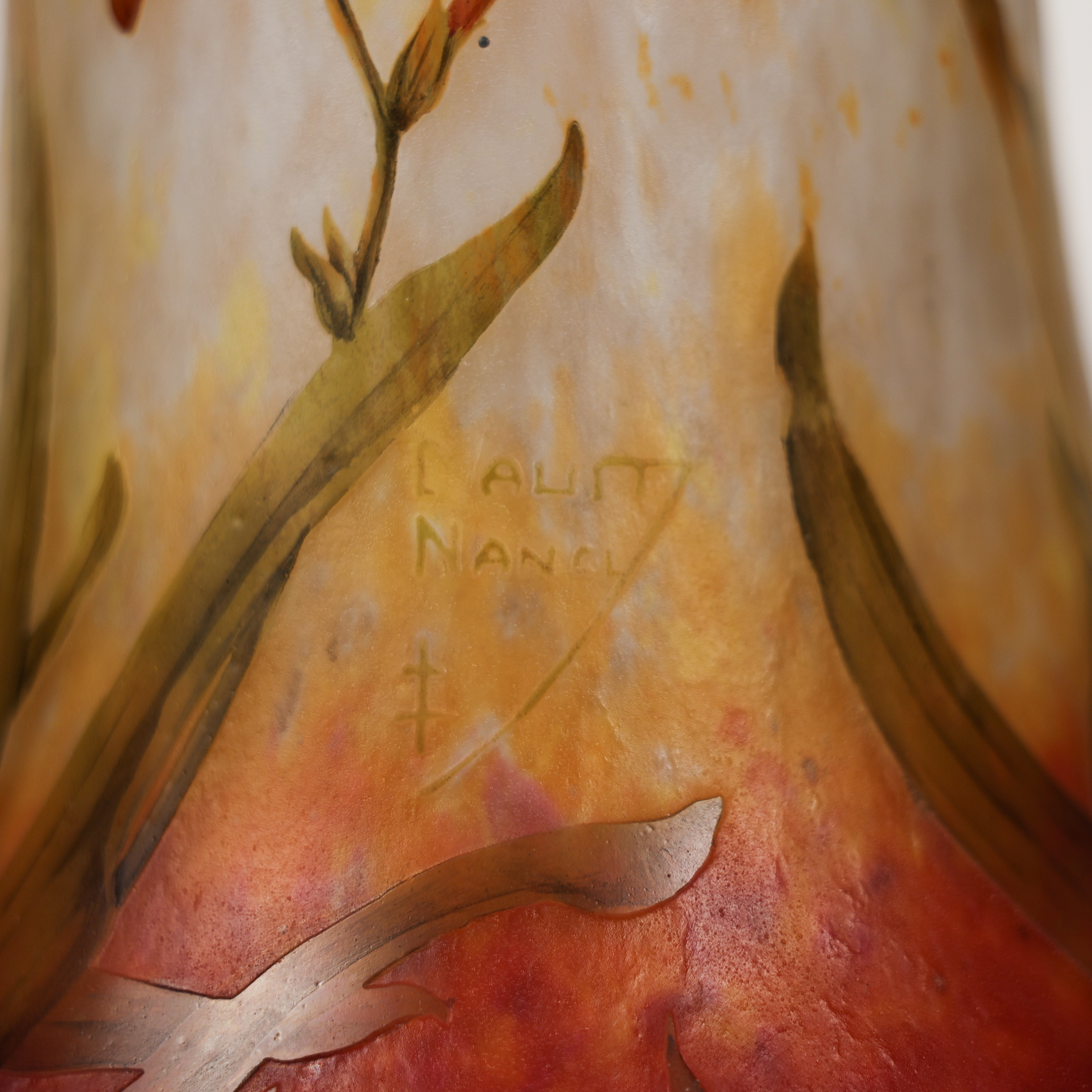 Марка травлением в высоком рельефе : Daum/ Nancy/ Лотарингский крест.