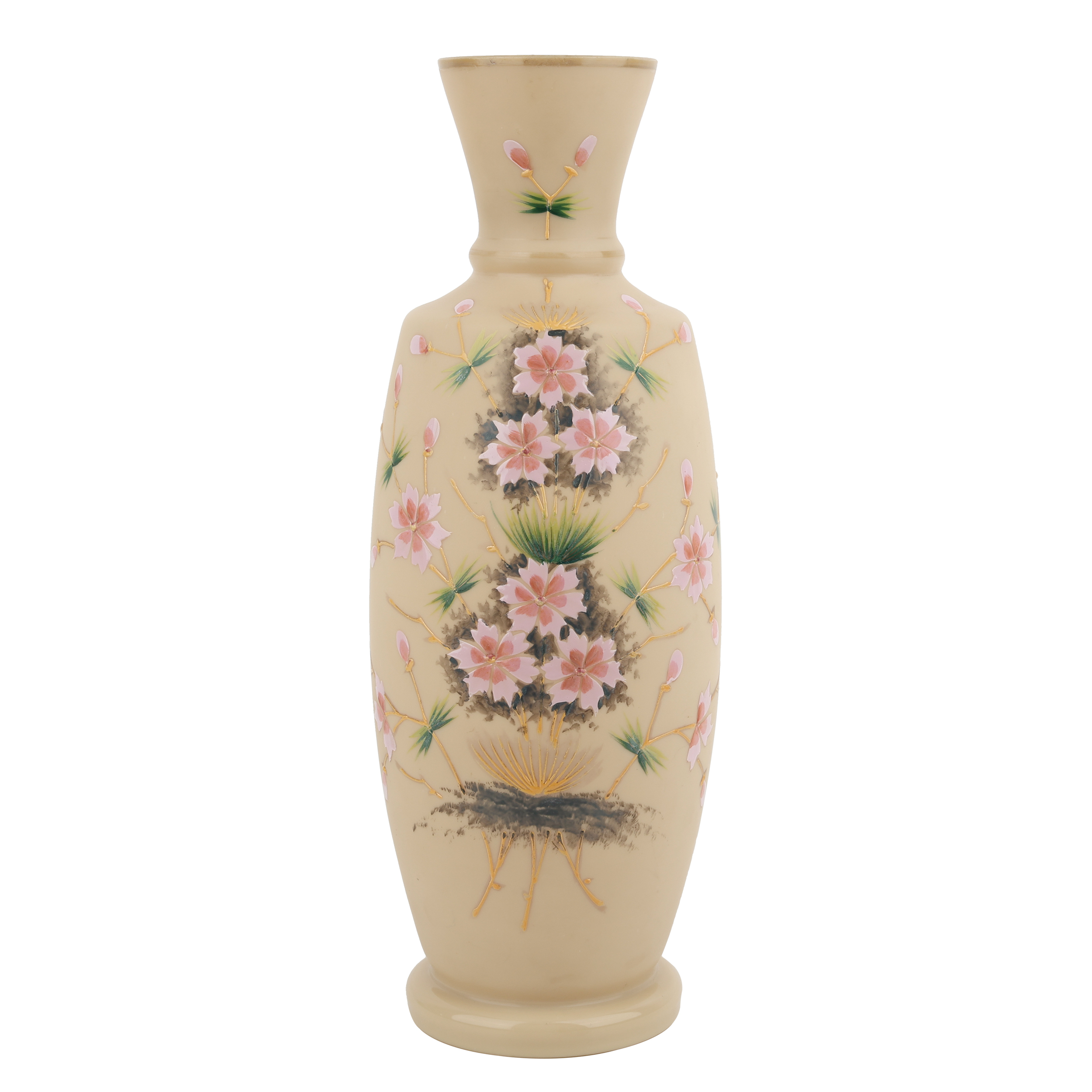 Бежевое молочное стекло, роспись эмалевыми красками.
