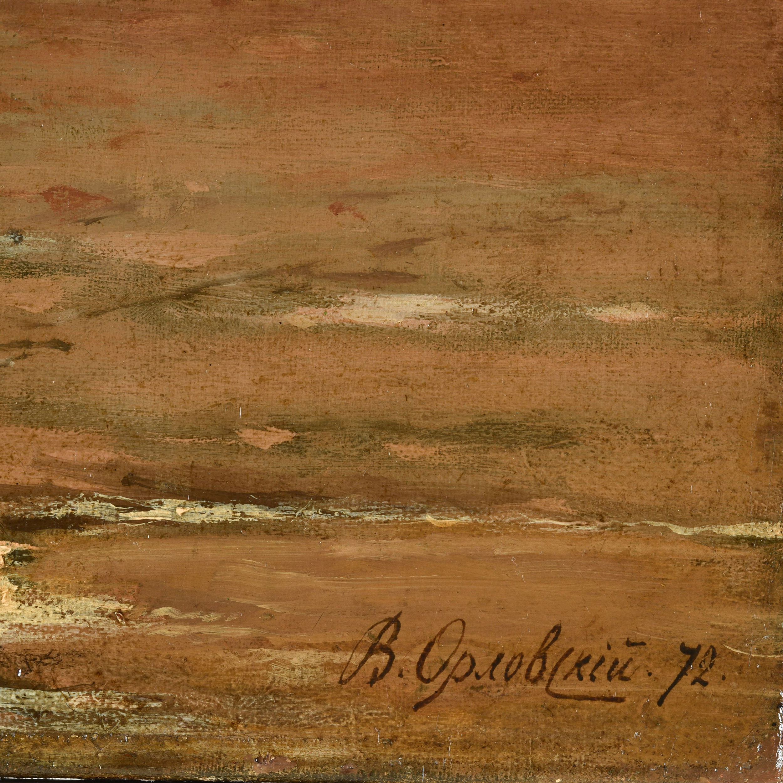 Холст, масло, справа внизу подпись: «В.Орловскiй.72.». Размер холста: 59,5 х 115,5 см, в раме: 84 х 141 см.