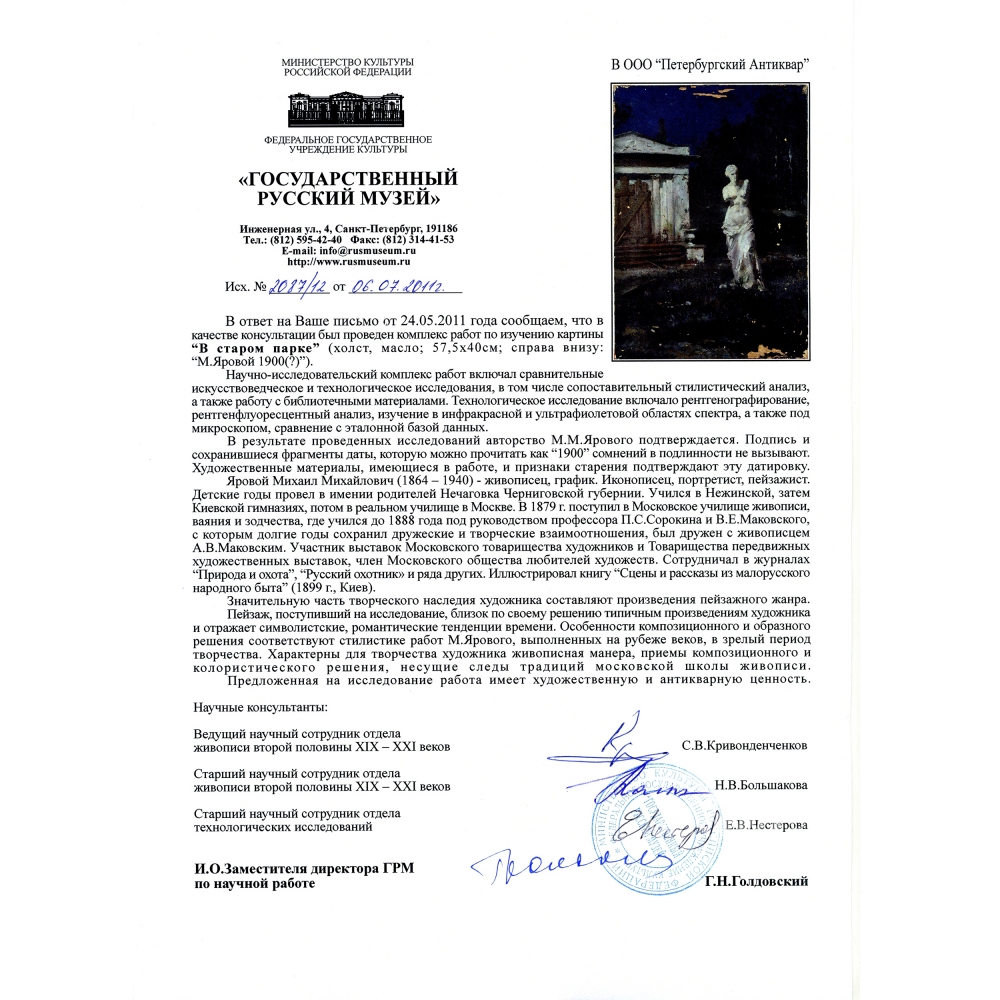 Холст, масло, подпись справа внизу «М. Яровой 1900 (?)», Россия, Михаил Михайлович Яровой (1864-1940), 1900-е годы, размер холста (в/ш): 57,5 x 40 см. Сопровождается экспертным заключением Государственного Русского музея