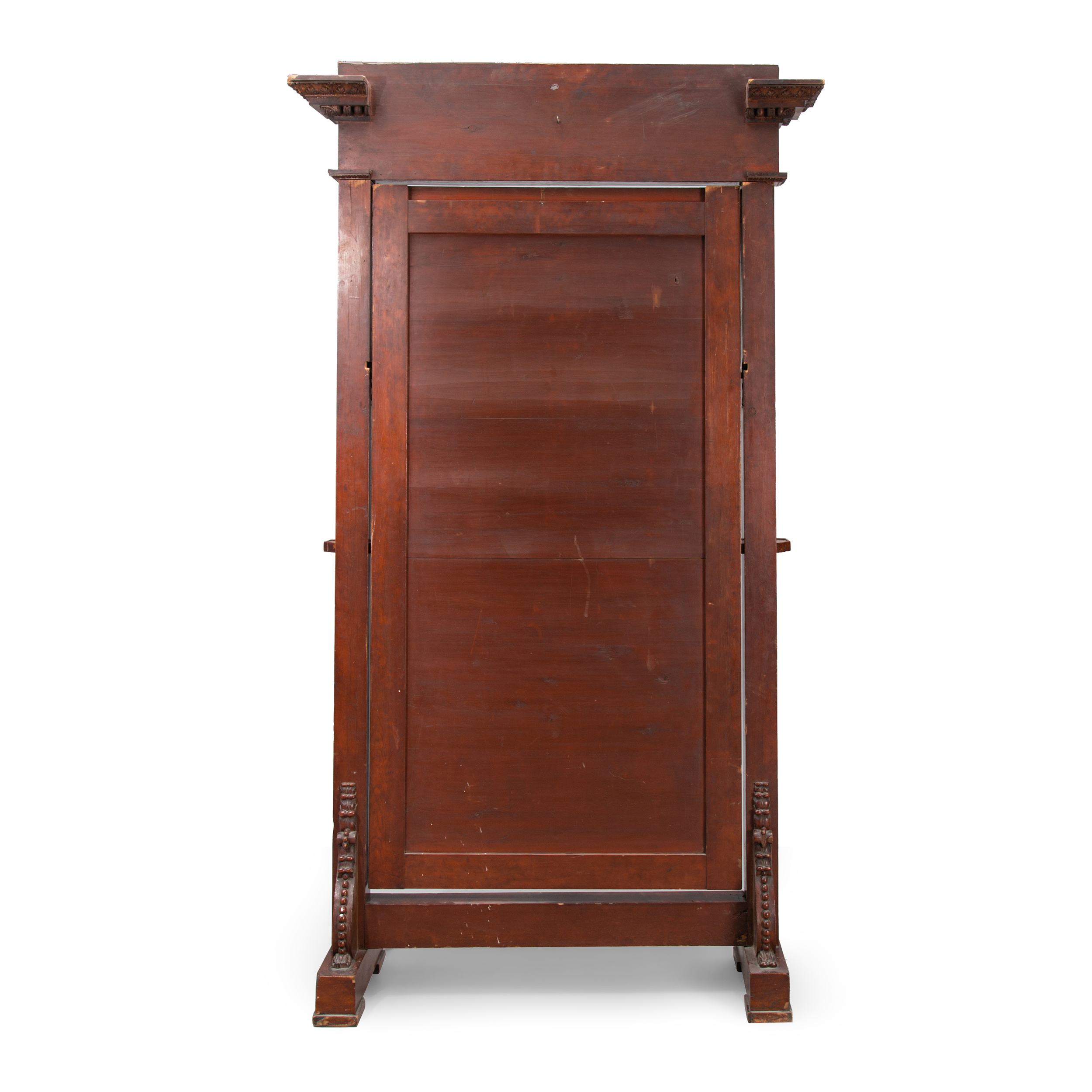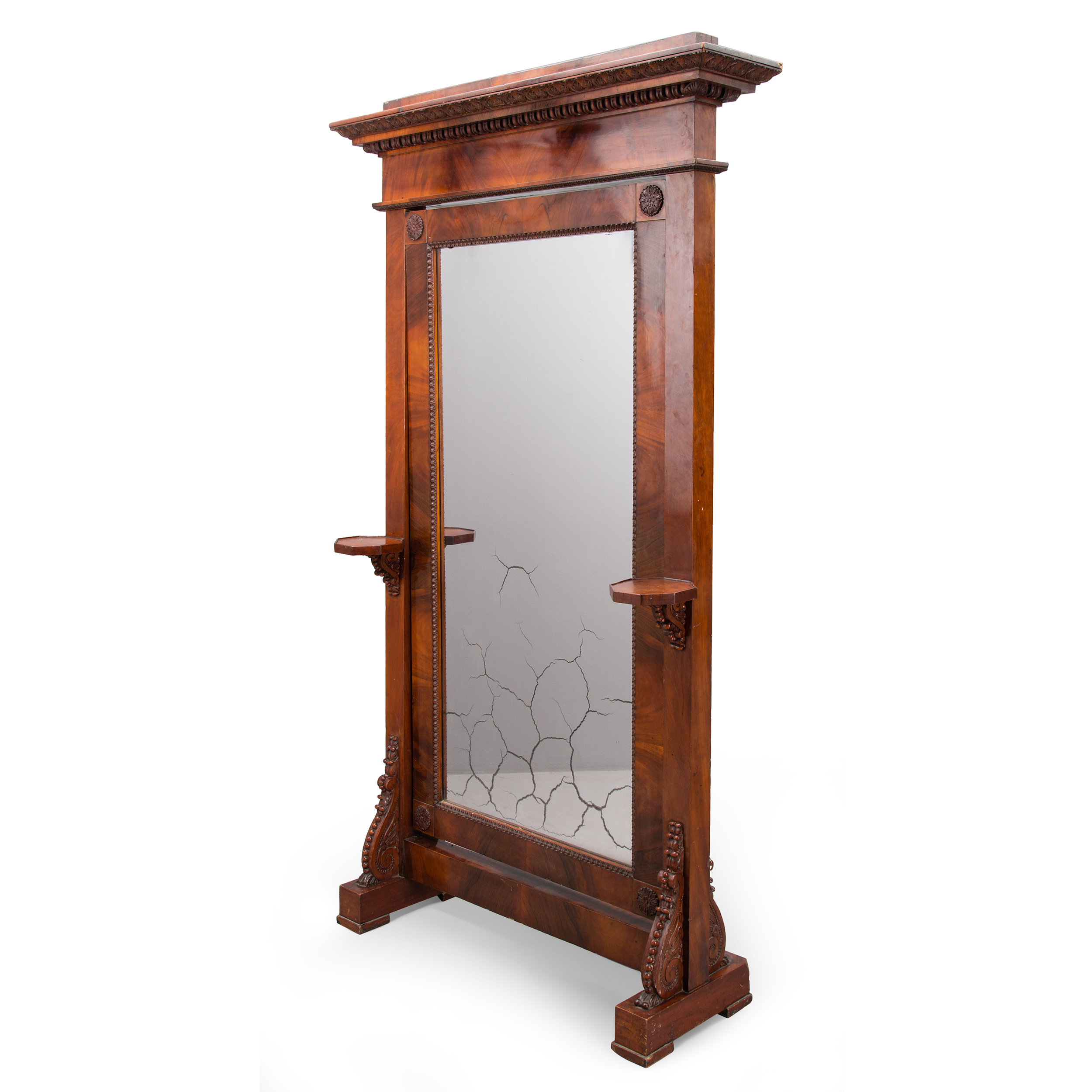 Зеркало псише с резным фризом и с подставками для свечей. Красное дерево, фанеровка, резьба в виде завитков аканта, монтировка, амальгамированное стекло, Россия, первая треть XIX века, размер (в/ш/г): 235 х 130 х 40 см