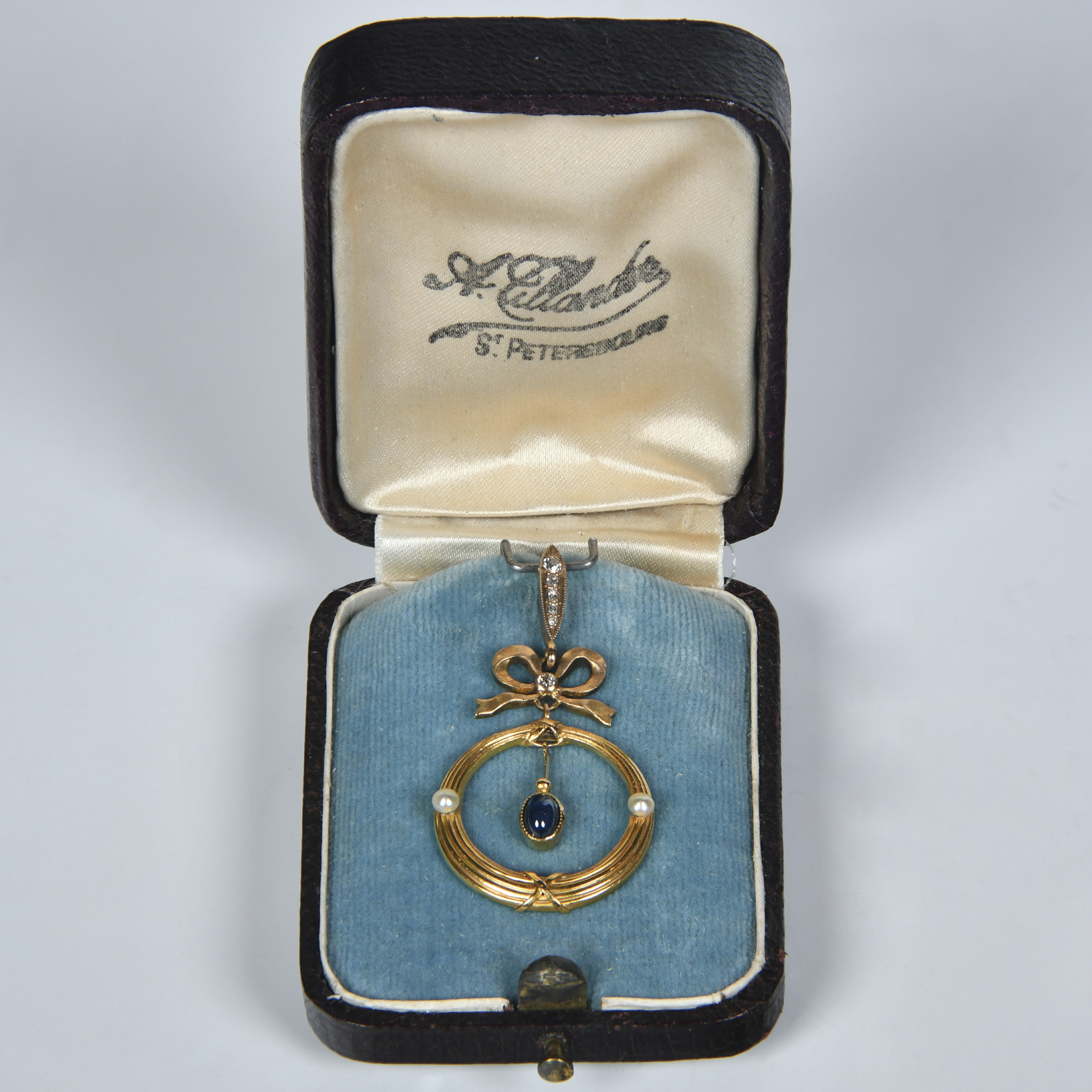 Золотая подвеска с бриллиантами, сапфиром и жемчугом фирмы «А. Тилландер»